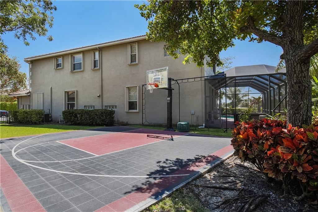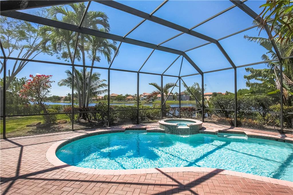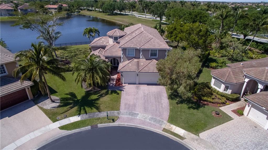 Enjoy this peaceful retreat on an oversized lot on a quiet cul-de-sac and large lake frontage. Large pool and patio all in a screened enclosure. Fenced yard and playset. Granite countertops and stainless steel. Wrought iron railing. Stunning 2 story foyer, dining room and the formal living room overlooking the lake. New wood floors living room, 2 bedrooms on the first floor. Marble in common areas. Accordion shutters.