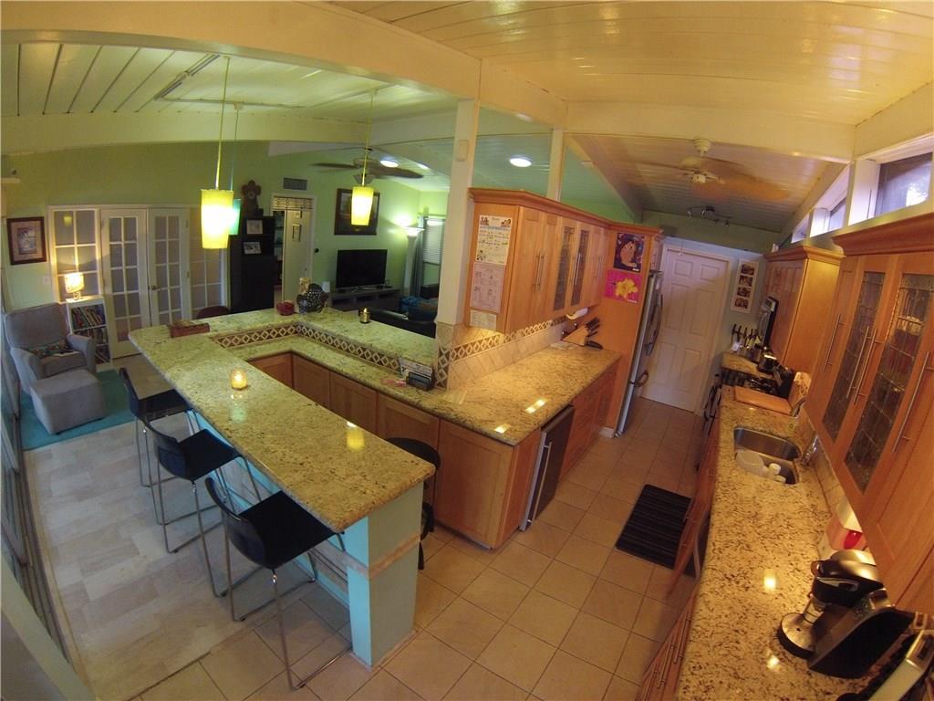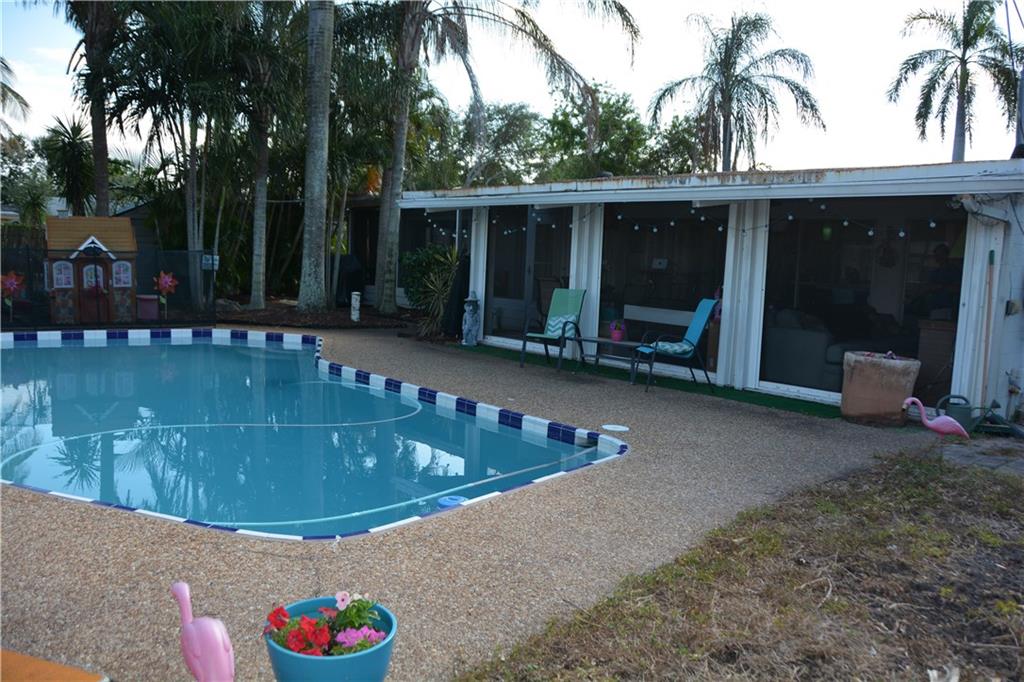 Custom built 3/2 pool home w vaulted wood ceilings, tropical style house with wide open views of pool area and landscaping. Custom maple kitchen cabinets w/ built in 7 person granite bar. Stainless steel appliances, granite counter tops & top of the line pergo! Screened Florida room with built in gas Bar-B-Que. House has accordian shutters & roof replacement coming. Add you own special touches to make this your tropical paradise with a tile bar out back w/ electric. Come on folks it's 5 o'clock somewhere!