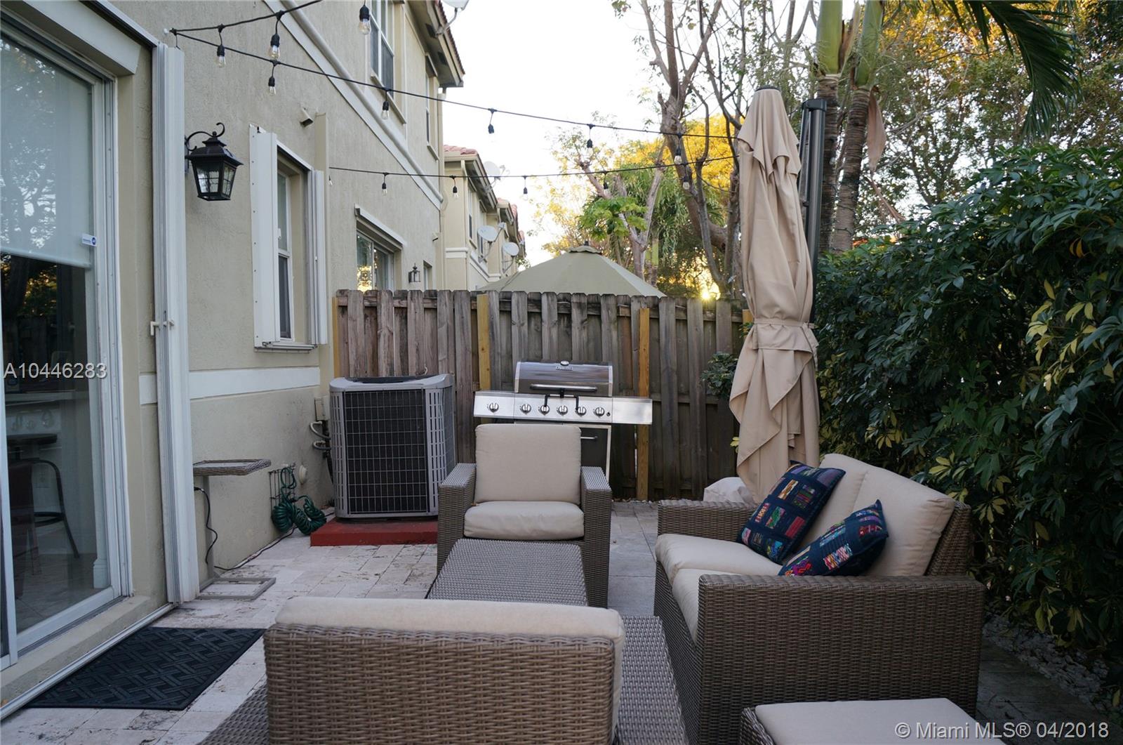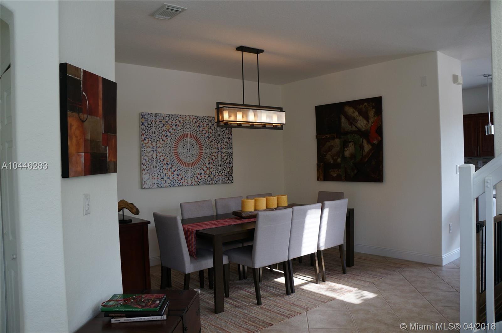 Beautiful Corner Townhouse 3 Bedrooms and 2.5 Baths. Laminated wood flooring on second floor. Granite countertop and stainless steel appliance at the kitchen. Accordion shutters. Community pool, gym, tennis, and basketball courts. Come to see it, you will love it.