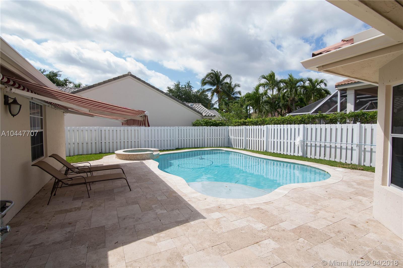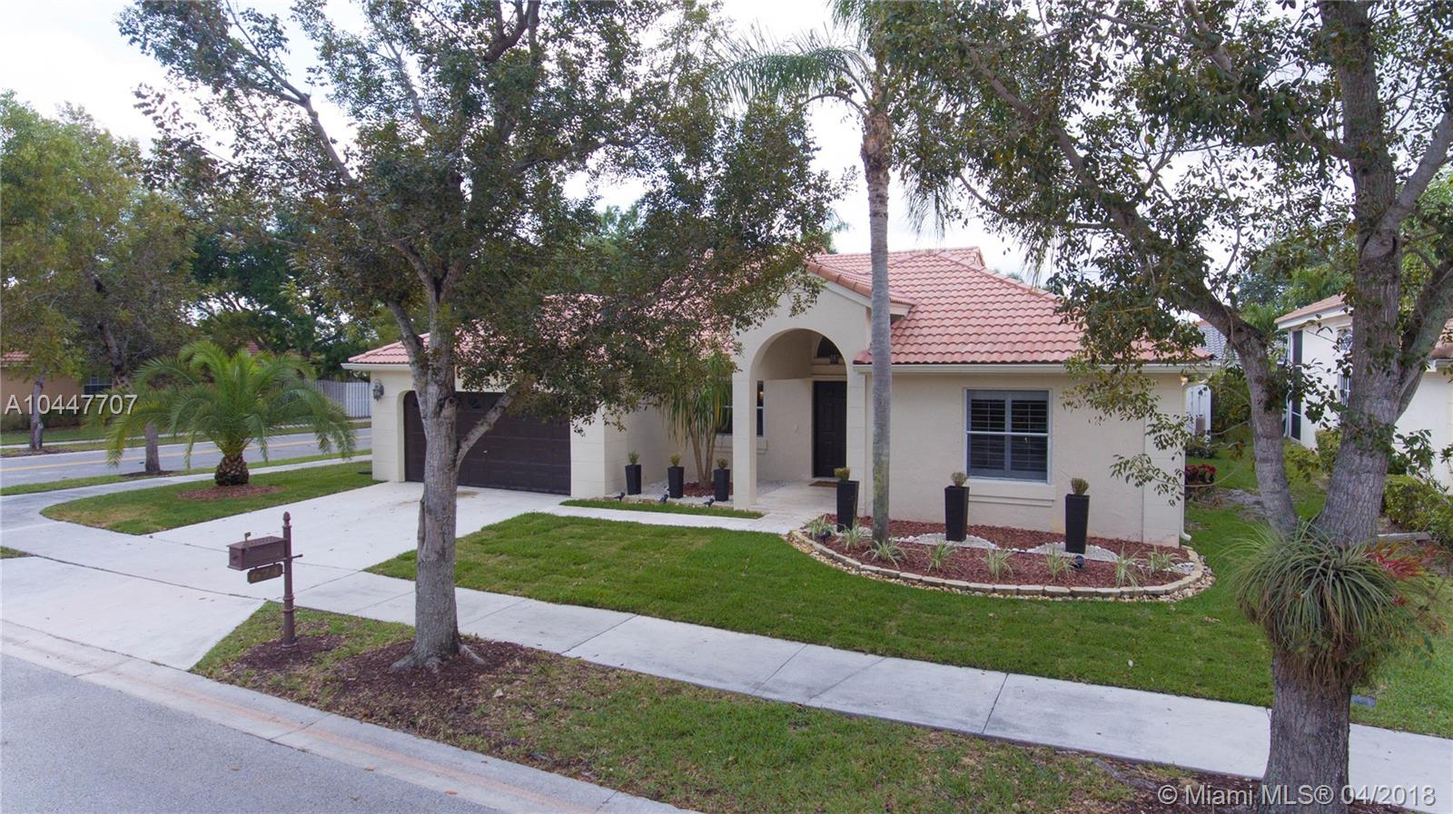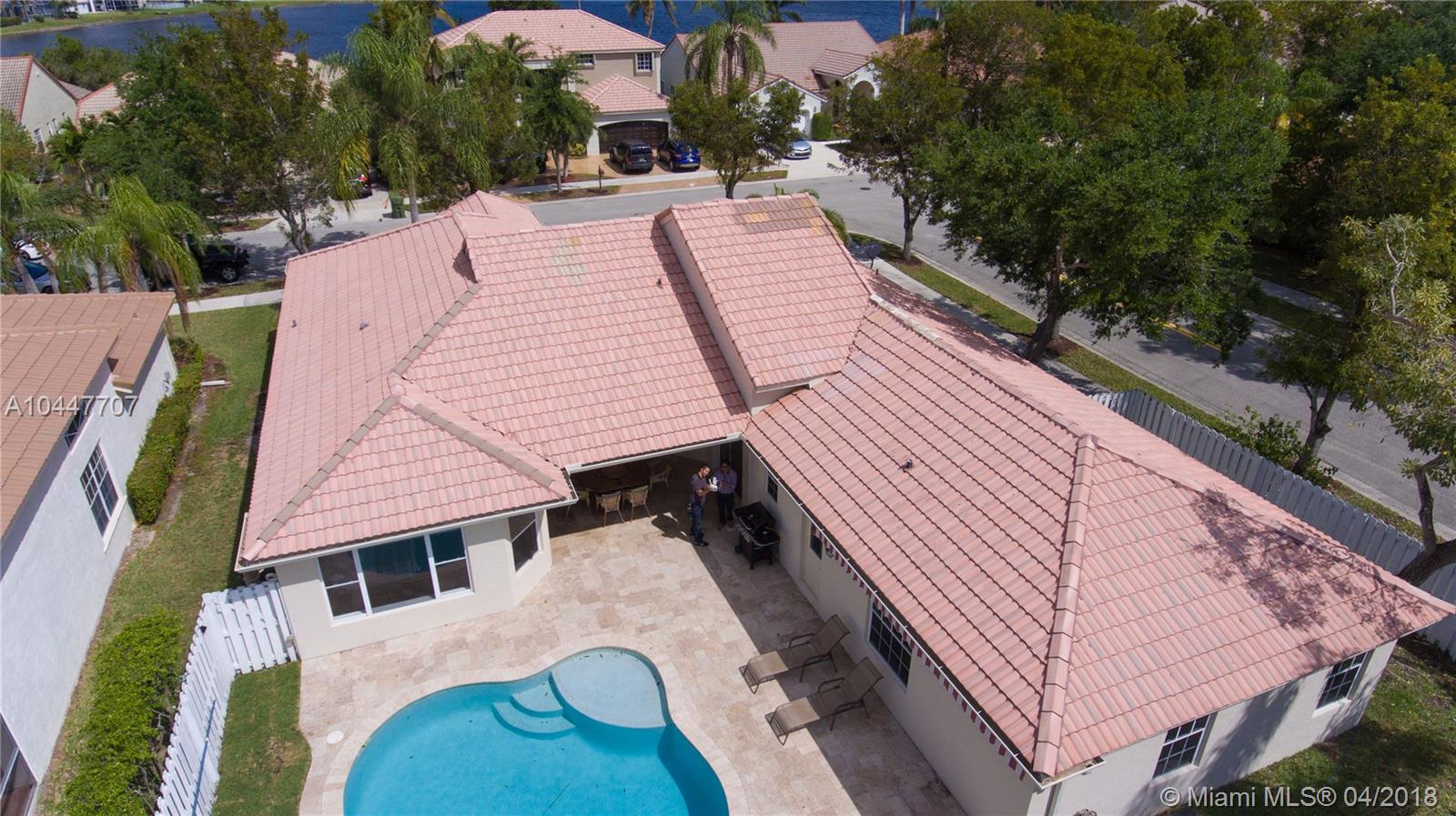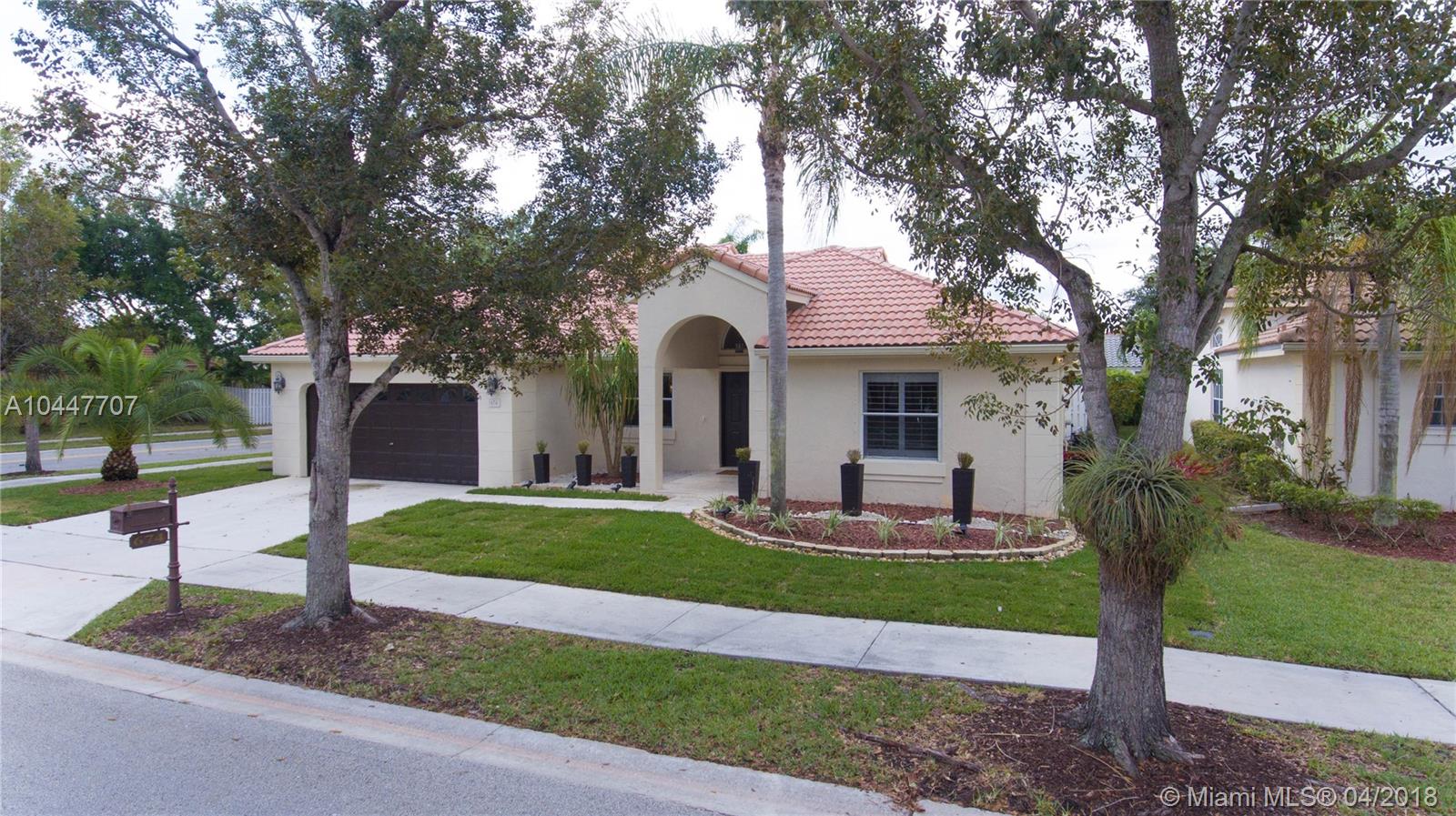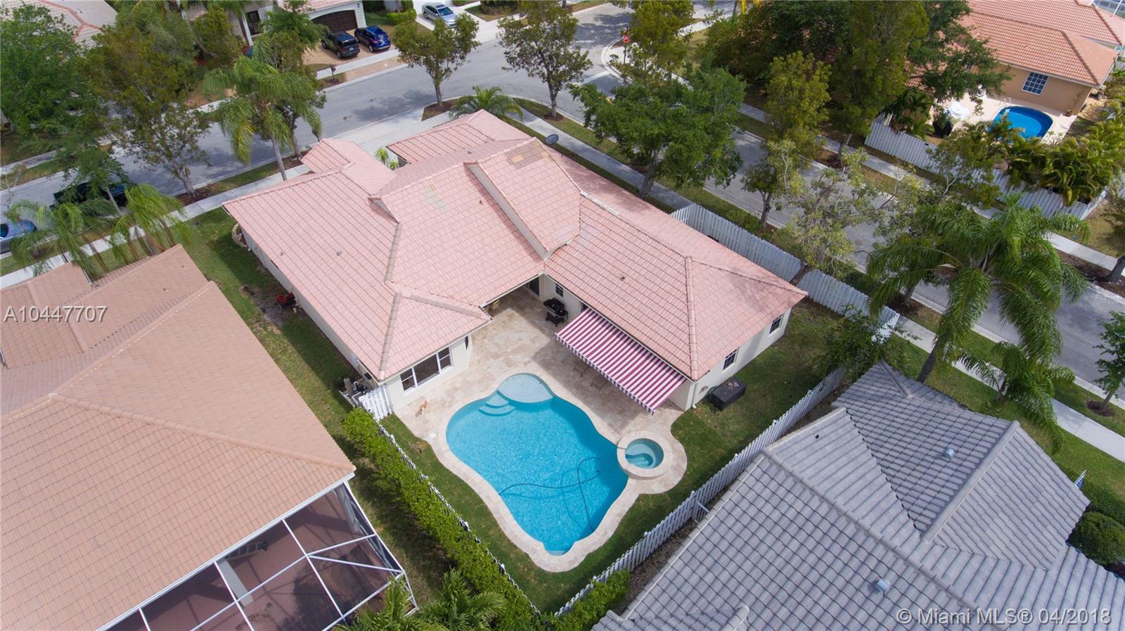 IMPECCABLE DESIGNED 5 BEDROOM AND 2.5 BATH HOME VERY WELL MAINTAINED. MARBLE THROUGHOUT LIVING AREA. BEAUTIFUL DARK WOOD FLOORS IN BEDROOMS. CUARZO COUNTERTOP IN KITCHEN WITH JACUZZI, TUB IN MASTER-BATH, BOTH BATHROOM JUST REDONE, HIGH END BLINDS. SIT OUT ON THE COVERED PATIO OVERLOOKING THE NEW SALT POOL WITH SPA. CORNER LOT. ROOF JUST PRESSURE CLEANED. GREAT LOCATION CLOSE TO SUPERMARKETS AND SAWGRASS EXPRESSWAY THE LAKES AMENITIES INCLUDE COMMUNITY POOL, PLAYGROUND, SOCCER FIELD, GUARD GATE. BEST SCHOOLS ALL A RATED.