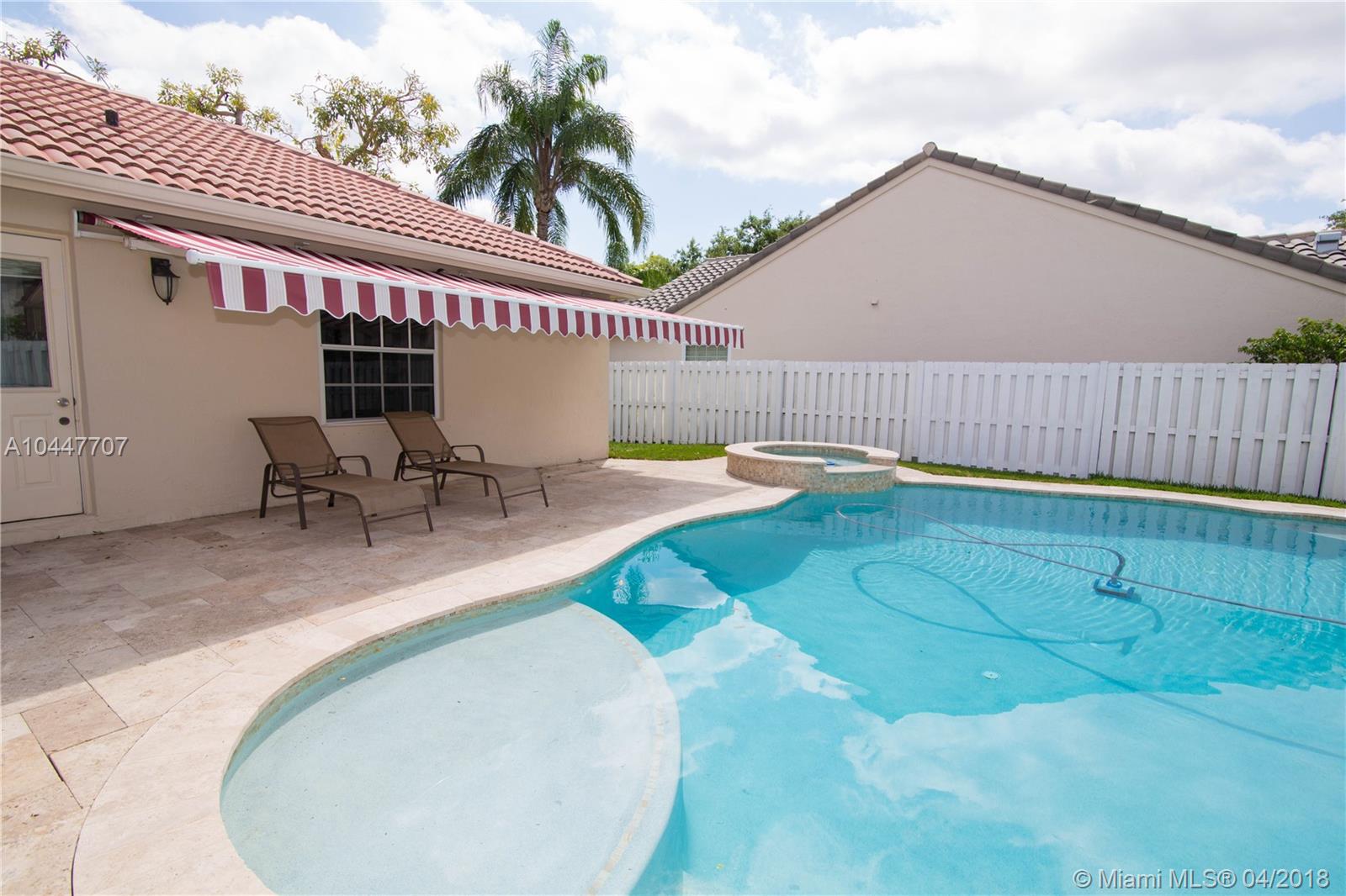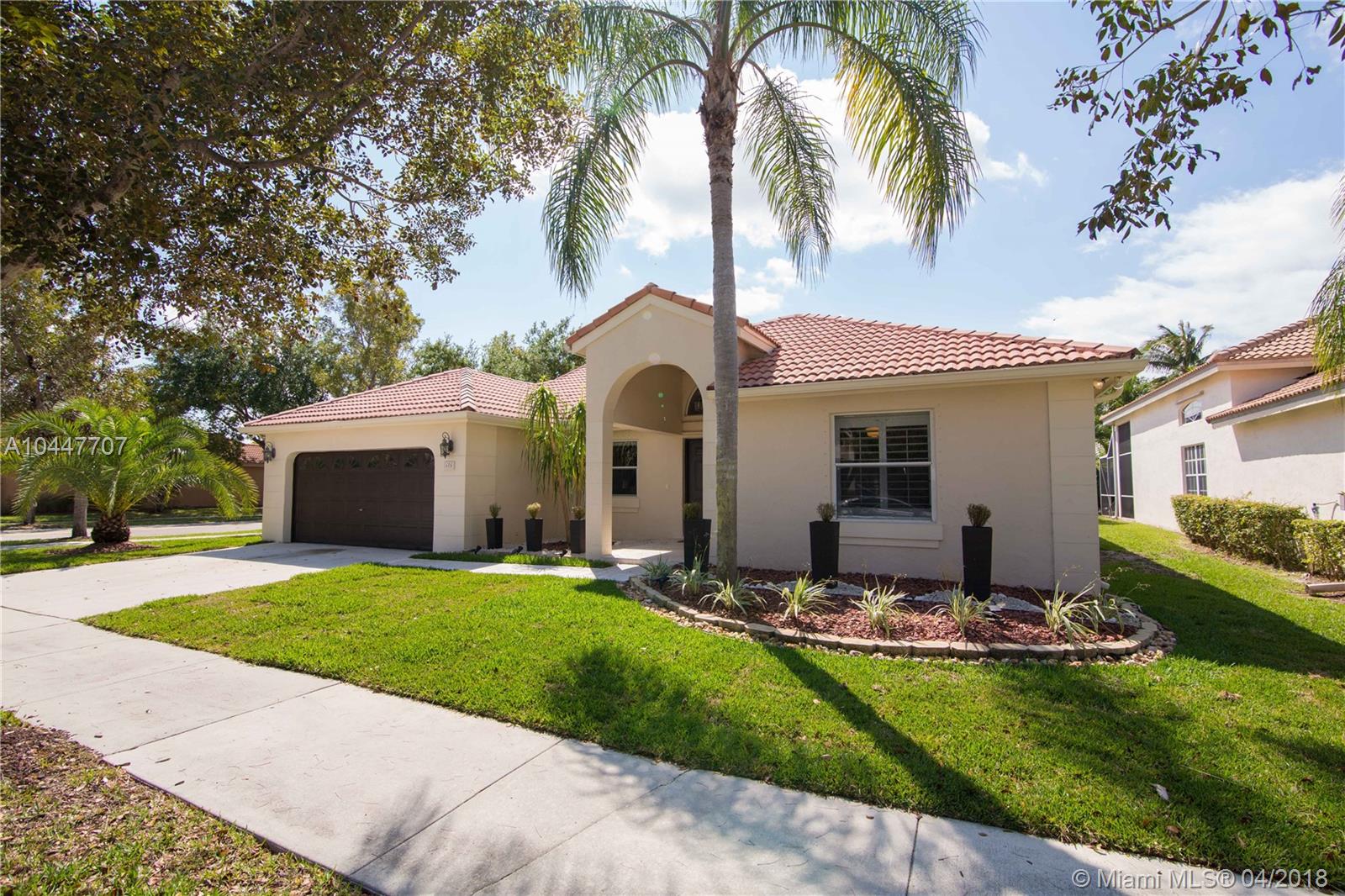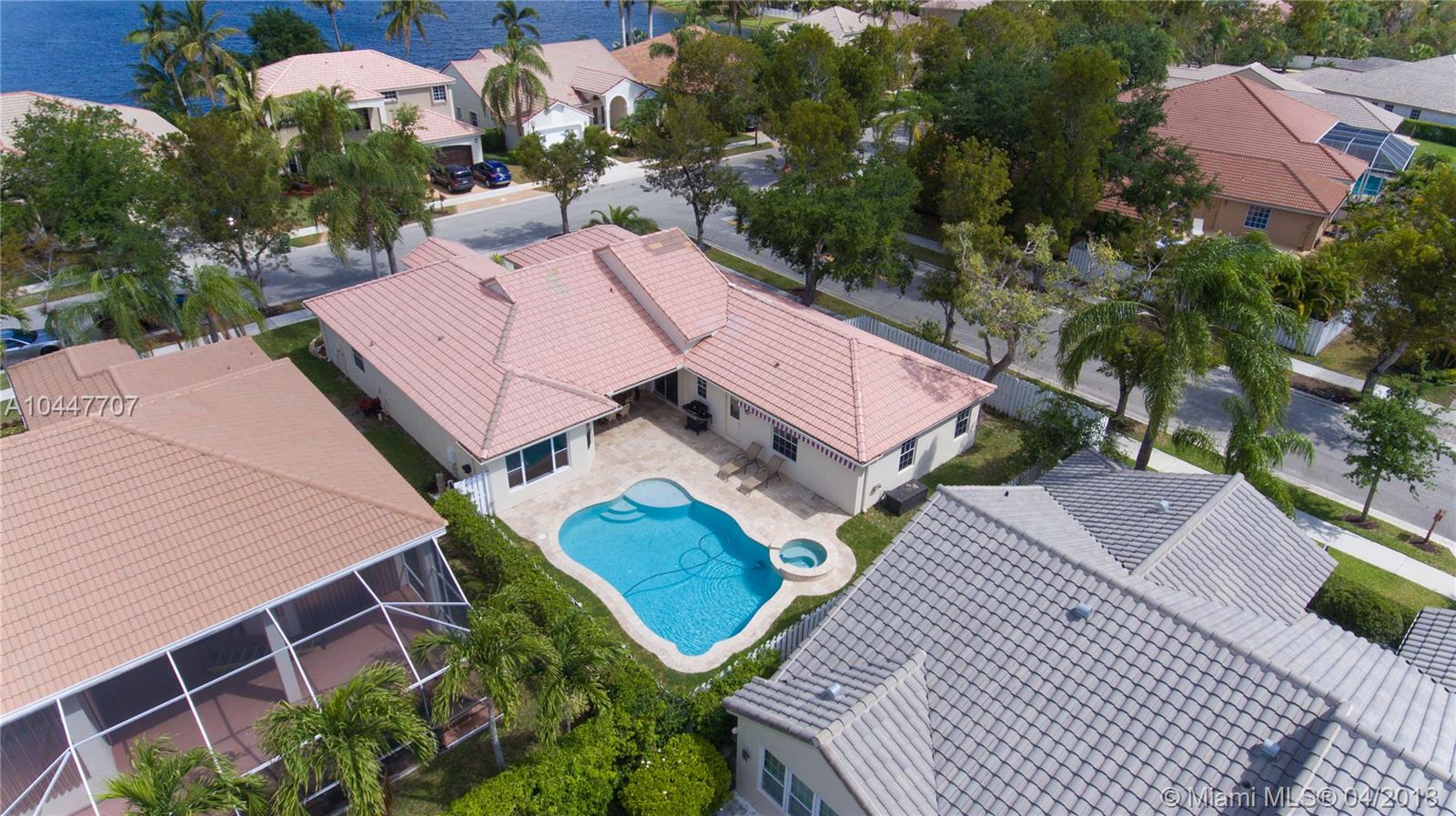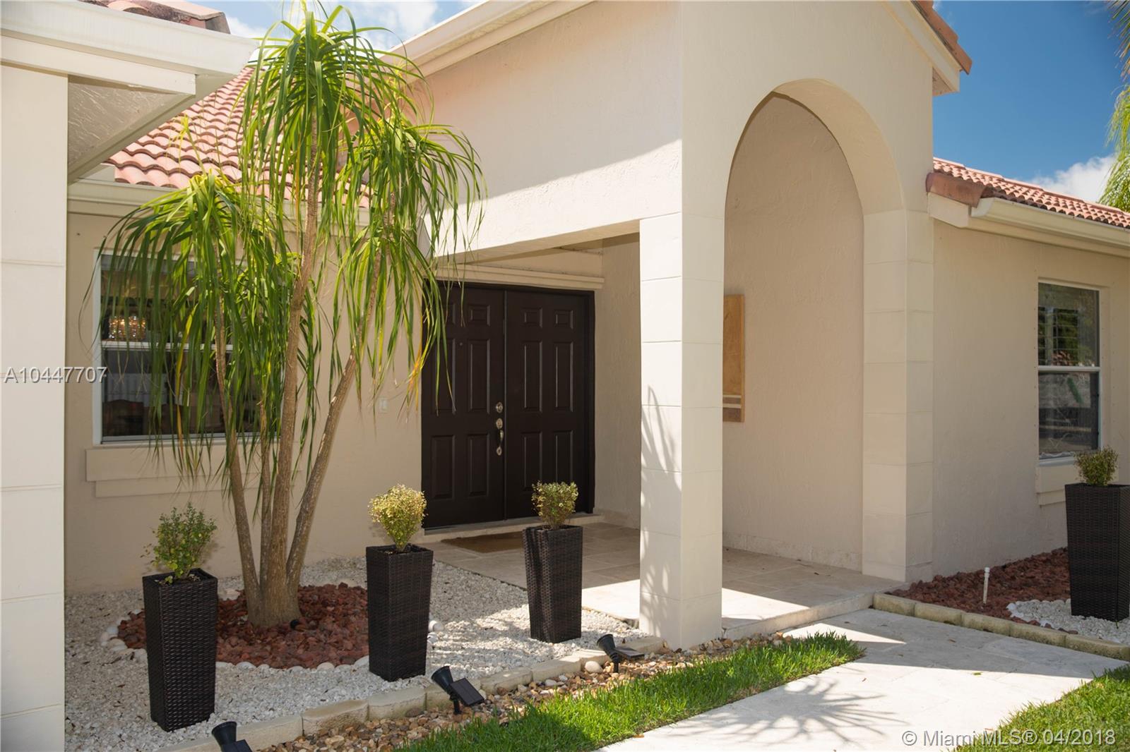 IMPECCABLE DESIGNED 5 BEDROOM AND 2.5 BATH HOME VERY WELL MAINTAINED. MARBLE THROUGHOUT LIVING AREA. BEAUTIFUL DARK WOOD FLOORS IN BEDROOMS. CUARZO COUNTERTOP IN KITCHEN WITH JACUZZI, TUB IN MASTER-BATH, BOTH BATHROOM JUST REDONE, HIGH END BLINDS. SIT OUT ON THE COVERED PATIO OVERLOOKING THE NEW SALT POOL WITH SPA. CORNER LOT. ROOF JUST PRESSURE CLEANED. GREAT LOCATION CLOSE TO SUPERMARKETS AND SAWGRASS EXPRESSWAY THE LAKES AMENITIES INCLUDE COMMUNITY POOL, PLAYGROUND, SOCCER FIELD, GUARD GATE. BEST SCHOOLS ALL A RATED.
