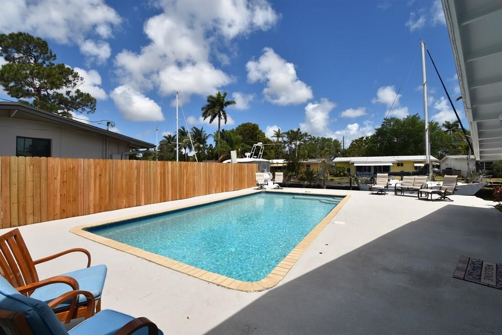 90 ft of Deep Waterfront-No Fixed Bridges- Large Pool- Brand New Roof, Impact Windows in sought After Shady Banks. Rarely available lot & a half, offers green space,pool patio & dock, fully fenced & only a 3 houses from the River w/ Riverviews. Open floor plan, vaulted ceilings, tiled floors, 3 bedrooms plus addt'l office, nursery or 4th bedroom,2 baths, open updated kitchen,large Florida Room w/ water & pool views. Walk in closet in master w/ updated bath. Freshly painted interior & exterior. Must See!