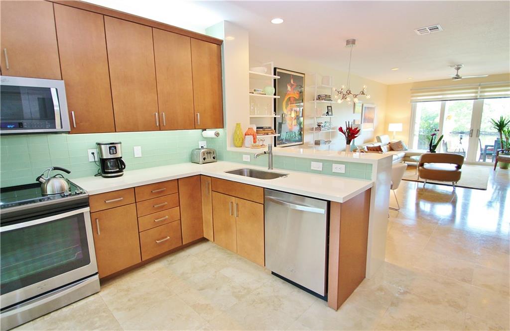 Wow, Spectacular updated Waterfront Town Home with Dock. Quaint Key West-Style Development of 15 homes on the South fork of The Middle River. Tree-Lined, River front Vistas from your own Patio. Contemporary Interior Features include Travertine Marble Flooring, Volume Ceilings & Recessed Lighting. Hurricane-Impact Windows/ Doors Throughout! Master Bedroom boasts an En Suite Bathroom, Volume Ceilings, Walk-In Closets & Full-Length Balcony! Pet Friendly. Covered Parking. A few short minutes to Wilton Drive.
