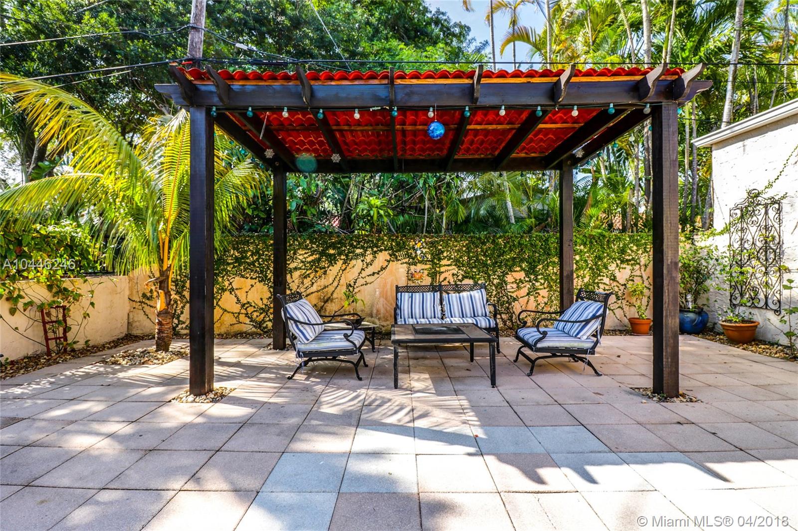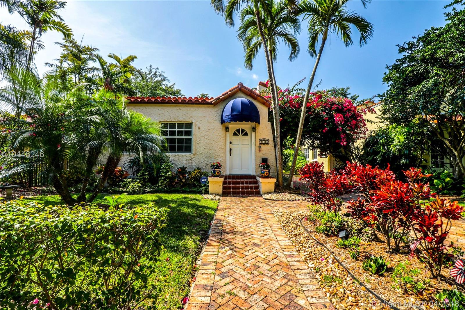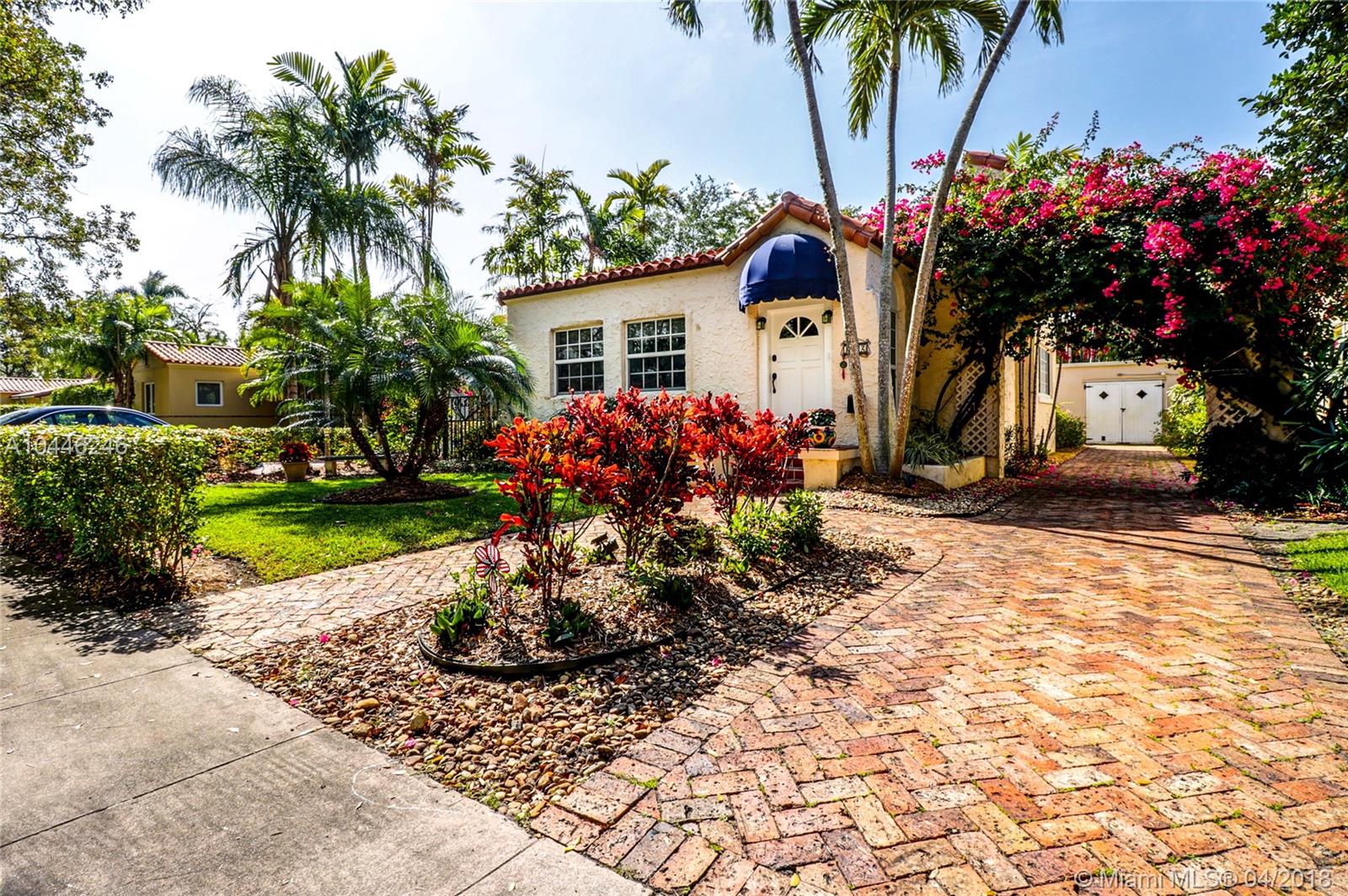 Undeniable Gables charm flawlessly renovated to modern standards. Steps from the Coral Gables Country Club & Granada Golf Course, this beautiful 2/2 home with 1/1 cottage offers: oversized impact windows and doors, Brazilian cherry floors, new AC, custom cabinets and built-ins throughout, updated electrical and plumbing + sewer, high-efficiency tankless water heater, custom closets, and new roofing. Historic arches, French doors, and wood-burning fireplace have been perfectly preserved. Marble baths were recently redone. Remodeled kitchen features granite counters, travertine backsplash, stainless steel appliances, and plenty of storage. Inviting backyard patio includes pergola, café lights, mature landscaping, and iron gates and fencing. Cottage has full bath and own AC unit.