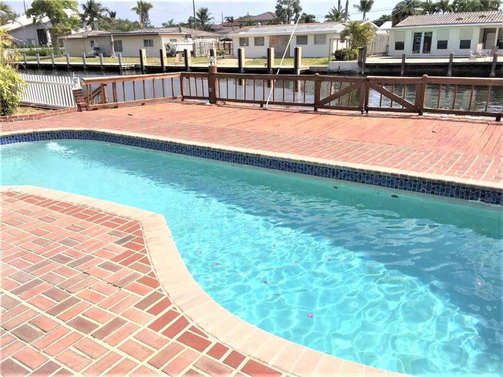 Snug Harbor, canal front with Ocean access location. Ranch type 3/2 with 2 car attached garage,pool,deck overlooking the canal. Perfect for a boating enthusiast,recreational fishing. The dock is approx. 70 ft. the wide canal connects to a deep water canal.One fixed bridge with 18ft clearance. Home needs TLC and is sold strictly in "as is" condition. Cash offers please. All offers are subject to seller's addendum (attached) and proof of cash funds.Closings and escrow with sellers designated Title agent.