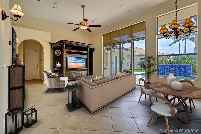 This beautiful executive home is located in the Jardin subdivision of the renown Weston Hills golf community of Weston. The main house features 3/3 plus a separate cabana/guest room/office with a bathroom. Pool with a relaxing waterfall & built-in BBQ grill in the courtyard. Wood floors in the bedrooms, 20" diagonal tile in social areas. Volume 12 ft. ceilings. Plantation shutters and designer lighting. The kitchen has granite countertops and wood cabinets. All closets are built out. The master bedroom features a sitting area/office space with a view to the pool. Glass block in the master bath for more natural light with privacy. Roman tub. Located at the end of a cul de sac. A short walk to the community park. A prelisting inspection was completed; all major issues have been addressed.
