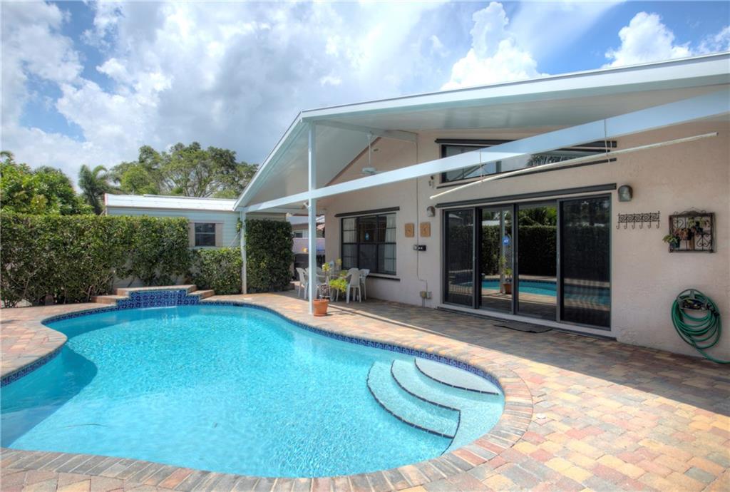 The Search for a perfect SO FL home ends here. This 2BR 2BA home w/ FL Room & fully permitted Sun Room easily converts to 3BR/office/den. Heated Salt water pool, CBS privacy fenced backyard & 1 Car garage w/built in cabinetry. Beautiful Sunroom addition features Vaulted Ceilings & Skylights, Large Shed/Workshop, Irrigation on well w/rust prevention & fertilizer built in & an 8-Camera Security system. Great location overlooking Middle River Terrace Community Dock. A short walk to Wilton Drive!