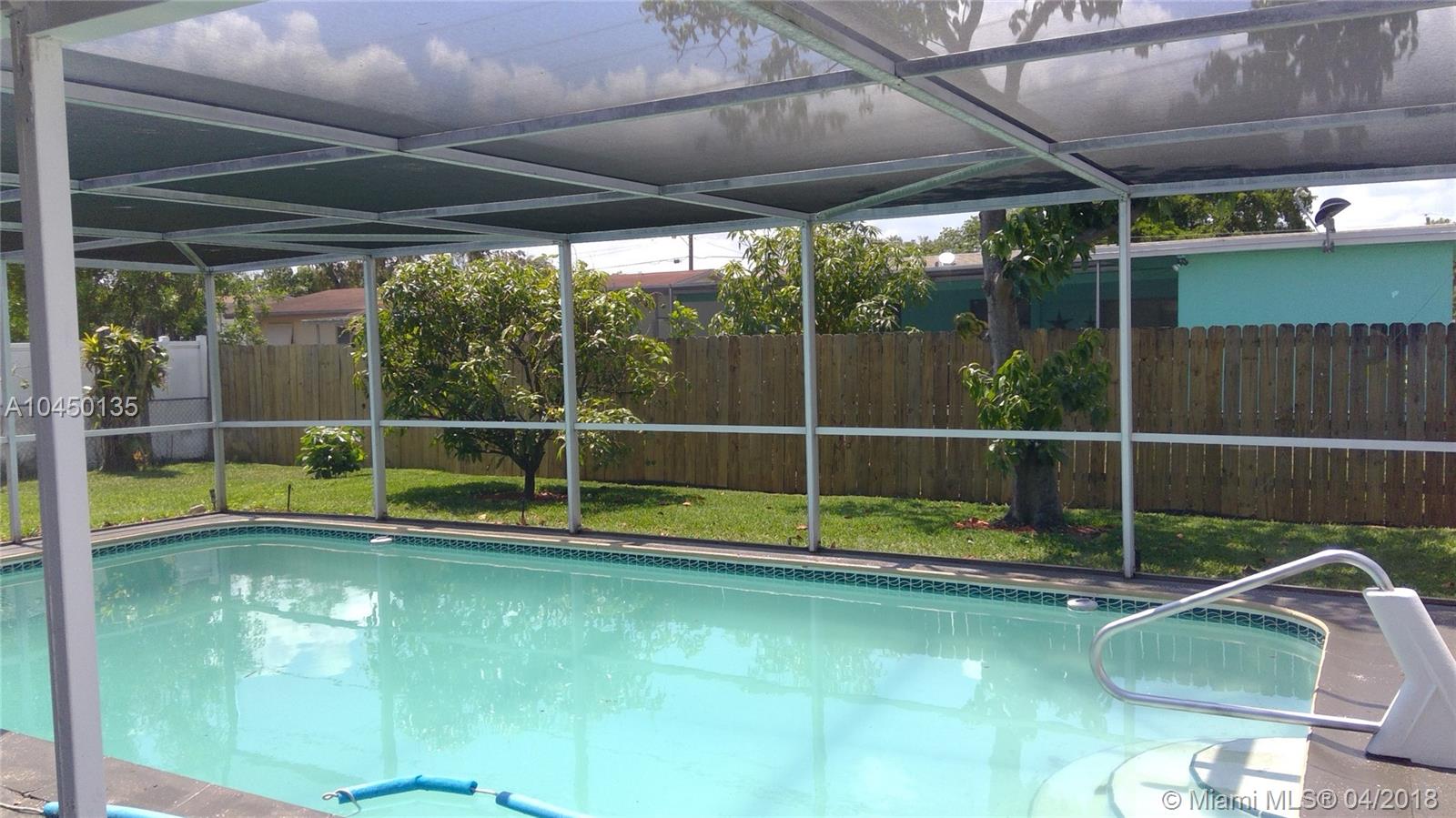 ATTRACTIVE 3/1 POOL HOME in Miramar. This HOME is PERFECT for a 1ST Time HOME Buyer! HOME Features: OPEN Floor Plan, UPDATED Kitchen with GRANITE Countertops + PASS Through Window to the Screened In POOL Area, All NEW STAINLESS STEEL Appliances, NEWER Tankless Water Heater, NEWER AC Unit, Laminated Floors, Transferable Alarm System, and BLUEPRINT/PLANS to ADD a 2ND BATHROOM! In Addition, the Inside Storage Room offers a Washer, Dry, and BONUS Refrigerator.. WAIT THERE'S MORE! NEWLY Installed ROOF, Hurricane Shutters, Screened Front Porch, Fruit Trees, SHED and Fenced Back Yard. This HOME is CLOSE to Schools, Shopping and Major Highways.