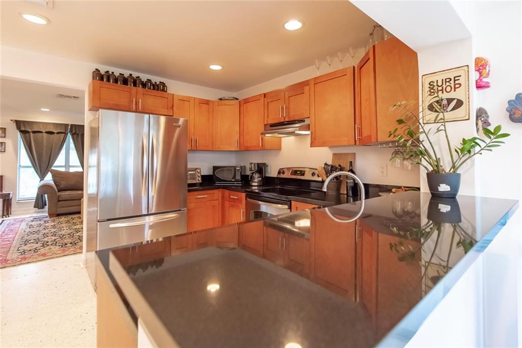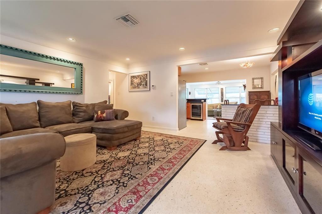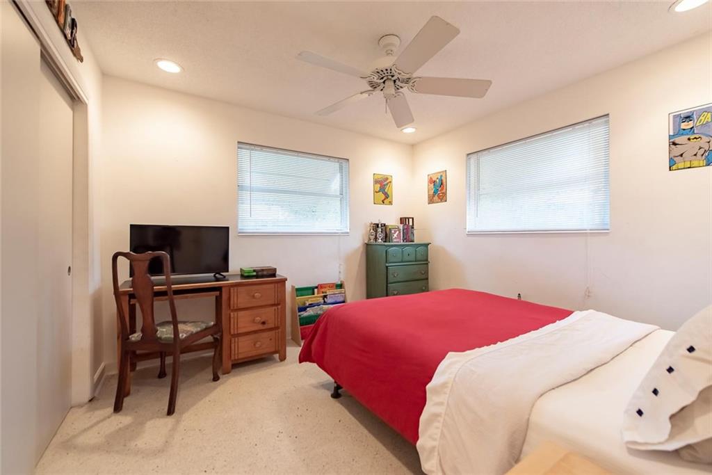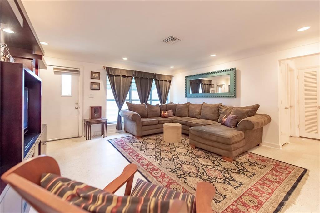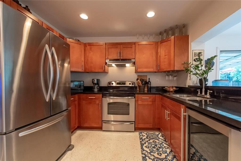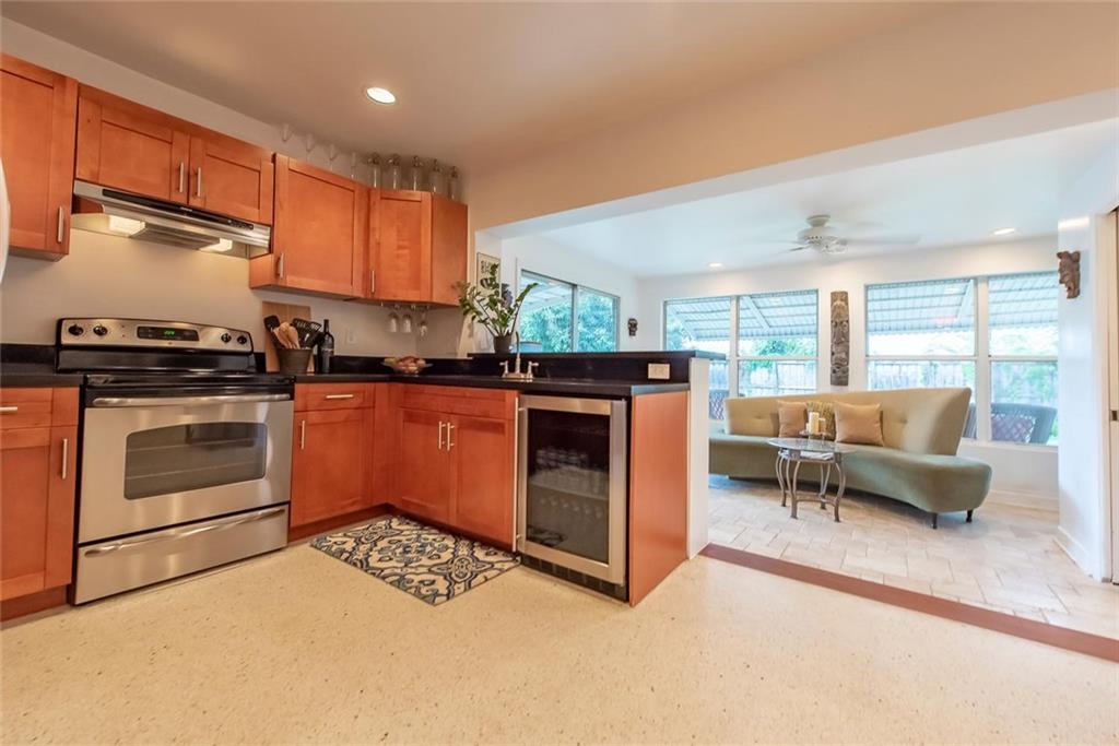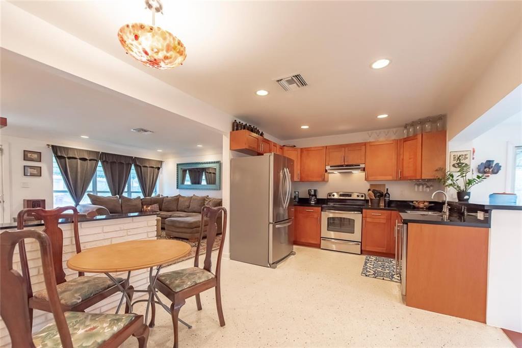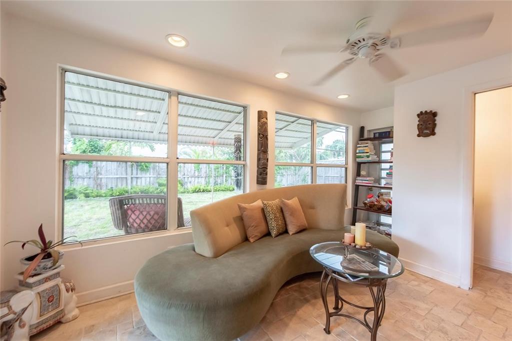 This 2 bed 1.5 bath home has a bright open Living/Kitchen/Florida room, updated kitchen w/granite counters, wood cabinets, and stainless steel appliances. Large fenced yard, great for outdoor entertaining, room for a pool. Terrazzo floors throughout. Bonus room can be used as den/office. One car garage. Large laundry/storage room for extra storage. Newer roof (2015). Updated electrical. Boat parking on side of house. Great for first time home buyers or investors. Don't miss this cute, move in ready home!