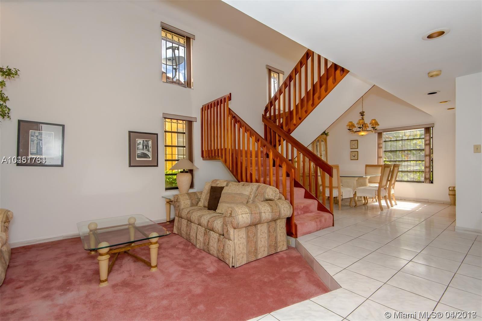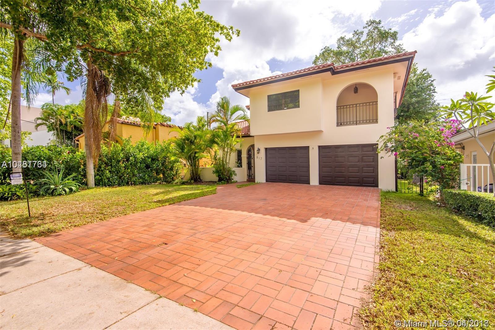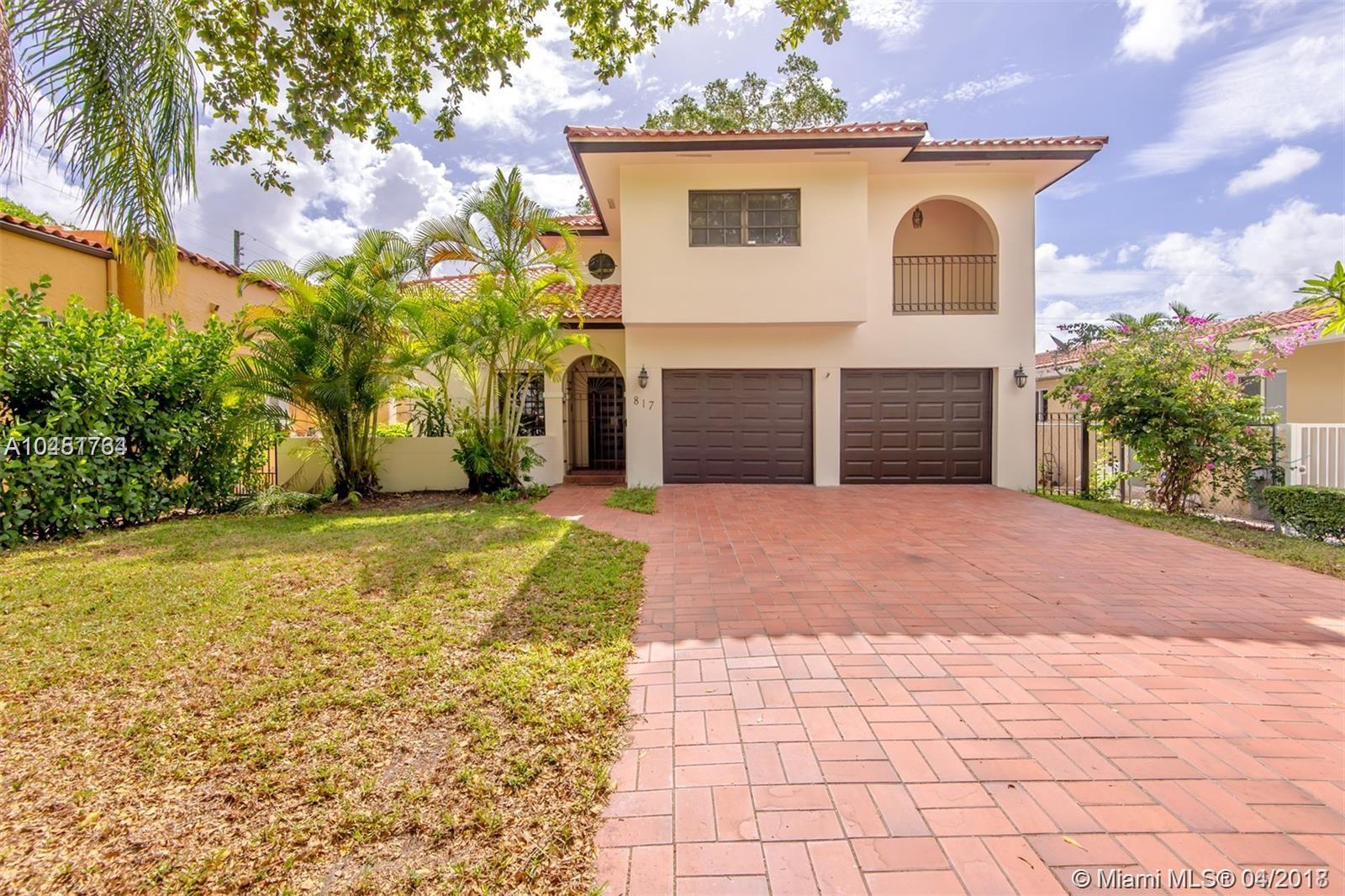 Spacious north Gables two-story home,3 bed/ 2.5 baths/ 2-car garage on a beautiful tree lined street. Home is 2490 SF house on a 5250 SF lot including a large patio in the backyard for entertaining. Bedrooms are on 2nd floor and master bedroom has a balcony. Living and dining rooms have 16' tall ceilings while bedrooms have 9' ceilings. Family room can be converted into 4th bedroom. Recently painted inside and out and features a home central vacuum system and 2 central A/C units. New neighborhood park on the street. Minutes from downtown Coral Gables, restaurants, shops, schools, youth center. home warranty available.