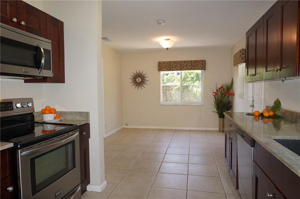 All Impact Windows, 1 Car Garage w/hurricane door. Updated Electrical, Modern updates, Kitchen has Cherry Wood soft shut cabinetry, stainless appliance package, neutral granite counters and a breakfast area with room for a table & 4 chairs. Open Living and Dining Area, Tile flooring throughout home. Both Baths remodeled in a contemporary Style. Large Master, with space for a King Bed & dressers, Walk In closets in Bedrooms. Huge fenced yard, Parking Slab in front for additional parking. Move in Ready!