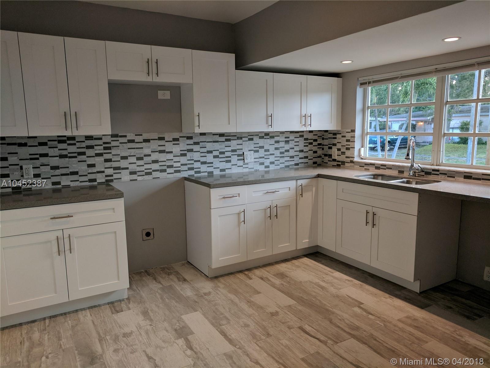 Sunny bright modern updated home in Flamingo Park. Has new roof, AC, floors and Kitchen and much more. This home is very sunny and come with 70 ft of water with no Fixed Bridges. Master bedroom opens up to the back yard with french doors overlooking the waterway. Master also has a walk-in Closet and a nice master bath. The second bedroom also has a french door opening up to the back porch with great water views. This is a must see property