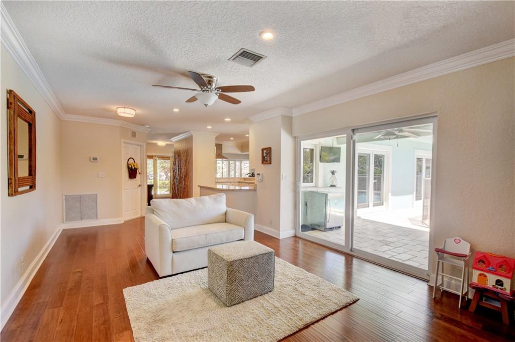 Boaters paradise!!Literally 2 minutes to the ICW and NO FIXED BRIDGES. Home very well maintained with a new roof 2 years ago, all impact doors and windows, wood flooring throughout entire home and much more. High efficiency a/c inside and out, brand new pool heater, high end appliances, and a large oversized garage. Gorgeous backyard w plenty of privacy, and pavered pool deck. Newer jacuzzi will also be left for the new owners. Large dock w plenty of boat parking and electric w 90+ ft of water.
