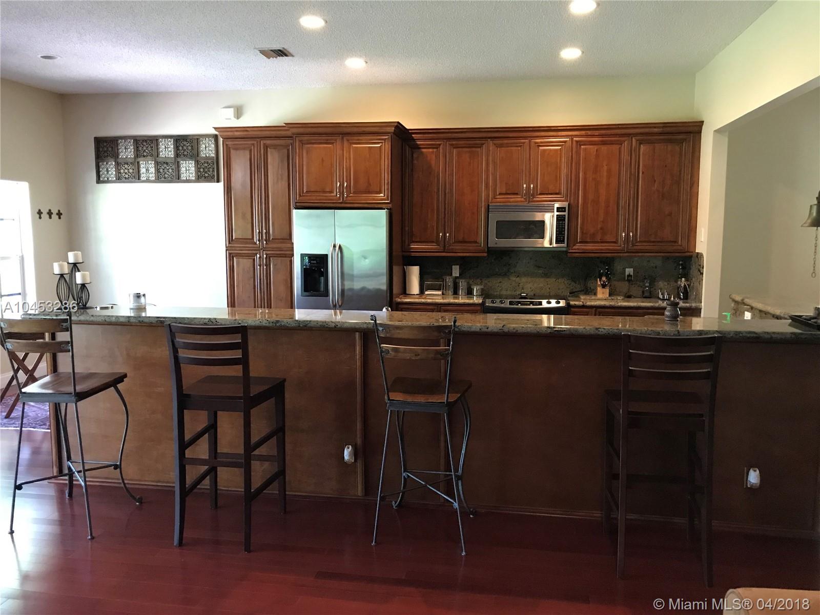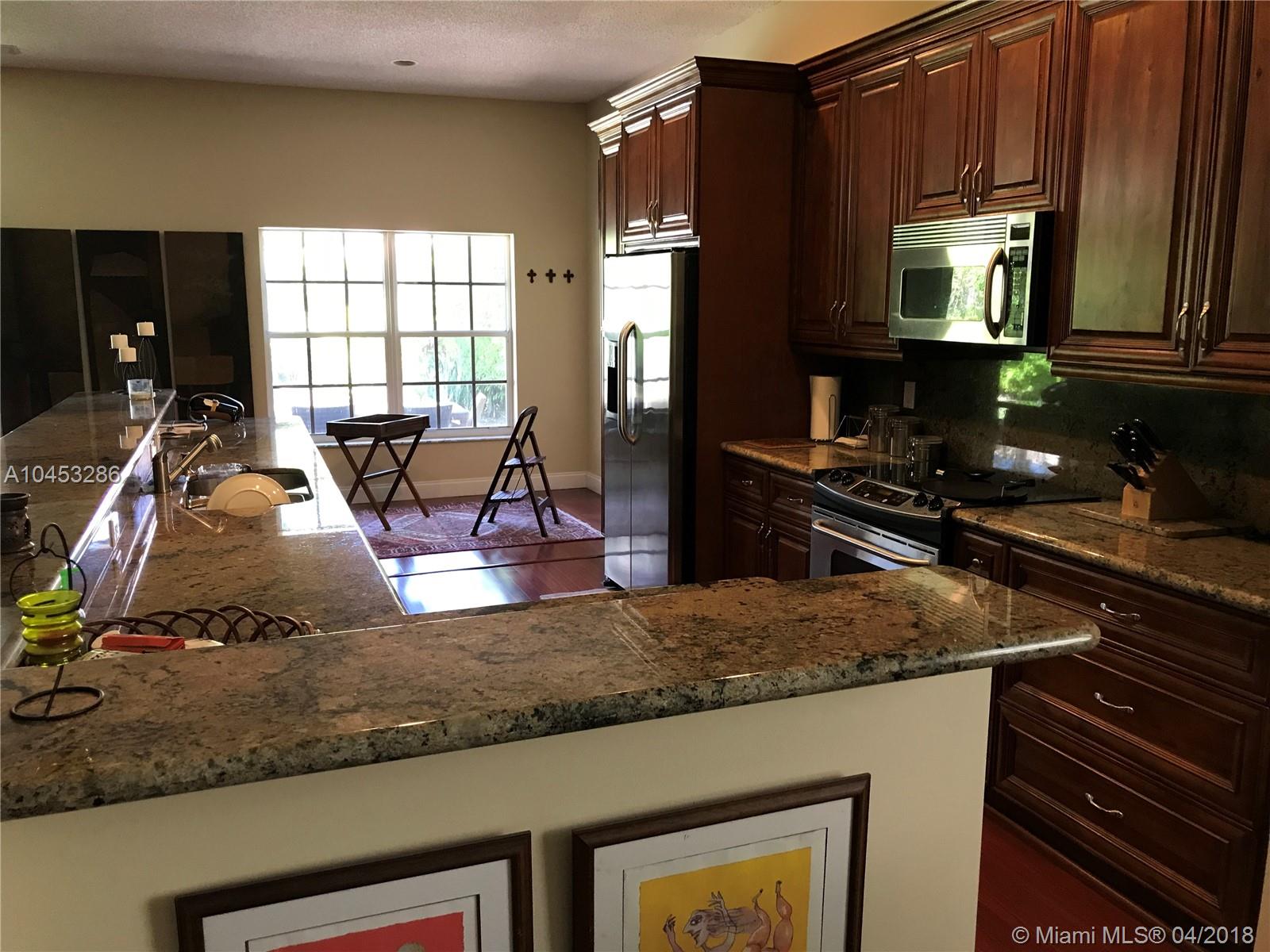 Upgraded 4 bed + Den and 2 1/2 bathrooms in a gated community. Freshly painted, Brazilian cherry wood floors, open kitchen, granite counter tops, marble floors in bathrooms, surround system, stainless steel appliances, brand new water heater, brand new air handle, paved terrace, room for pool, accordion shutters, retractable/extendable awnings. Call listing agent 24 hours in advance. Seller motivated.