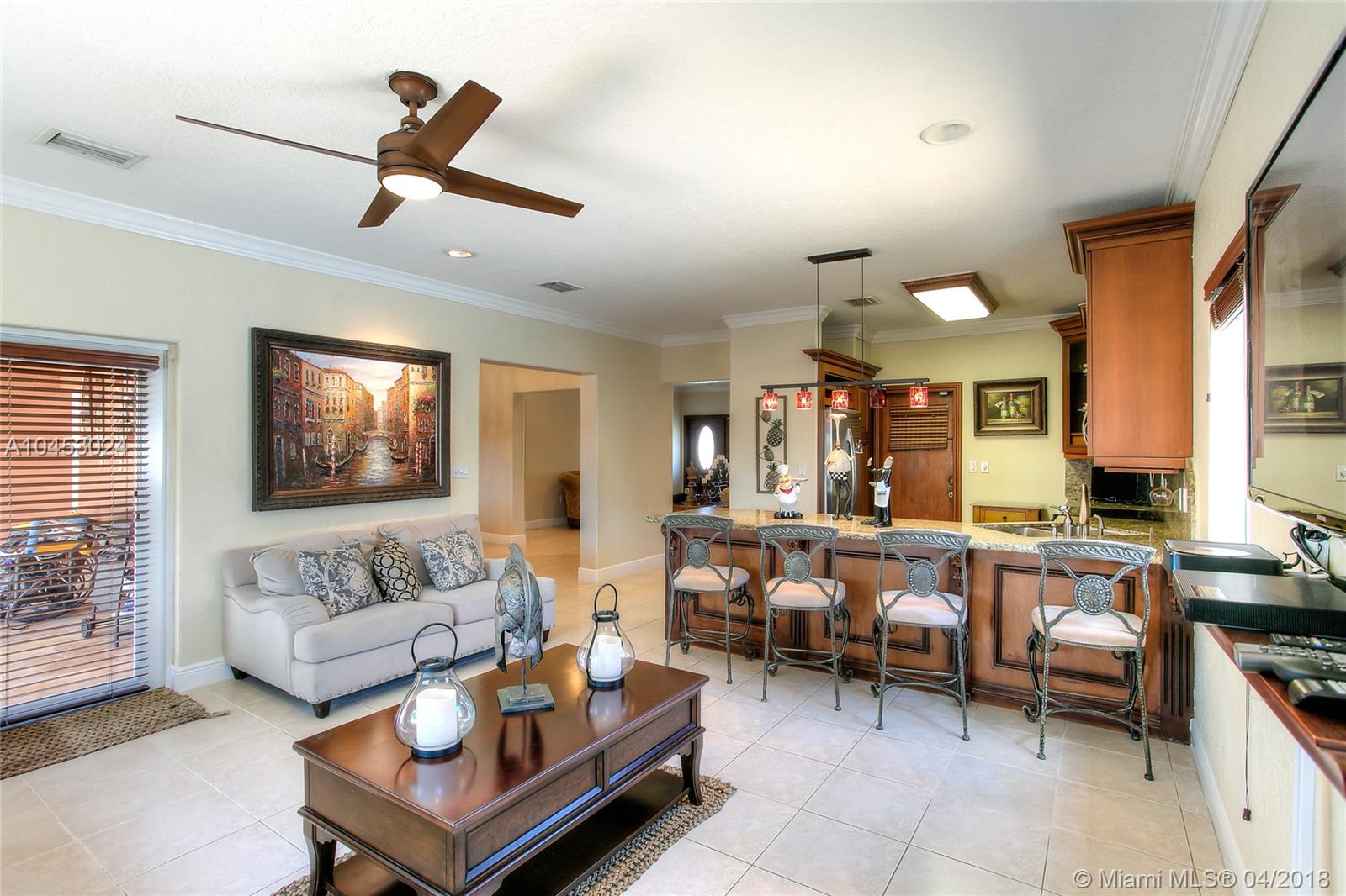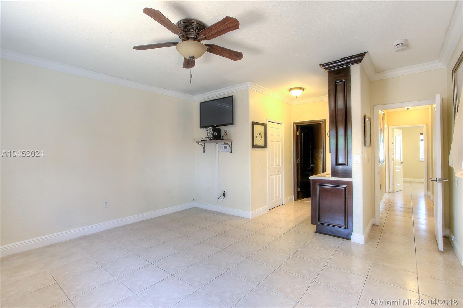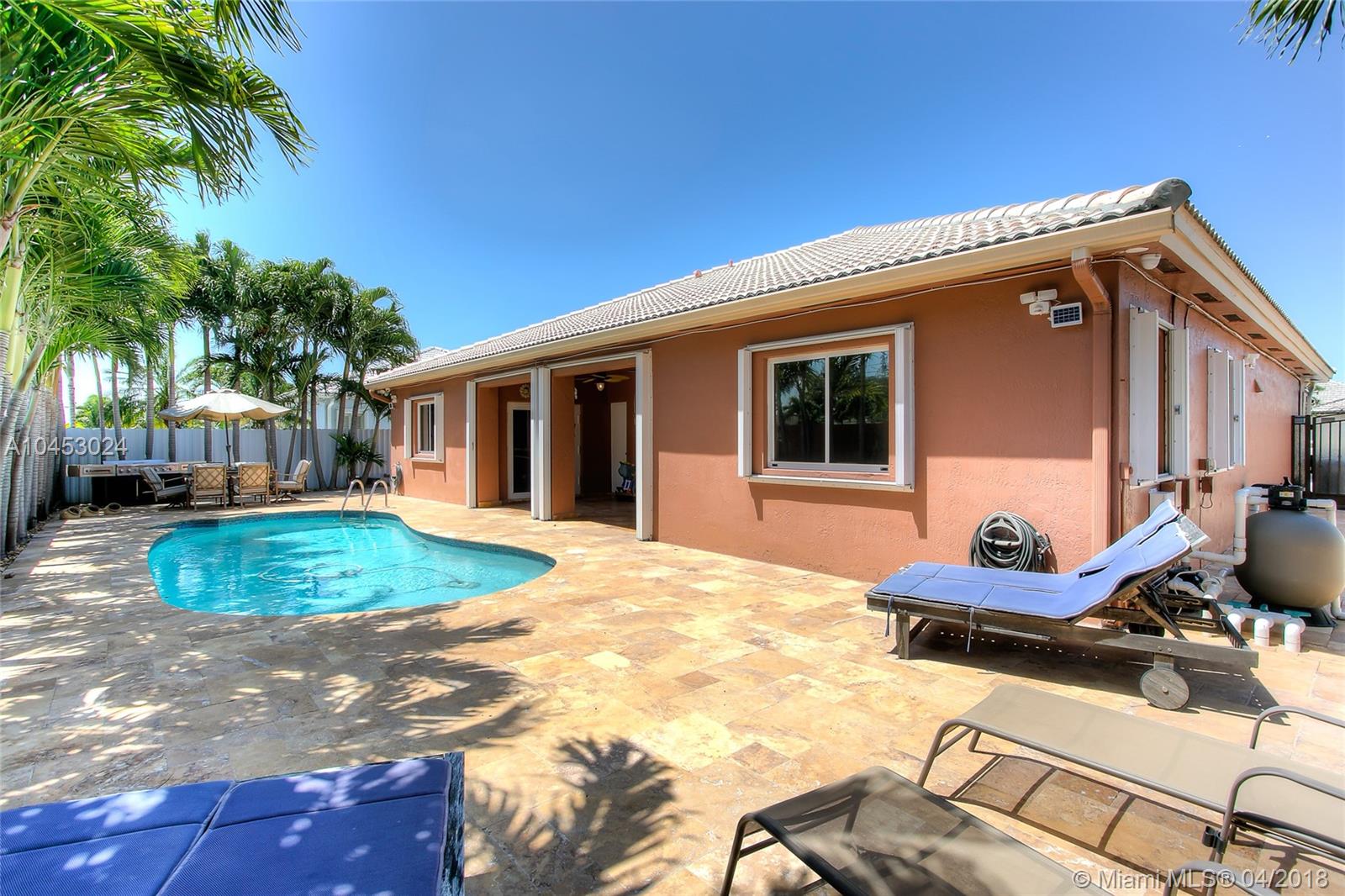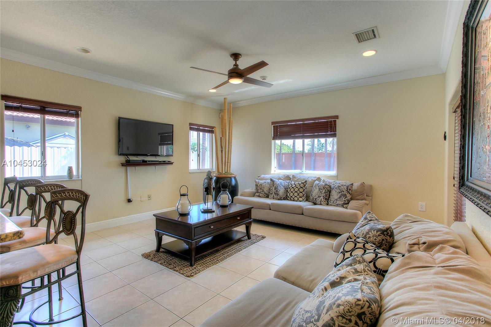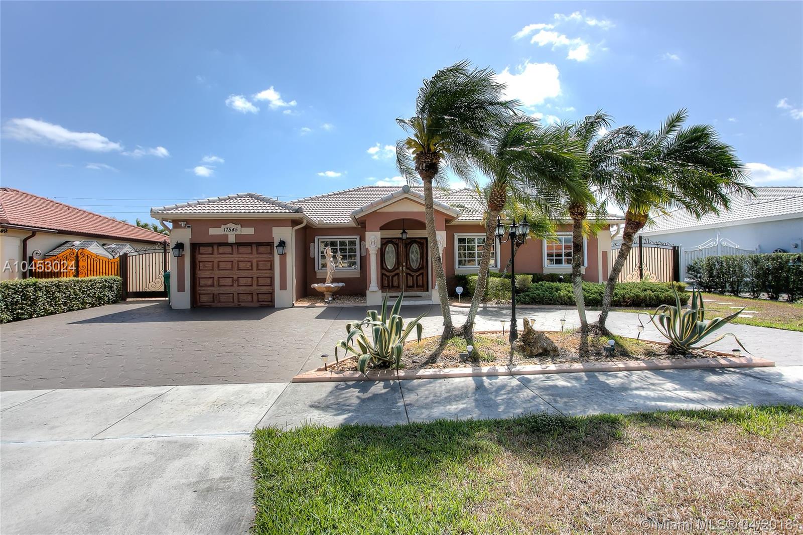 IMPECCABLE SINGLE FAMILY HOME LOCATED IN DESIRABLE COMMUNITY IN PALM SPRING ESTATES. SOME OF THE FEATURES ARE: 3 BEDROOMS, 2 BATHROOMS , LARGE CIRCULAR DRIVEWAY, ONE CAR GARAGE, ACCORDION SHUTTERS, NEWER AC UNIT, TILE THROUGHOUT, FORMAL DINING ROOM, REMODELED KITCHEN, FAMILY ROOM . THE SPACIOUS MASTER BEDROOM HAS A TASTEFULLY REMODELED MASTER BATHROOM AND WALK-IN CLOSET. THE FAMILY ROOM AND MASTER BATHROOM HAVE FRENCH DOORS WITH ACCESS TO THE SALT WATER POOL AND HUGE PATIO WITH COVERED TERRACE GREAT FOR ENTERTAINING. NO HOA..A MUST SEE..