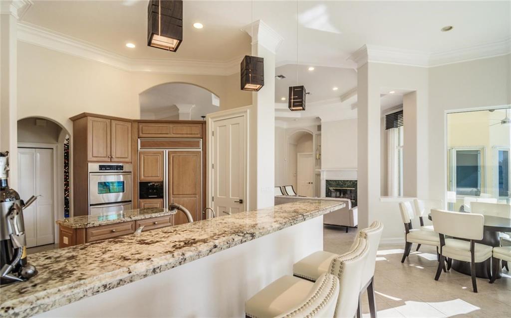 Perhaps the most Spectacular view in Weston Hills on this 19,159 SF Point Lot with Golf and Lake. Resort style Pool-Patio area wITH stunning Outdoor Summer Kitchen "A Chef's Dream". Open floor plan, 6 bedrooms + den with 5 1/2 baths. Separate guest/in-law quarters with Marble floors. Spacious Master with Sitting Area. Wood Kitchen cabinets w/granite tops & SS Appliances. Cabana Bath with Steam/Sauna, wood floors in bedrooms. Loundry rooms. 3 car garage