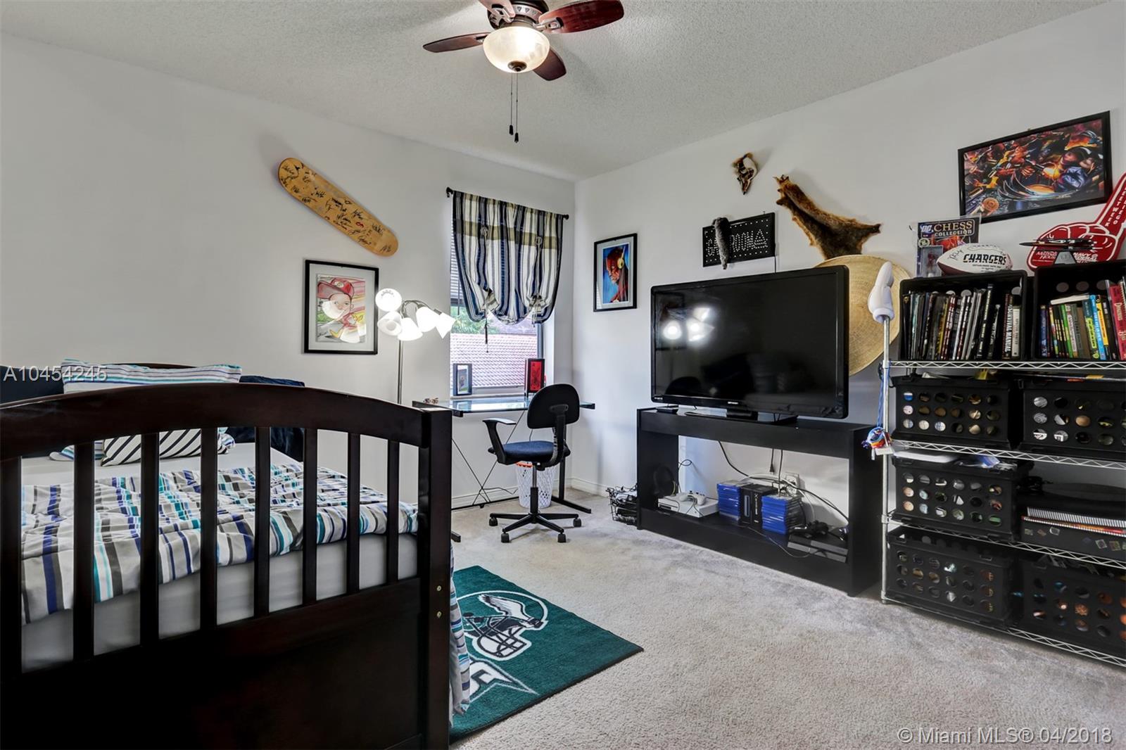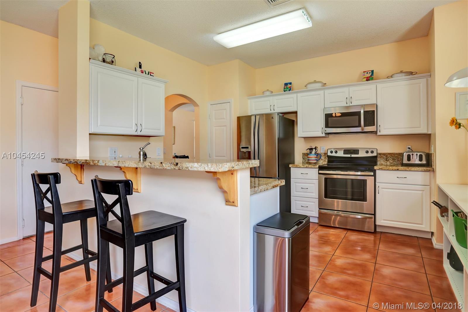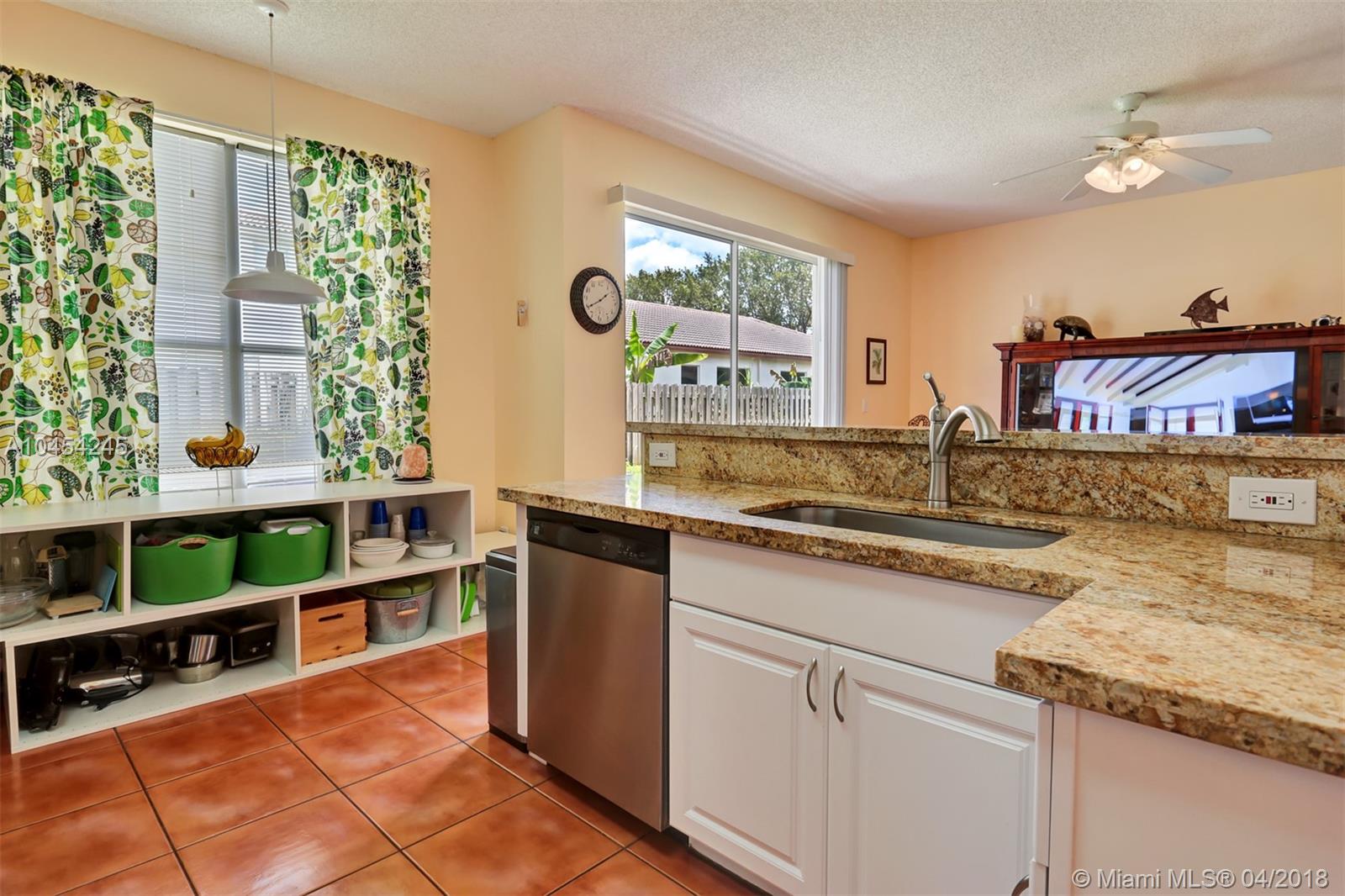 Beautiful cul de sac home located in sought-after community. High ceilings, plenty of windows and natural light. Kitchen redone with Granite counter tops and Stainless Steel appliances, large snack counter area leading to Family room, breakfast area, large Master bedroom featuring a tray ceiling, double door entry and a walk-in closet. Hurricane shutters for the entire home. Great community, minutes from major highways and a low HOA fee.