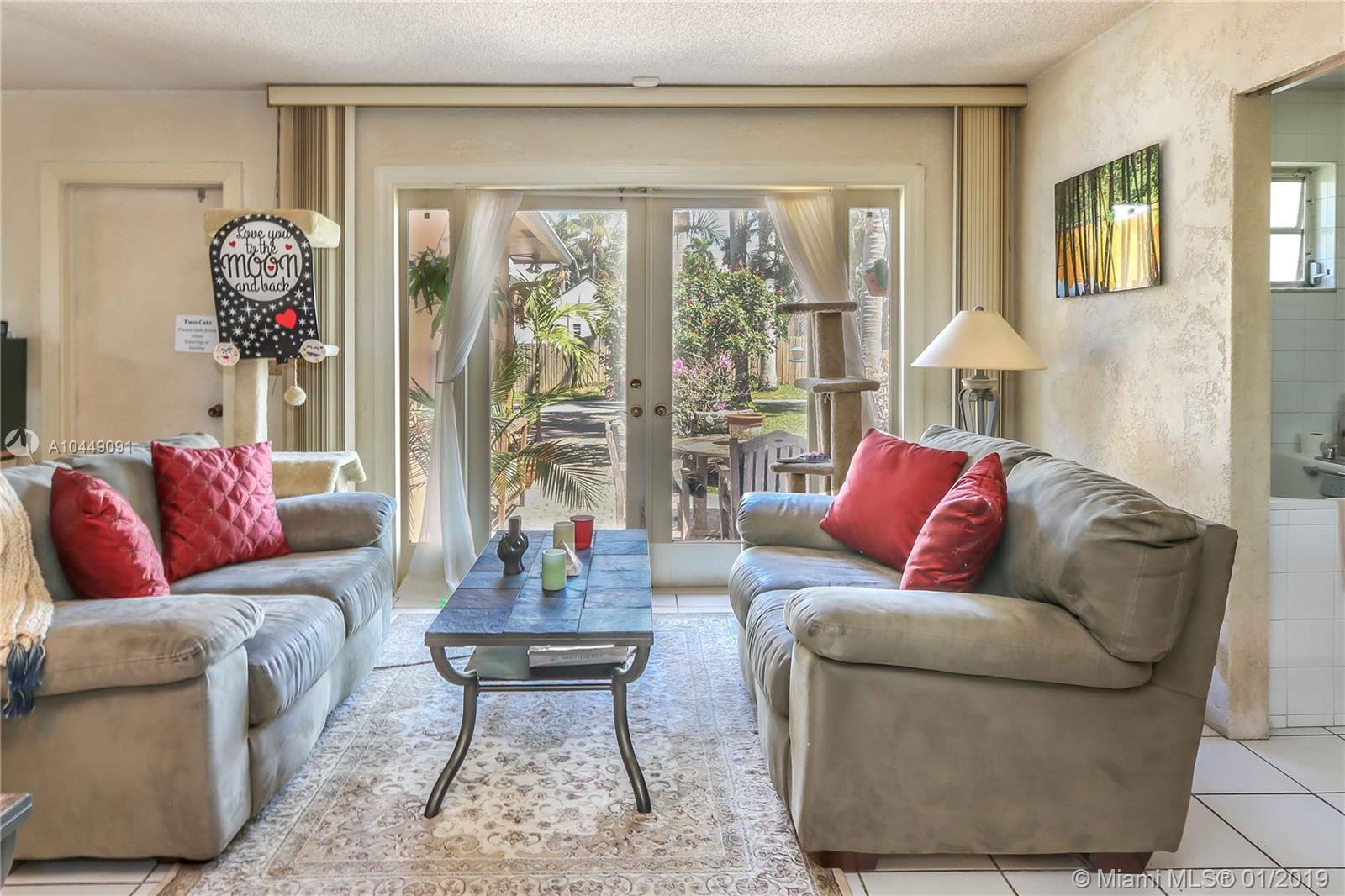 Great location just 2 houses down from North Lake. Lovely 2Bedroom/2Bath with 1 car garage plus a covered carport features a living room, family room, and formal dining room. Spacious open kitchen features white cabinets, counter tops, bar height dining and tile floors throughout. French door access from family room to lush fenced outdoor space. Short Distance to Downtown, Minutes from FLL International Airport and Short Drive to The Beach.