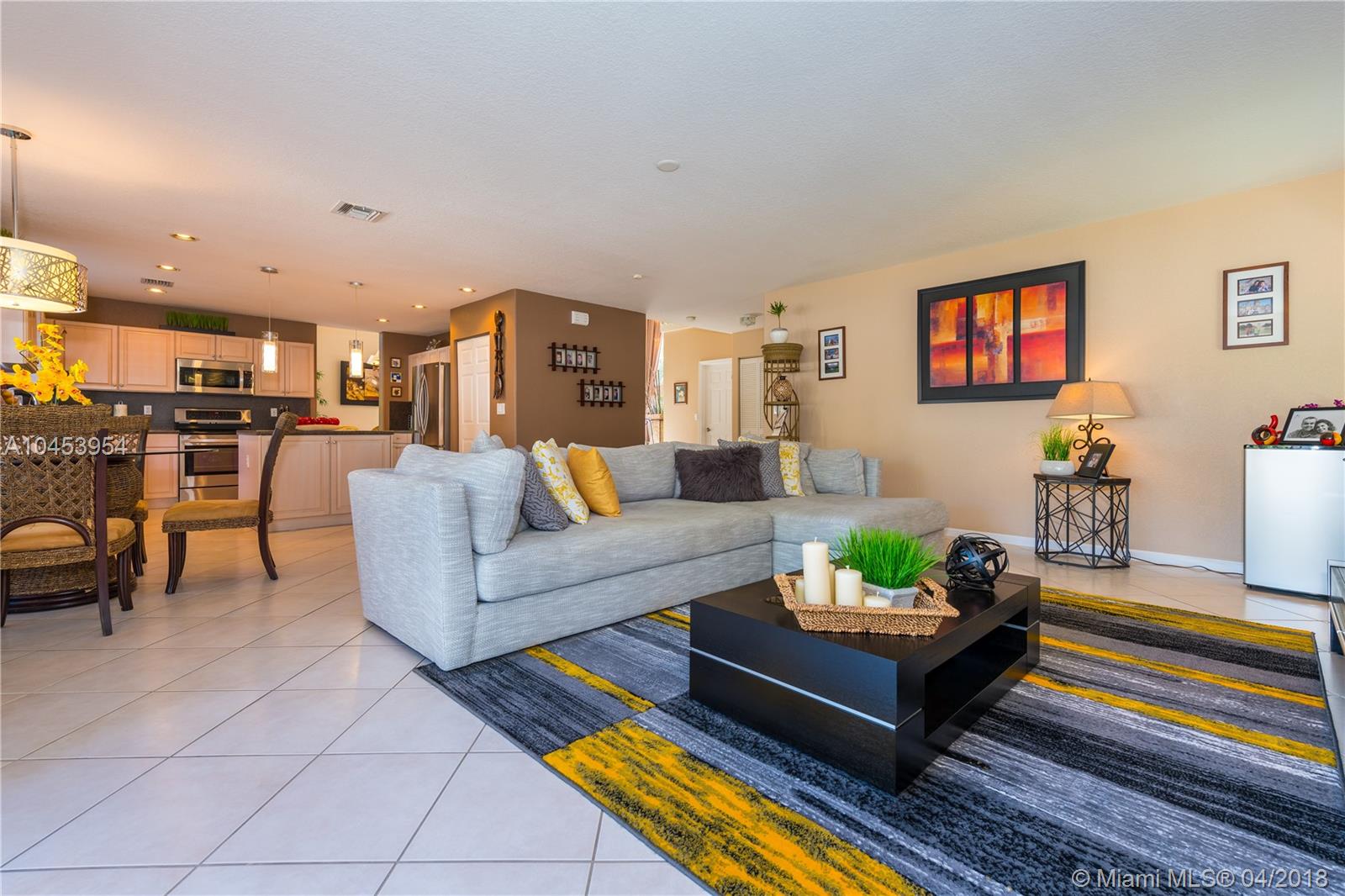OPEN THE DOOR AND FEEL AT HOME!! THE FELICIA MODEL HAS AN EXCEPTIONAL DESIGN WITH OPEN SPACES, DOUBLE HIGH CEILINGS, A BEDROOM DOWNSTAIRS AND FULL BATHROOM. A BEAUTIFUL STONE WALL DECORATES THE SPACIOUS FAMILY ROOM. STAINLESS STEEL APPLIANCES IN KITCHEN. DOWNSTAIRS AREA IS TILED. ALL BATHROOMS HAVE BEEN REMODELED WITH EXQUISITE TASTE. CARPET UPSTAIRS. BIG BACKYARD WITH A POOL. SELLERS SPEND $11,000 ON A NEW PVC FENCE THAT IS IN THE PROCESS OF GETTING INSTALLED. ACCORDION SHUTTERS FOR ALL WINDOWS. A/C WAS CHANGED 3 YEARS AGO. GREAT COMMUNITY WITH LOTS OF AMENITIES. 3D VIDEO availble ask your realtor