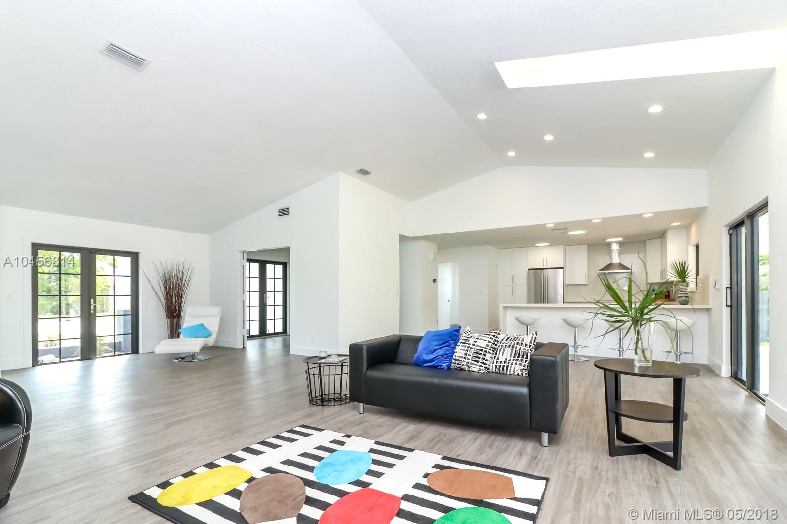 Rarely available opportunity- One of only 30 properties located directly on Miami Shores Golf Course. Just completed full renovation. Open concept, high vaulted ceilings, huge 25’ x 18' family room joining 12’ x 12’ living room, flowing into 13’ x 14’ kitchen with SS appliance and a 10’ quartz peninsula. Looking through the large patio doors, you see the 38’ x 9‘ patio, pool, huge back yard, lush landscaping, and acres of serene golf course beauty. Renovated Kitchen, bathrooms, new home automation system, AC, plumbing, and electrical. Alarm system, impact windows, and sprinkler system. 13,000 SqFt corner lot at end of cul-de-sac. Walking distance to Miami Country Day School, Miami Shores Country Club, tennis, and waterpark.