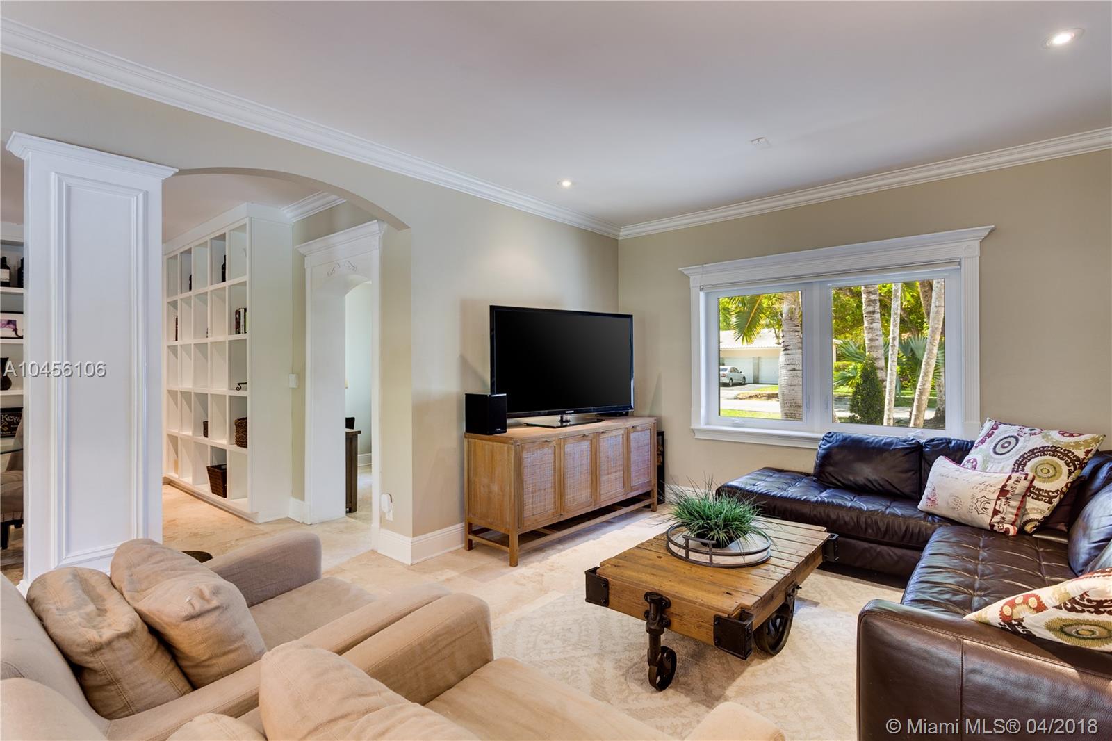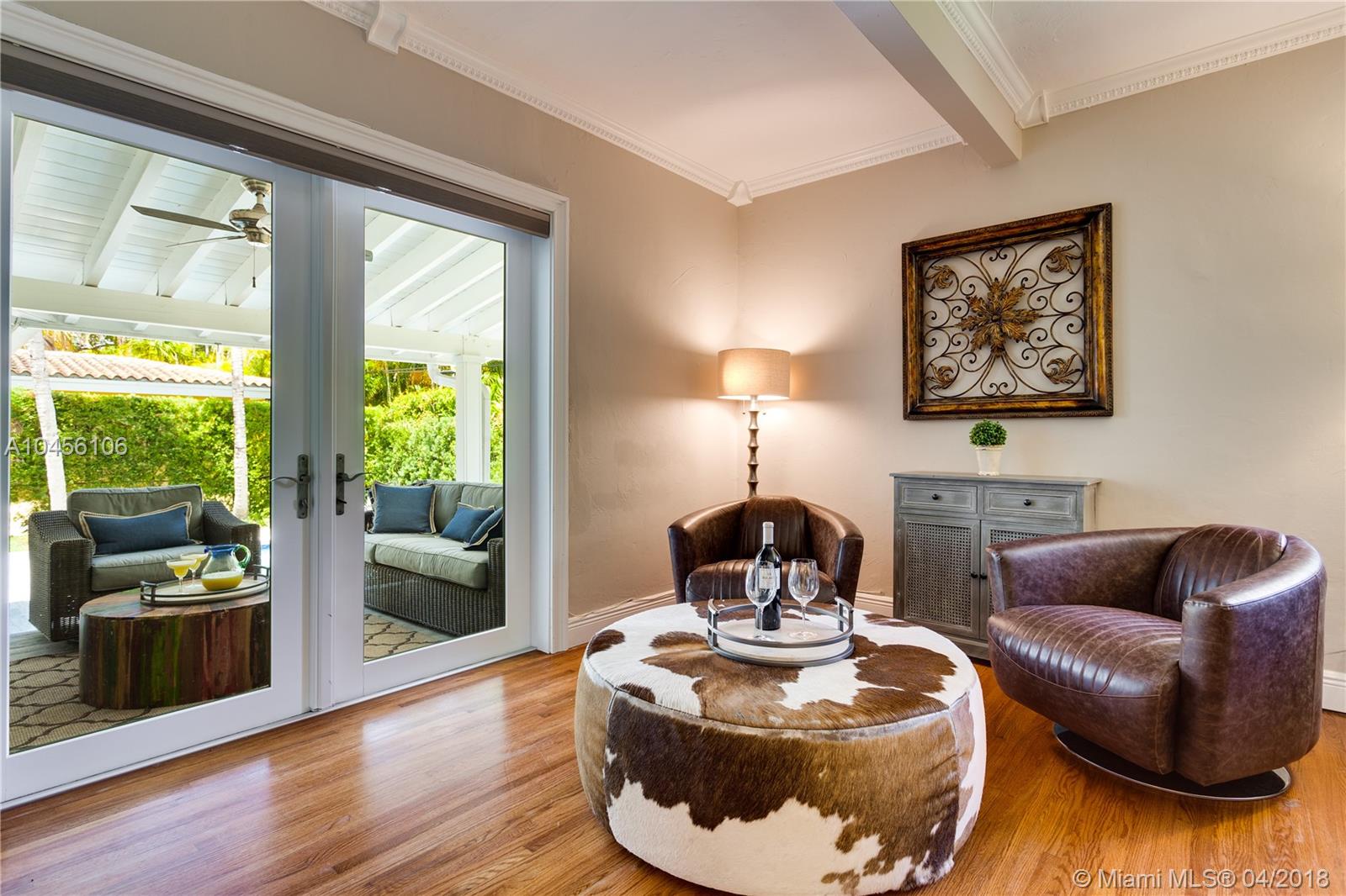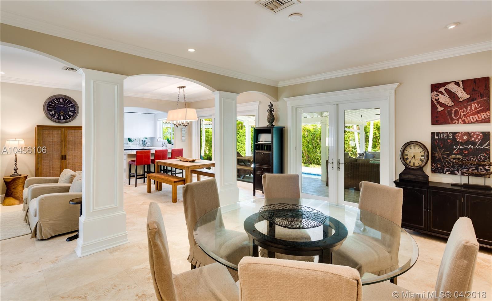 A one-story home in the highly sought after Coral Gables neighborhood known as the Platinum Triangle is now available. Shall we start with the curb appeal? This home has it. This 4 bedroom, 3 bath beauty delights in its architectural details, starting with the charming foyer that announces you have arrived and continues into the enchanting living and dining room with its intricate moldings and finishes. An updated kitchen and breakfast bar overlook the heated pool and covered veranda that act as an outdoor living room. Updated bathrooms are fresh and contemporary, and the master suite includes an office niche as well as a walk-in closet. A Very Special Home.