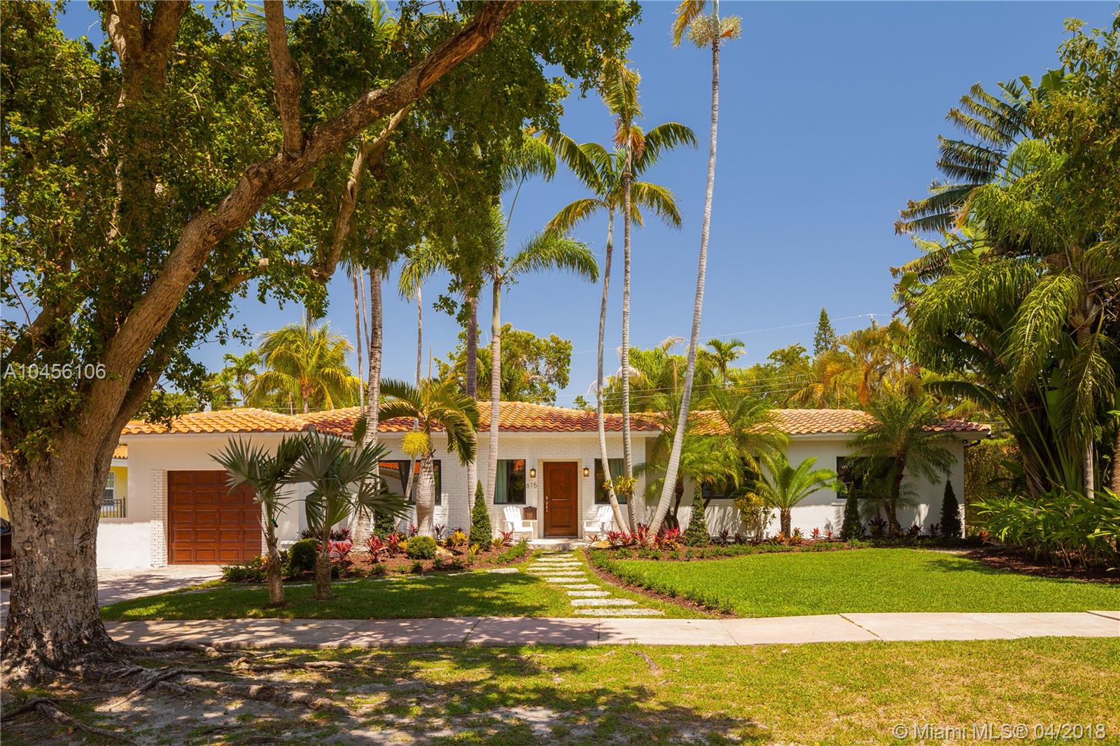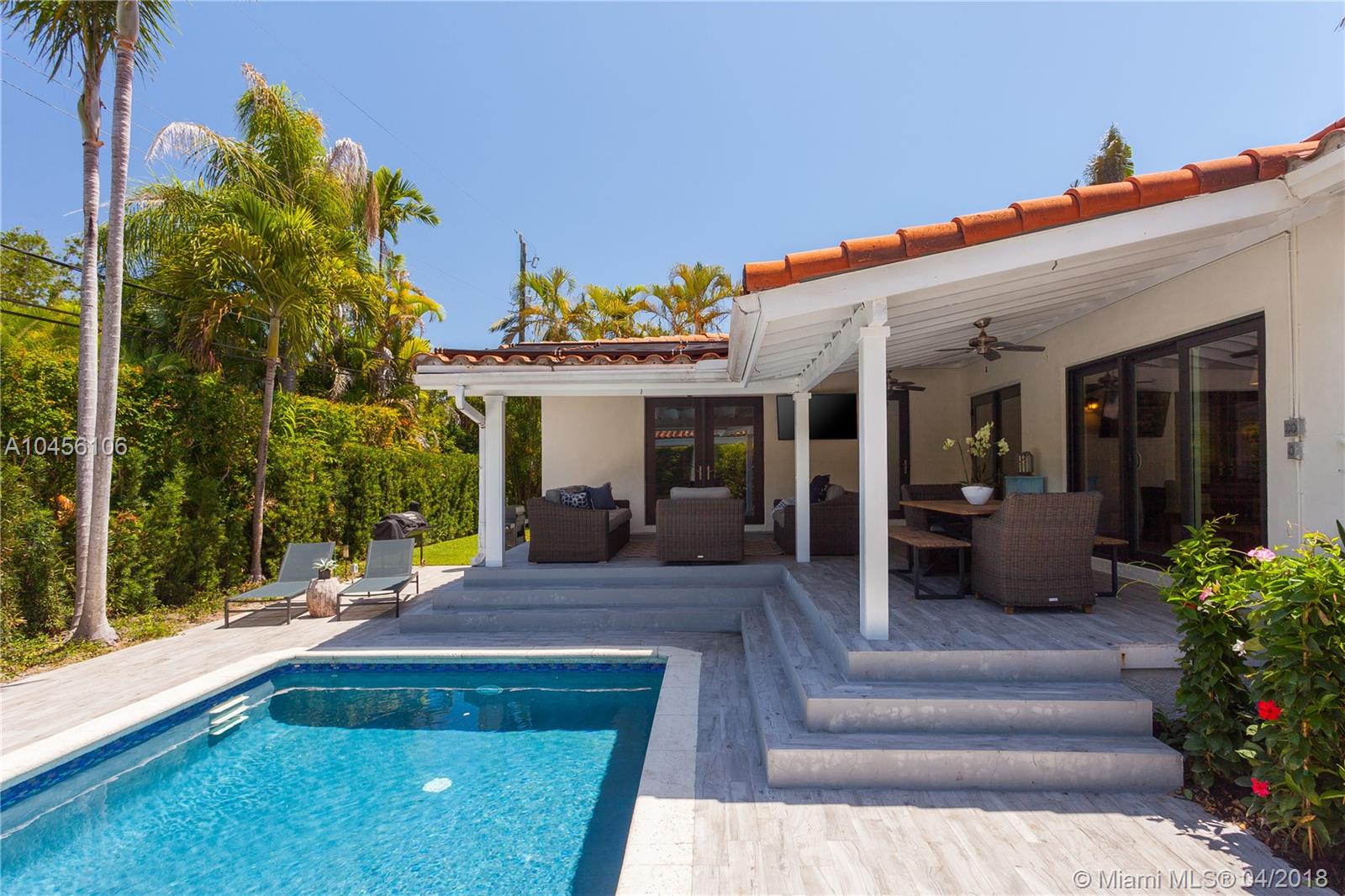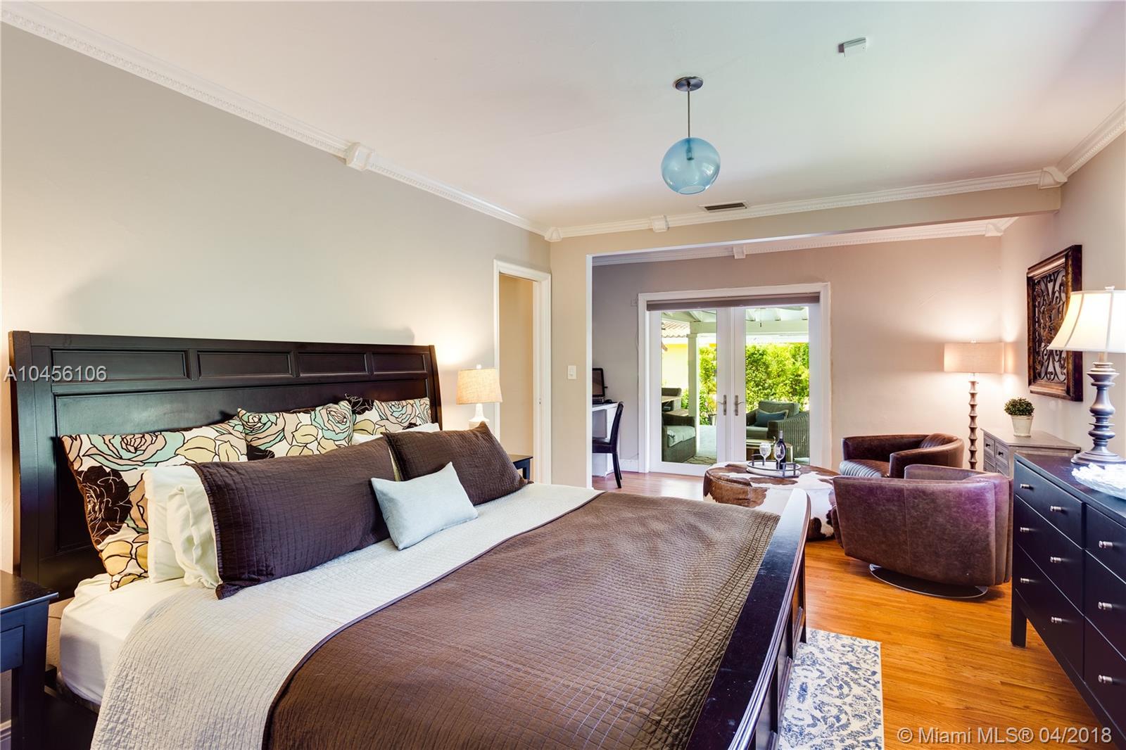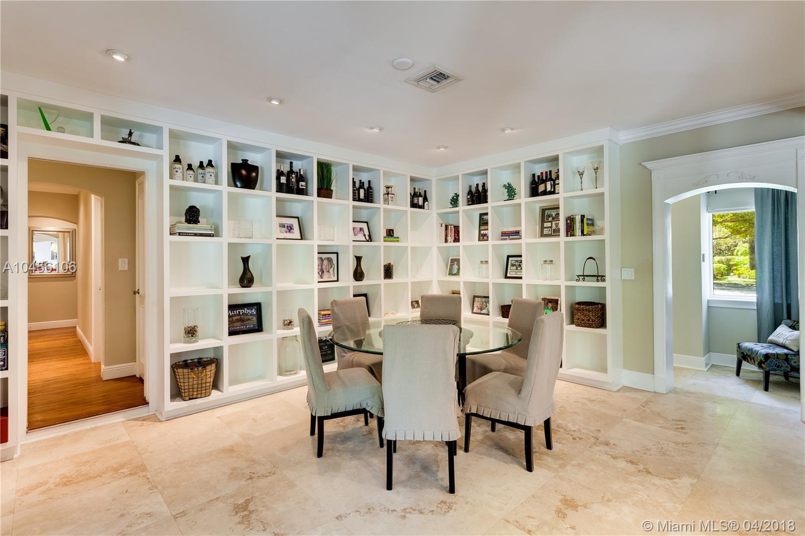 A one-story home in the highly sought after Coral Gables neighborhood known as the Platinum Triangle is now available. Shall we start with the curb appeal? This home has it. This 4 bedroom, 3 bath beauty delights in its architectural details, starting with the charming foyer that announces you have arrived and continues into the enchanting living and dining room with its intricate moldings and finishes. An updated kitchen and breakfast bar overlook the heated pool and covered veranda that act as an outdoor living room. Updated bathrooms are fresh and contemporary, and the master suite includes an office niche as well as a walk-in closet. A Very Special Home.