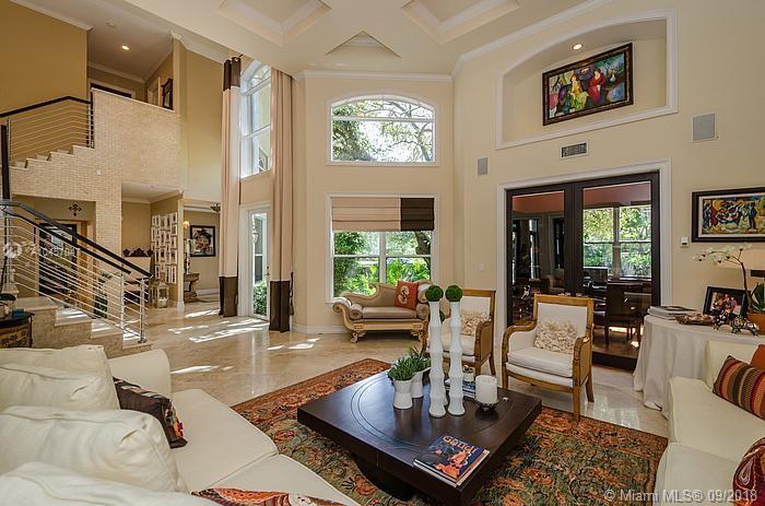 Beautiful 2 story Euro-Traditional style estate located in quiet, gated Pinecrest enclave of 5 homes! Expansive open floor plan with volume ceilings and French doors throughout. All luxurious appointments and amenities. Gorgeous living and formal dining rooms. Amazing recreation/family room with wine cellar, full bar. Home theater, office, gym. Surround system. Brand new 2017 modern kitchen. Separate maids room. Lavish master suite. Marble and wood floors. Stunning and lush grounds. Inviting open pool. Summer kitchen. A must see!!