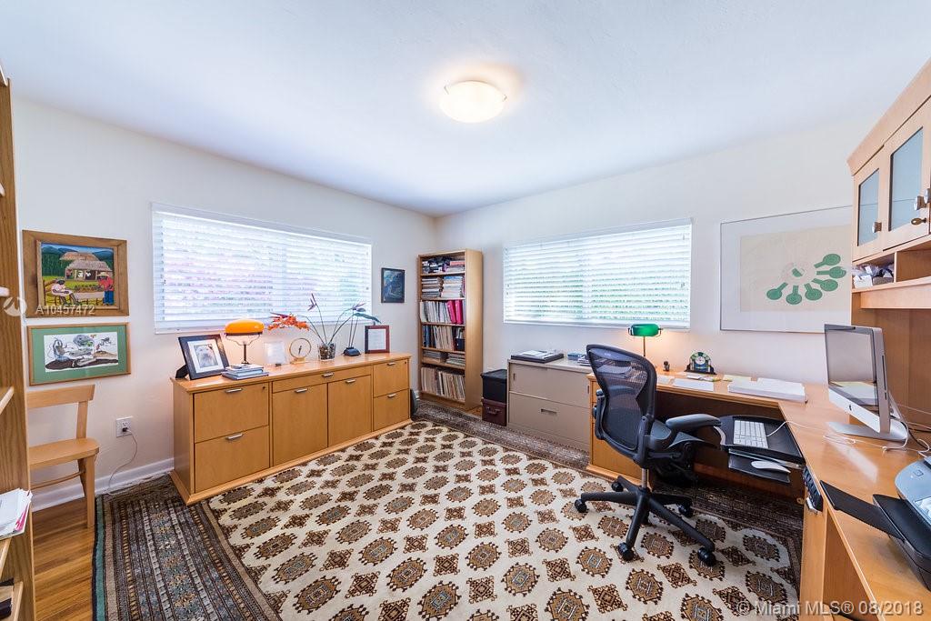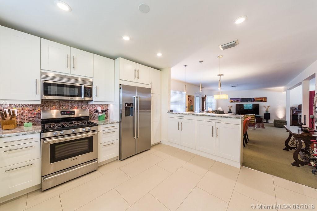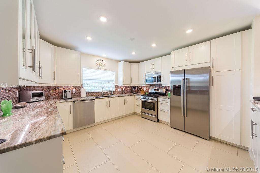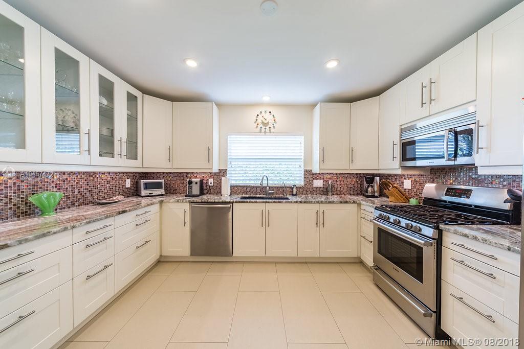 This beautiful 3/2 classic home with 2 car garage located in Miami Shores east of Biscayne Blvd. has been substantially updated and impeccably maintained. Features include open floor plan, new kitchen with wood cabinetry with lighting inside the cabinets and drawers, granite counter tops and stainless steel appliances complete with gas range. Both bathrooms have been completely renovated. Original oak hardwood floors in living area & bedrooms. Impact windows, doors and garage door. Newer Trane HVAC system, whole-house natural gas powered generator w/service warranty, new water heater, front load washer & dryer. Exterior features include screened porch, in-ground gas heated hot tub & lush, professionally landscaped fenced yard.