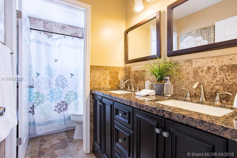 Hurry to this gorgeous 5 Bedroom home. Property features an open floor plan, natural lighting throughout, 2 master suites (one on each floor). Maple kitchen cabinets with granite counter topS and newer stainless steel appliances. Fresh interior paint, all baths renovated with marble and granite. Laminate wood floors on second level. Private patio lushly landscaped for privacy with hedges. Excellent amenities that include a guarded gate entry, clubhouse, gym, numerous playgrounds, parks, Olympic and kiddie pool/slide. Zoned for Weston's finest A+Schools. Priced to sell, Move in Ready!!