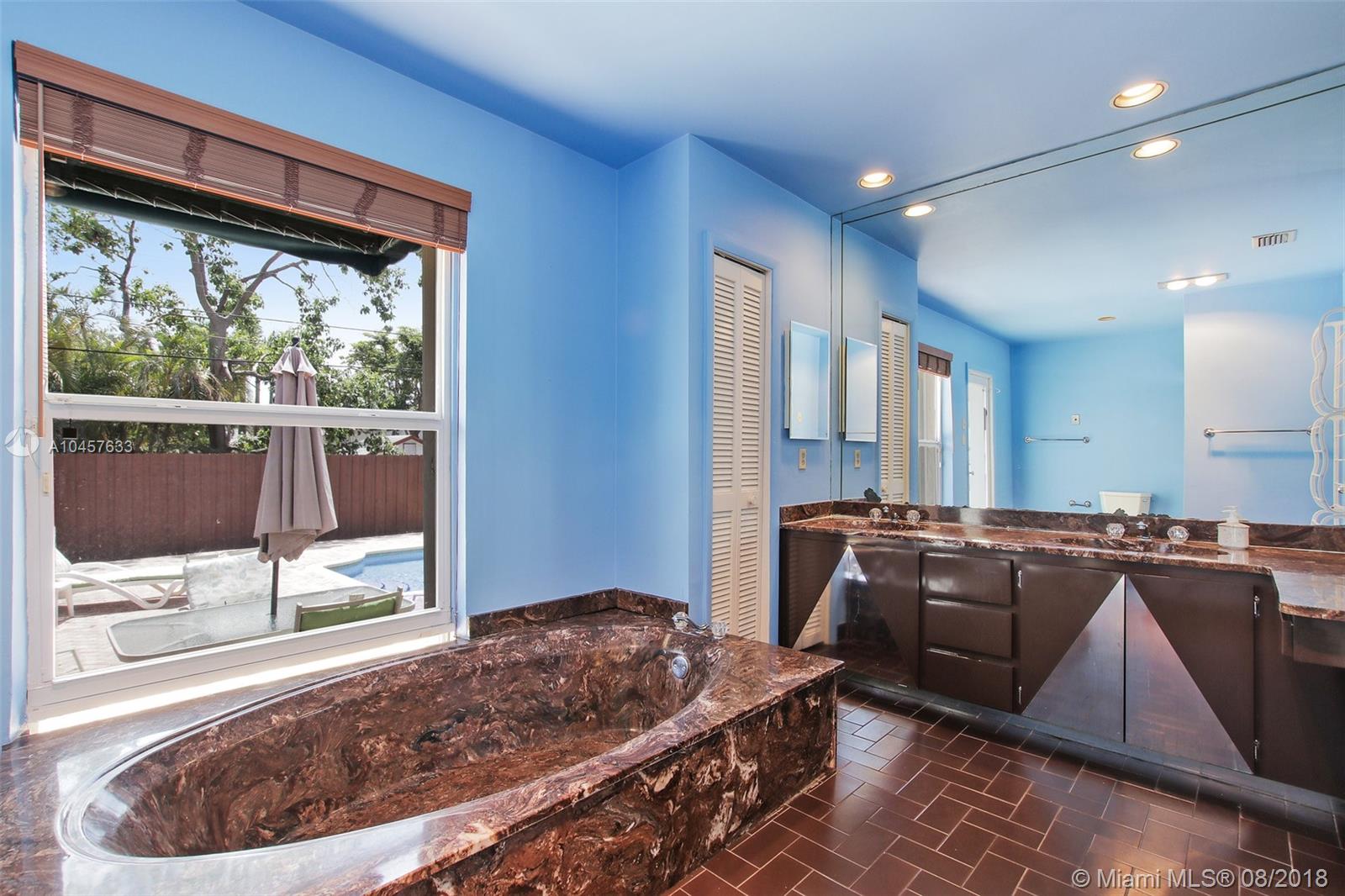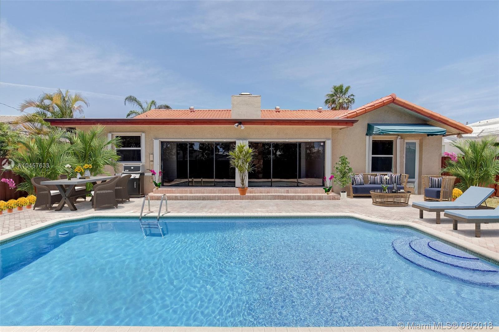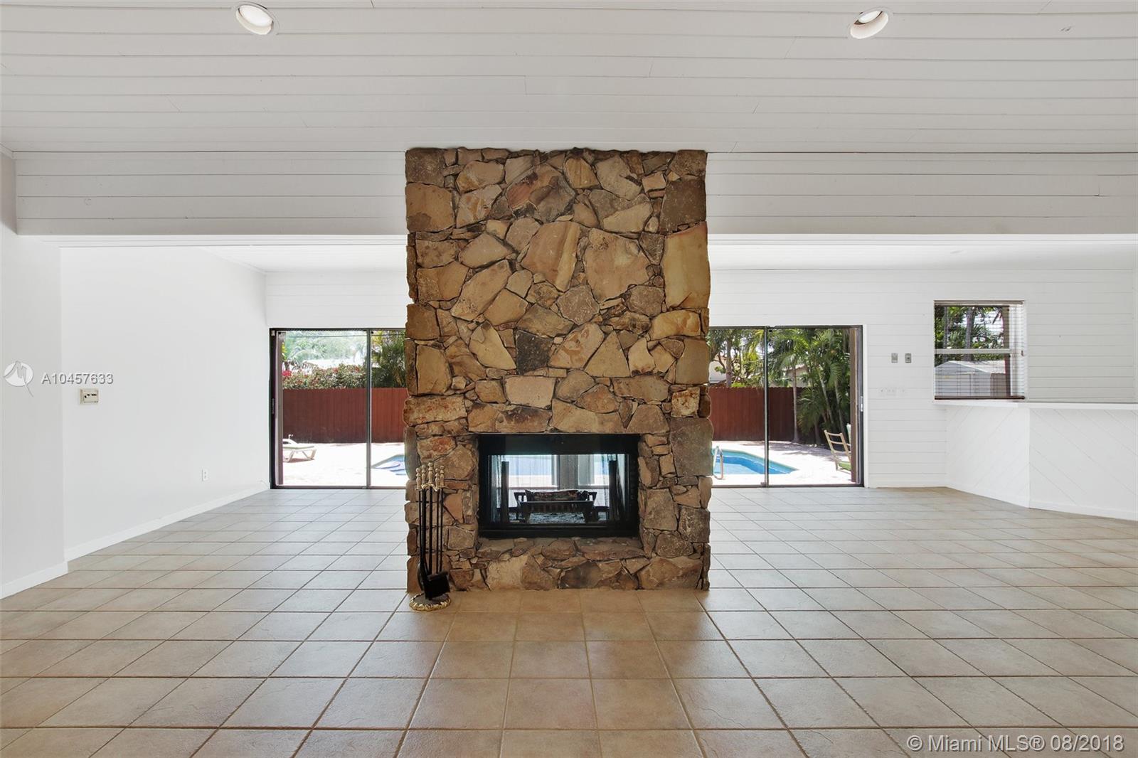 Imagine living among multi-million dollar homes while enjoying your very own ranch style 4/3/1 spacious home of 3249 sf to include a 20 x 40 pool and large patio. Nestled on a quiet street in one of the most sought after police guard gated waterfront community known as San Souci Estates and is known for it's A+ public school system as well as being convenient to the prestigious prep school Miami Country Day School located in Miami Shores. The large eat-in kitchen and formal dining room is perfect for family gatherings. The volume ceilings gives you the feeling of spacious living while enjoying your wood burning fire place from both your living and family room. The 4th BR and bath is part of the home with it's own entrance allowing for a nanny, office or in-law guest room.