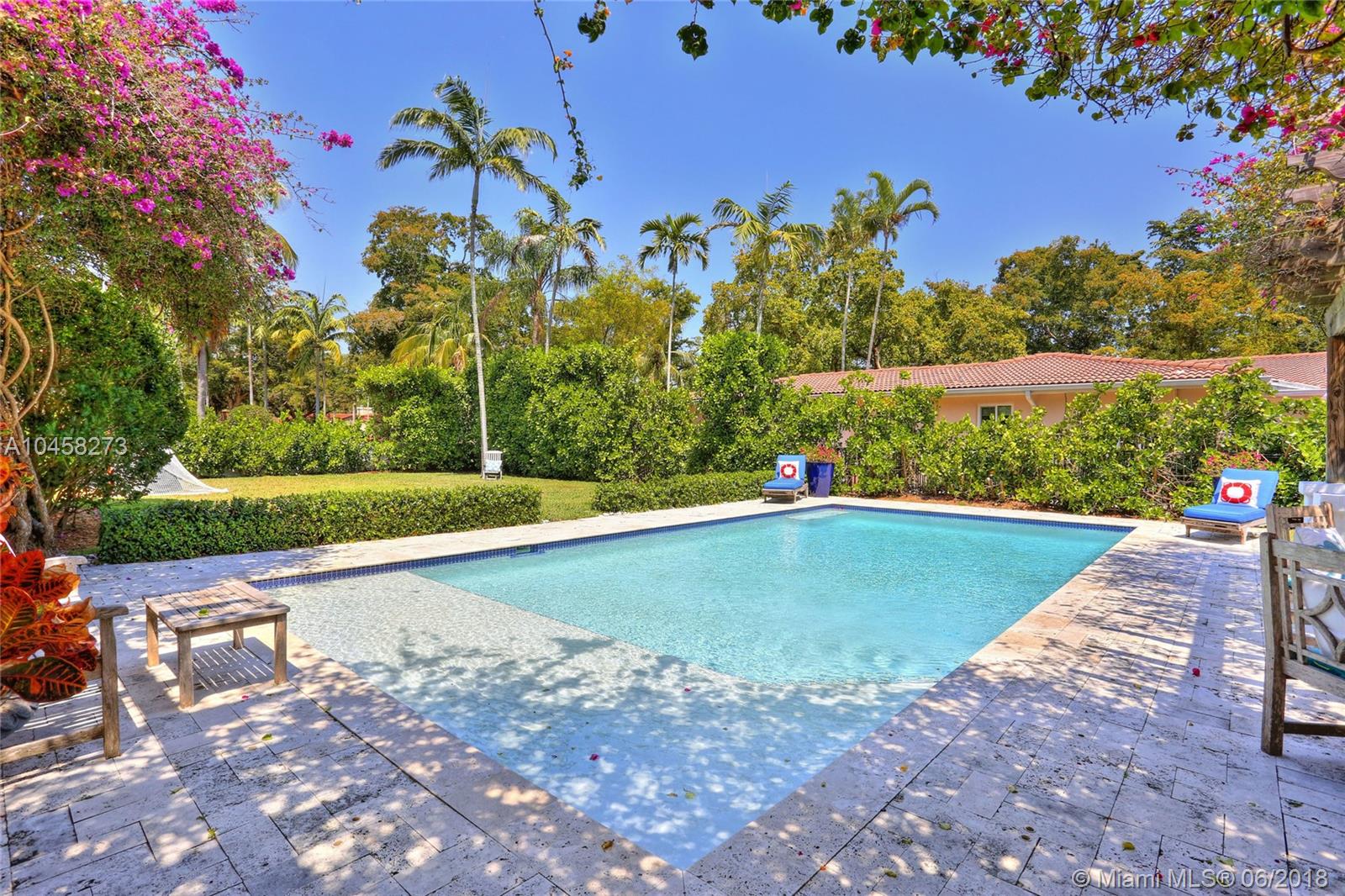 Be amazed by this magical walled, gated, & completely updated Old Spanish on one of the best streets in the Golden Triangle. 18,548sf lot has new pool w/ lounging area, lovely trellis, amazing treehouse, & Biltmore views. Enter to a large, light-filled foyer that opens to the formal living room w/ fireplace & wood floors & then the formal dining rm beyond. Updated Trimline kitchen w/ German Bio Glass counters, high end appliances & beautiful breakfast rm. The master BR addition has a stunning new BA featuring hand-made Walker Zanger tile, soaking tub, & shower. In addition to the 4 BR & 3 BA in the main house, there is also a 1 BR/1 BA guest house. Wonderful spaces, high ceilings, impact windows through most, wood beamed ceilings & built-ins in the fam rm, & very private garden.