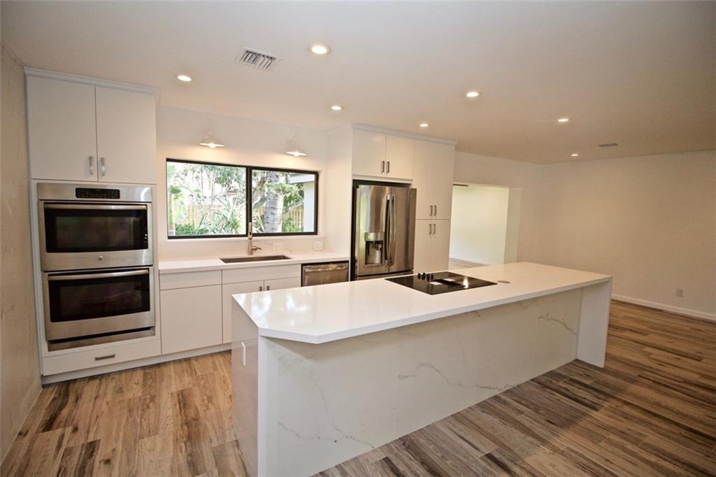 All new with high-end finishes. Large open kitchen with 11' cooking island and double ovens. Expansive bright and open spaces for living and entertaining in style. Add'l family room with wall of glass provides access to large, fenced yard with plenty of room for your dream pool. New wood tile throughout. New impact windows. New paver driveway. Small Placido Place neighborhood is a hidden gem. Minutes to all the trendy hotspots of Flagler Village, downtown, Wilton Dr, and the beach. A must-see.