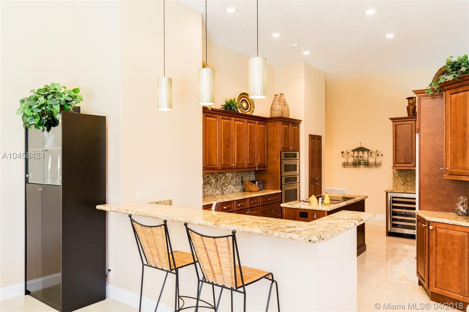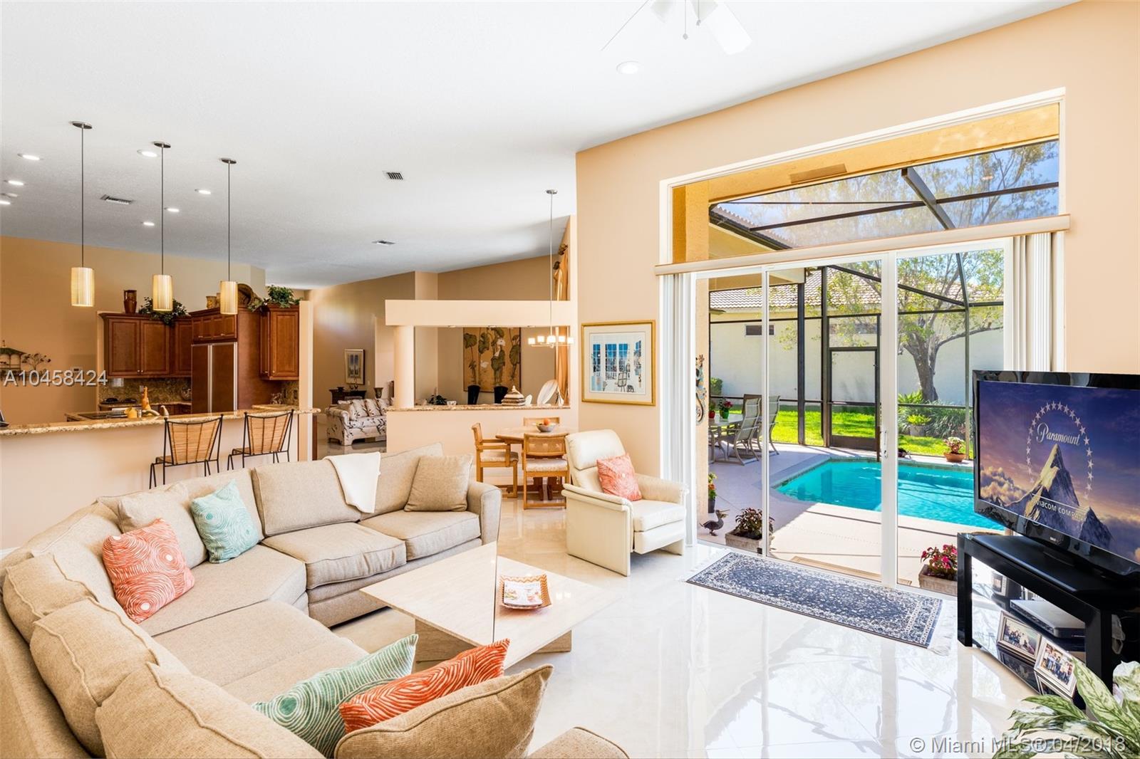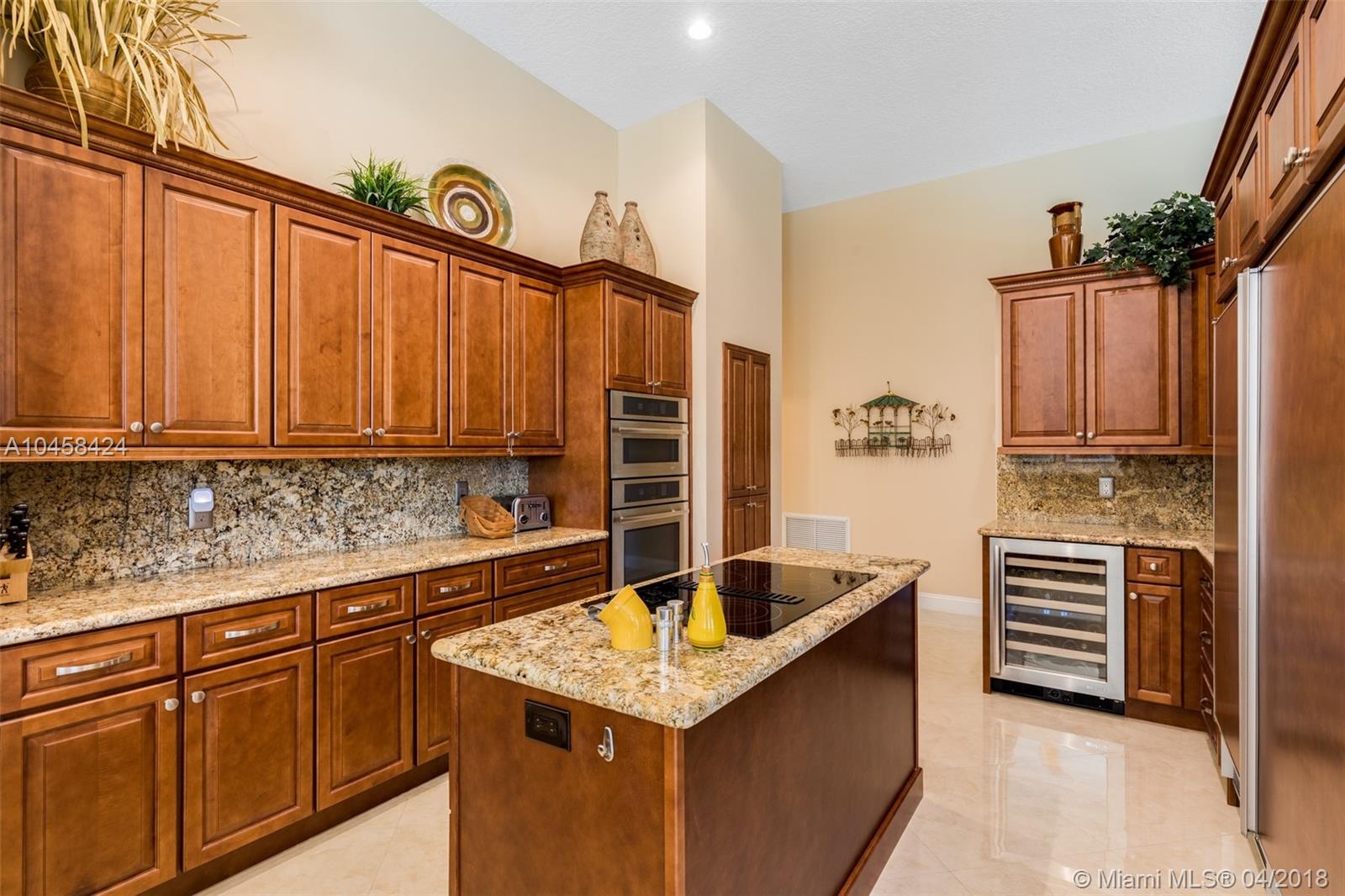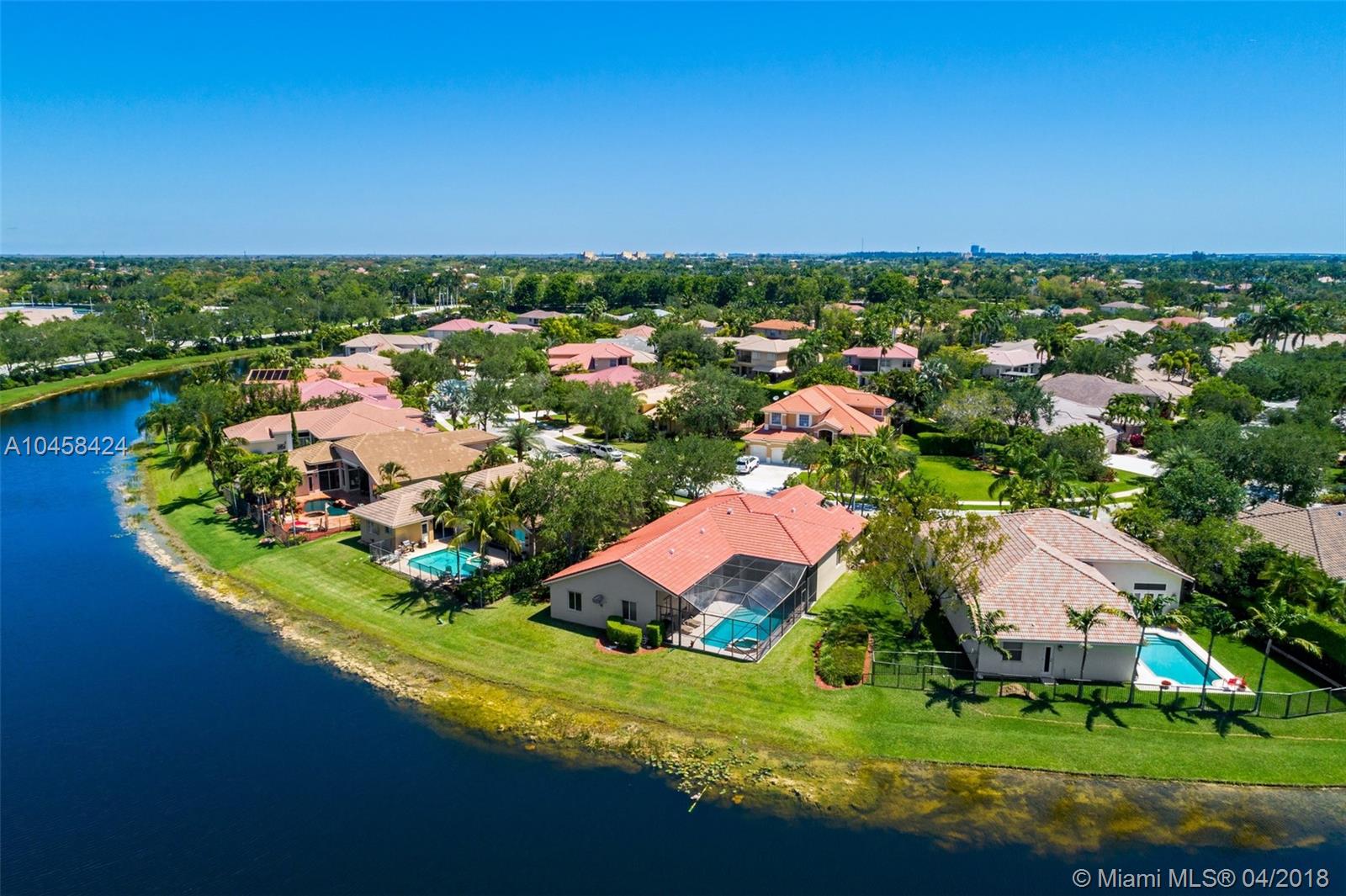 Beautiful Updated 5 Bedroom, 4 Full Baths, plus Office lakefront home in desirable Weston's Jasmine Island. NEW Barrel Tile Roof (2017), Gorgeous 24" rectified Porcelain Floors. Updated kitchen w/cooking island, SS Jenn-Air Stove, Wine Cooler, Warming Tray, Convection/speed oven Microwave, plenty of new cabinets w/ granite counter top. Updated Master bath features rainwater shower w/ new dual vanities, frame-less shower, & soaking tub. In addition to 5 Bedrooms, this well maintained home has an elegant formal dining room, an office, a laundry room w/ utility sink, & a two car garage. Dual A/C. From screened pool deck enjoy lake views, & covered dining area. Exterior painted 2017. Come see the charms of this one-story home in a friendly, guarded community in the heart of Weston.