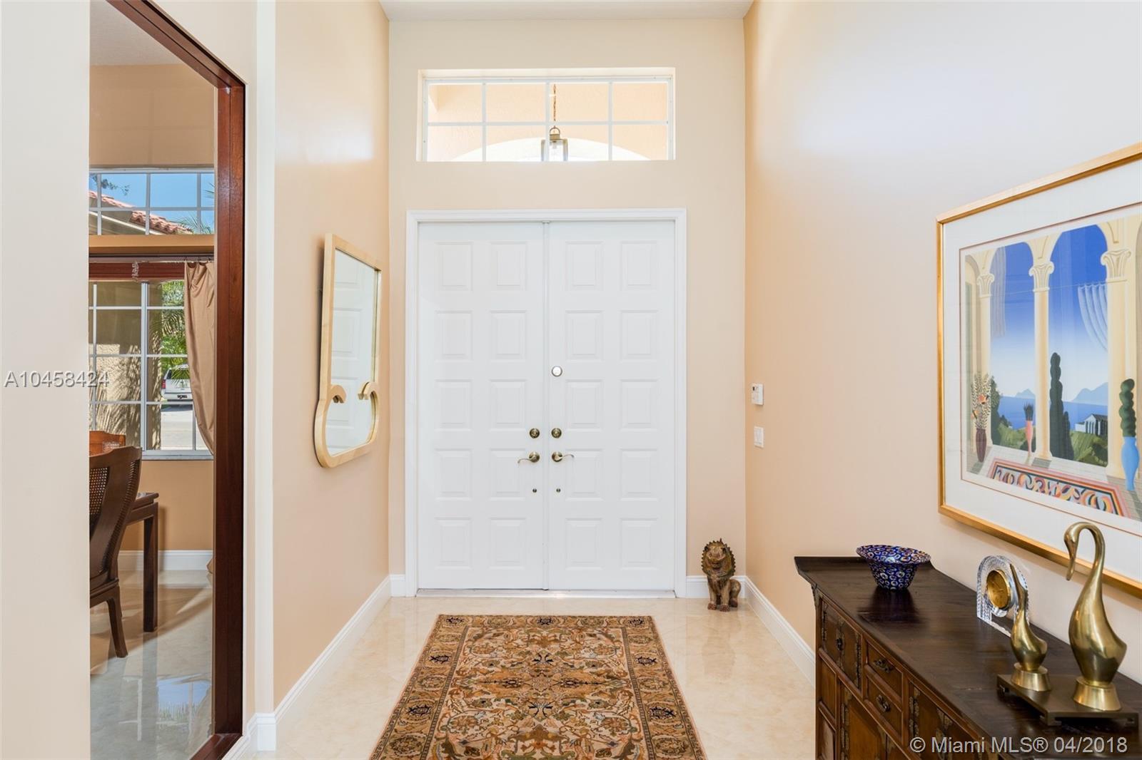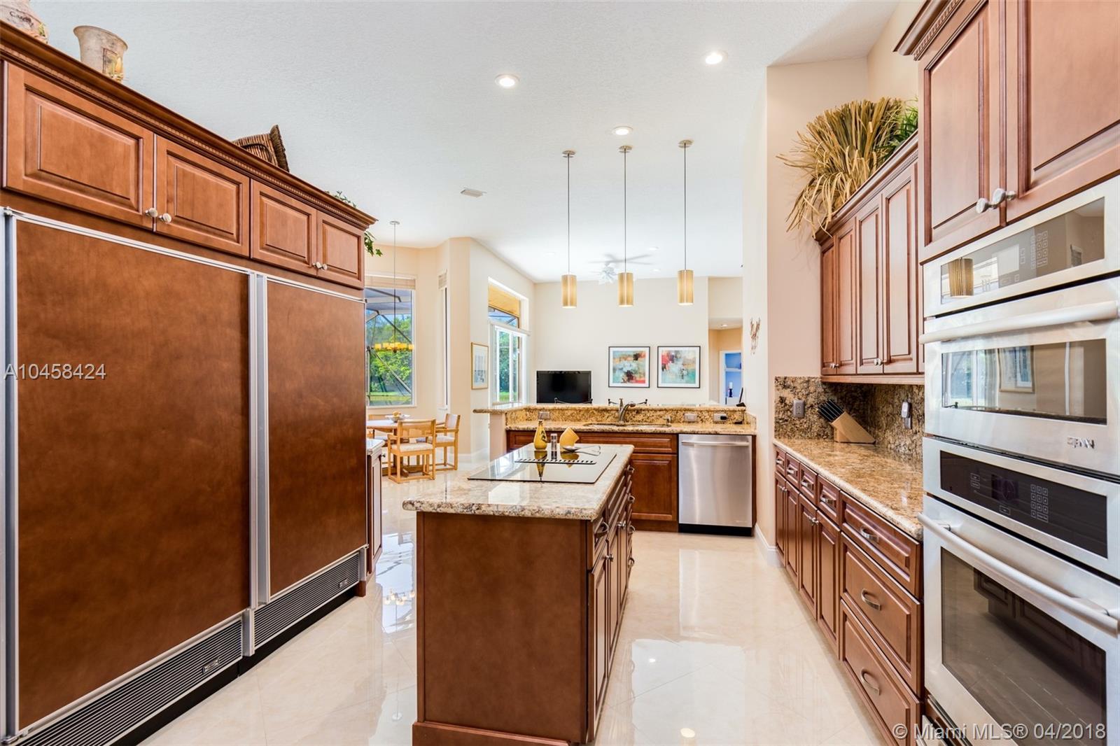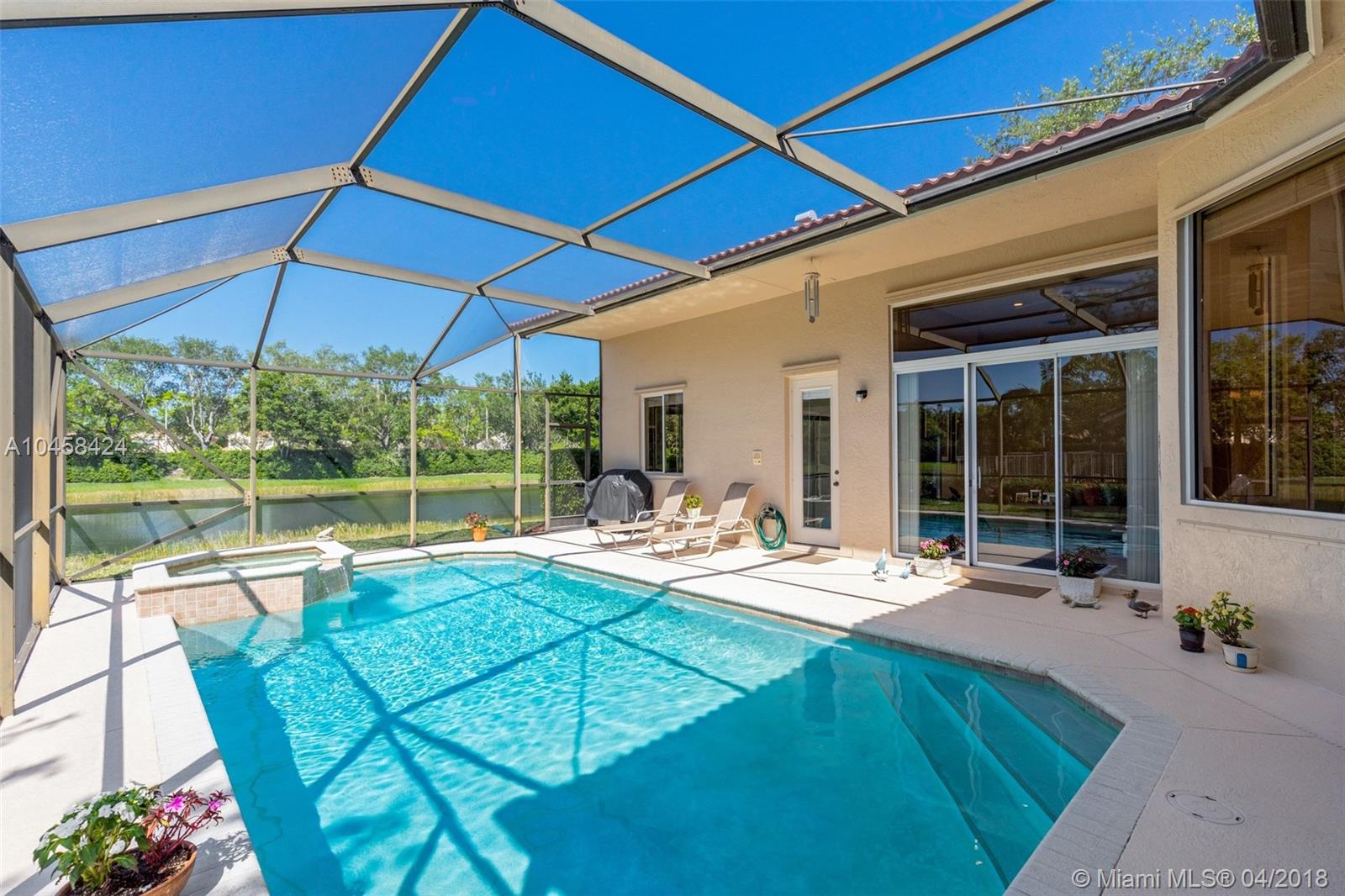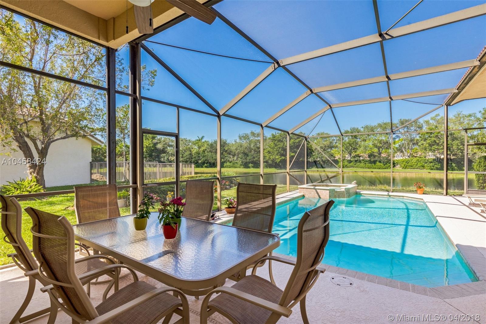 Beautiful Updated 5 Bedroom, 4 Full Baths, plus Office lakefront home in desirable Weston's Jasmine Island. NEW Barrel Tile Roof (2017), Gorgeous 24" rectified Porcelain Floors. Updated kitchen w/cooking island, SS Jenn-Air Stove, Wine Cooler, Warming Tray, Convection/speed oven Microwave, plenty of new cabinets w/ granite counter top. Updated Master bath features rainwater shower w/ new dual vanities, frame-less shower, & soaking tub. In addition to 5 Bedrooms, this well maintained home has an elegant formal dining room, an office, a laundry room w/ utility sink, & a two car garage. Dual A/C. From screened pool deck enjoy lake views, & covered dining area. Exterior painted 2017. Come see the charms of this one-story home in a friendly, guarded community in the heart of Weston.