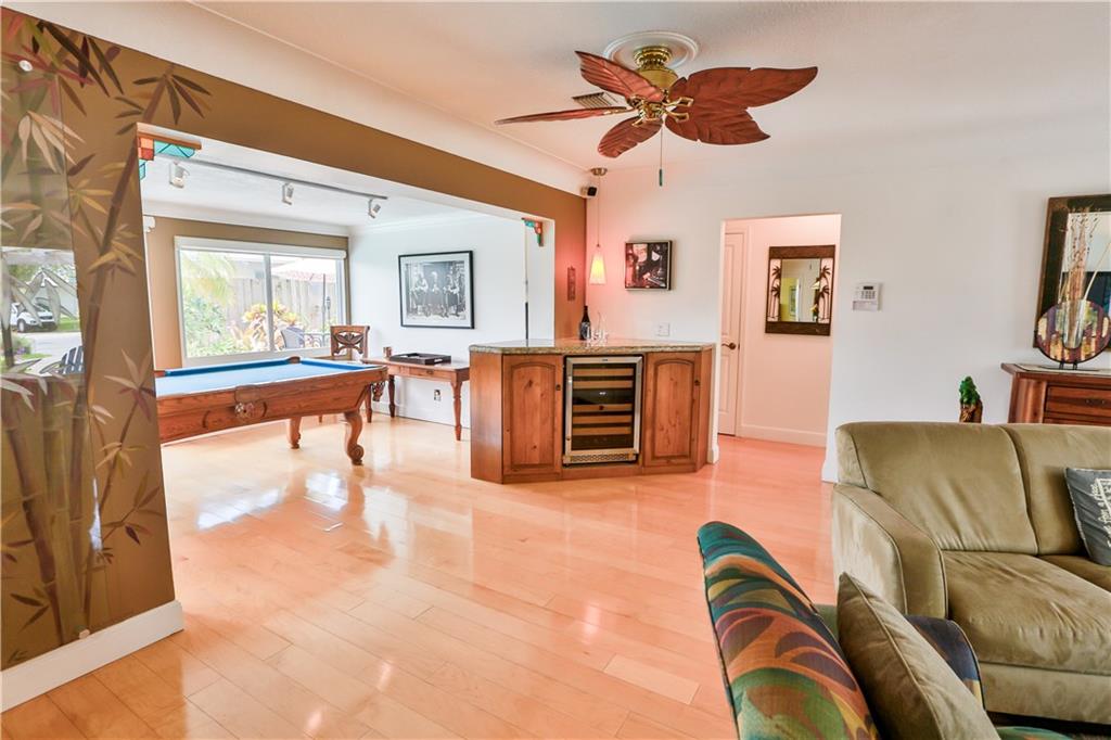 Enchanted in Coral Ridge Isles! Curb appeal & tropical landscaping. Trellised seating area w/rock garden & water feature. Open kitchen & living area w/wood flooring. Custom bar w/wine fridge & 23'x10' family room. Ample master suite w/walk in closet & steam shower. Split bedroom floorplan. Nest thermostat, Ring doorbell & alarm system. Impact doors & windows throughout. Private backyard oasis w/sparkling pool & spa. Circular drive & 1.5 car garage. Close to beach, I95, best schools & shops. Call today!