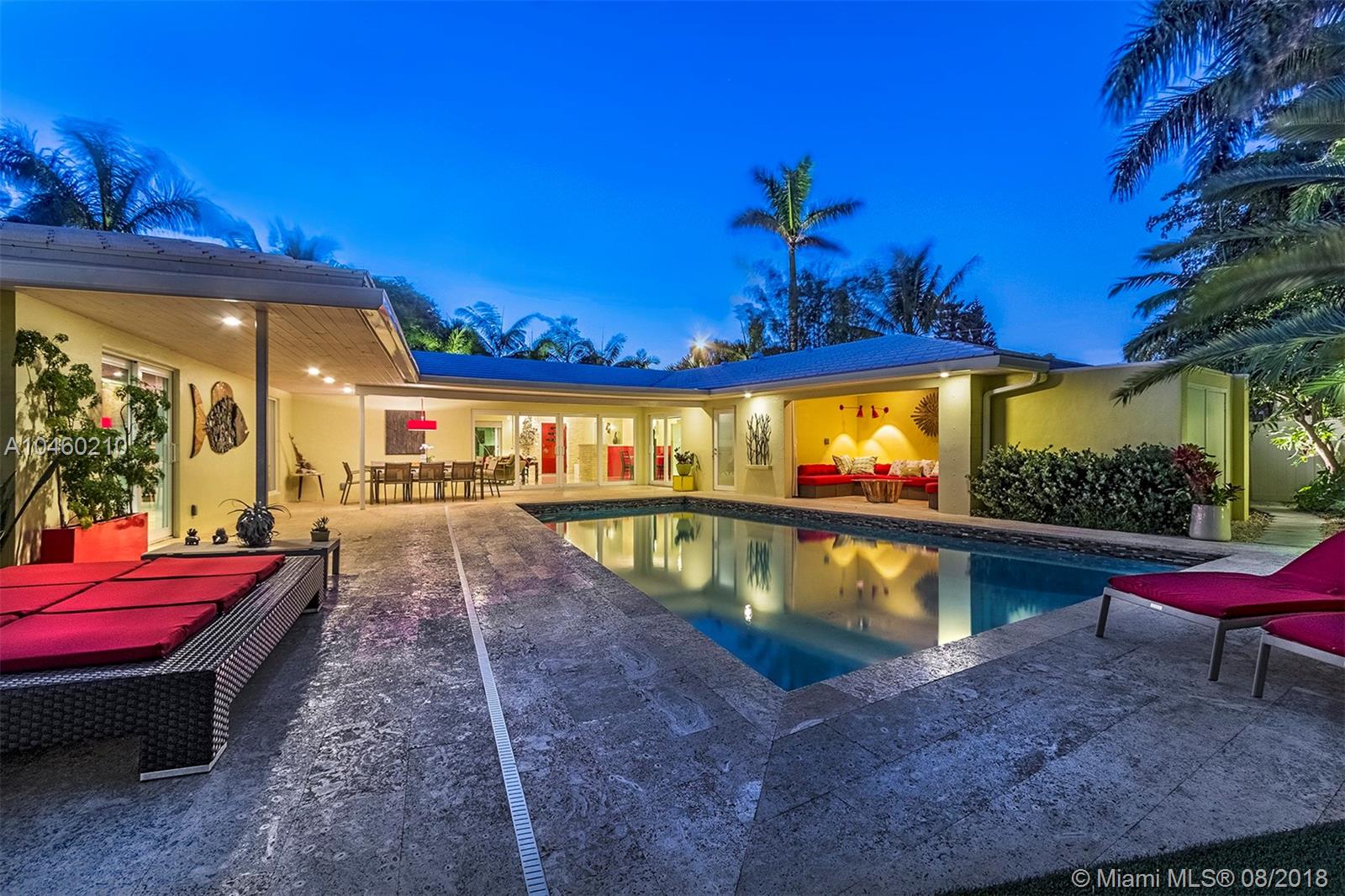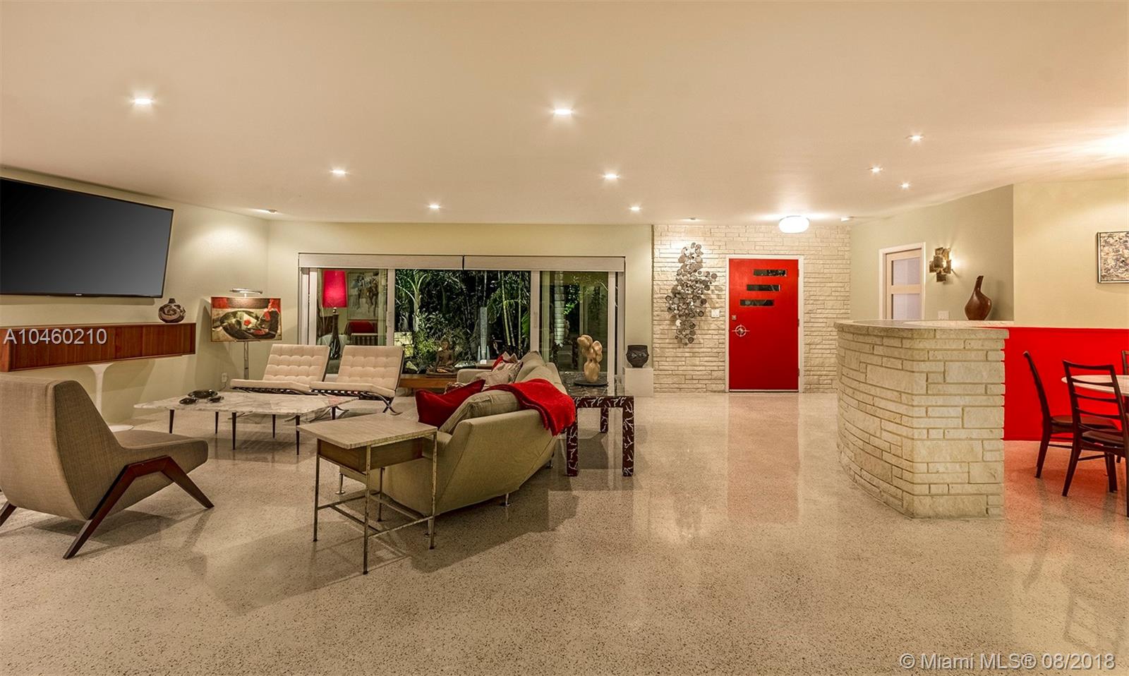 This 4000 square foot home boasts a master suite with dressing room, an office or bedroom with en-suite full bath; and a guest suite at the opposite end of the home. Elevated custom kitchen. indoor-outdoor with enormous chef’s kitchen, laundry, & 1200 square foot living room and a poolside cabana with yachting/pool bathroom. In addition to the expertly restored original terrazzo, the residence has been fully upgraded to current hurricane standards with new roof, strapped trusses, impact windows, hurricane fabric, and a whole house natural gas fired generator. Finally, this turn-key property has a new stone dock, & botanical garden quality illuminated landscaping. Foam insulated attic.