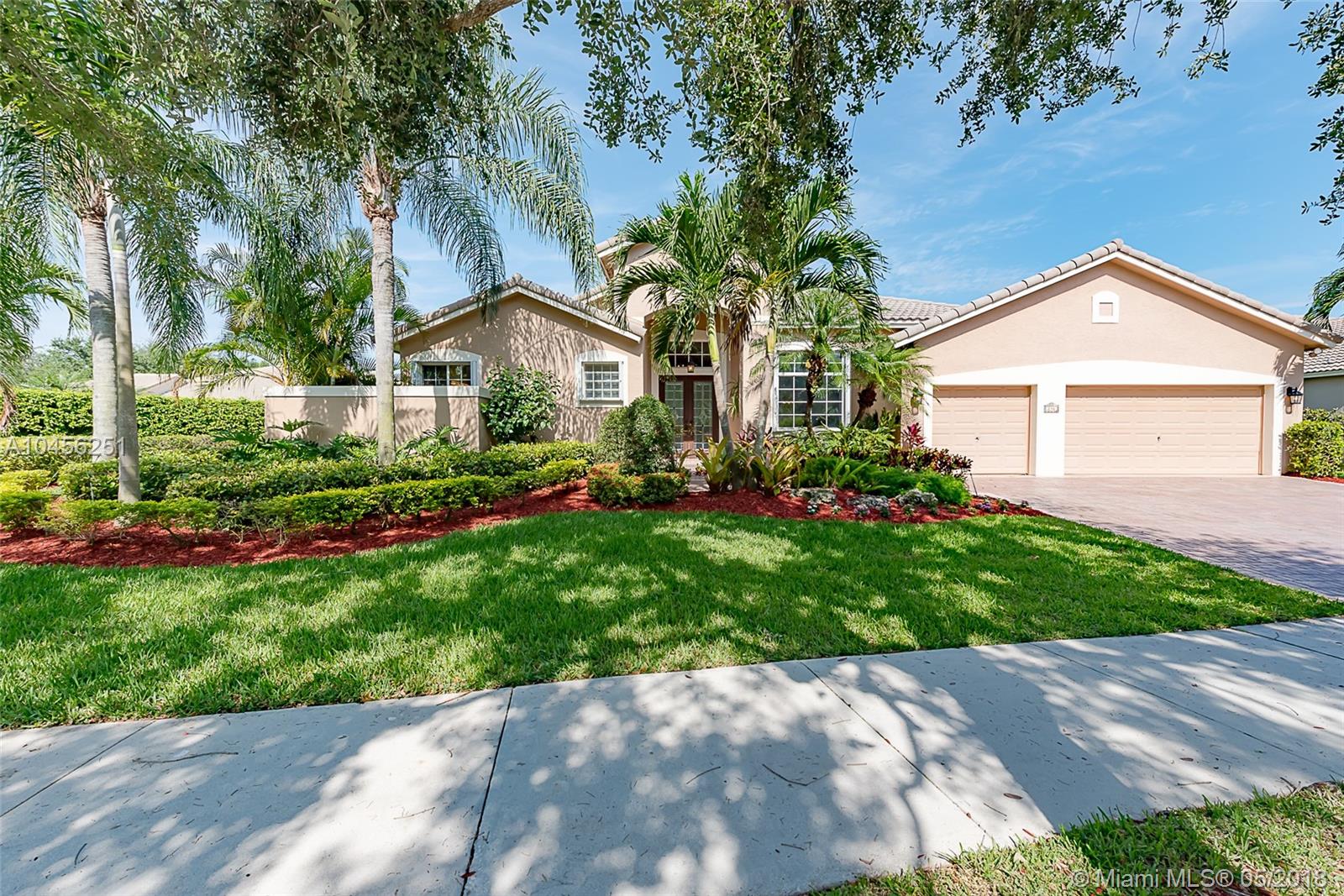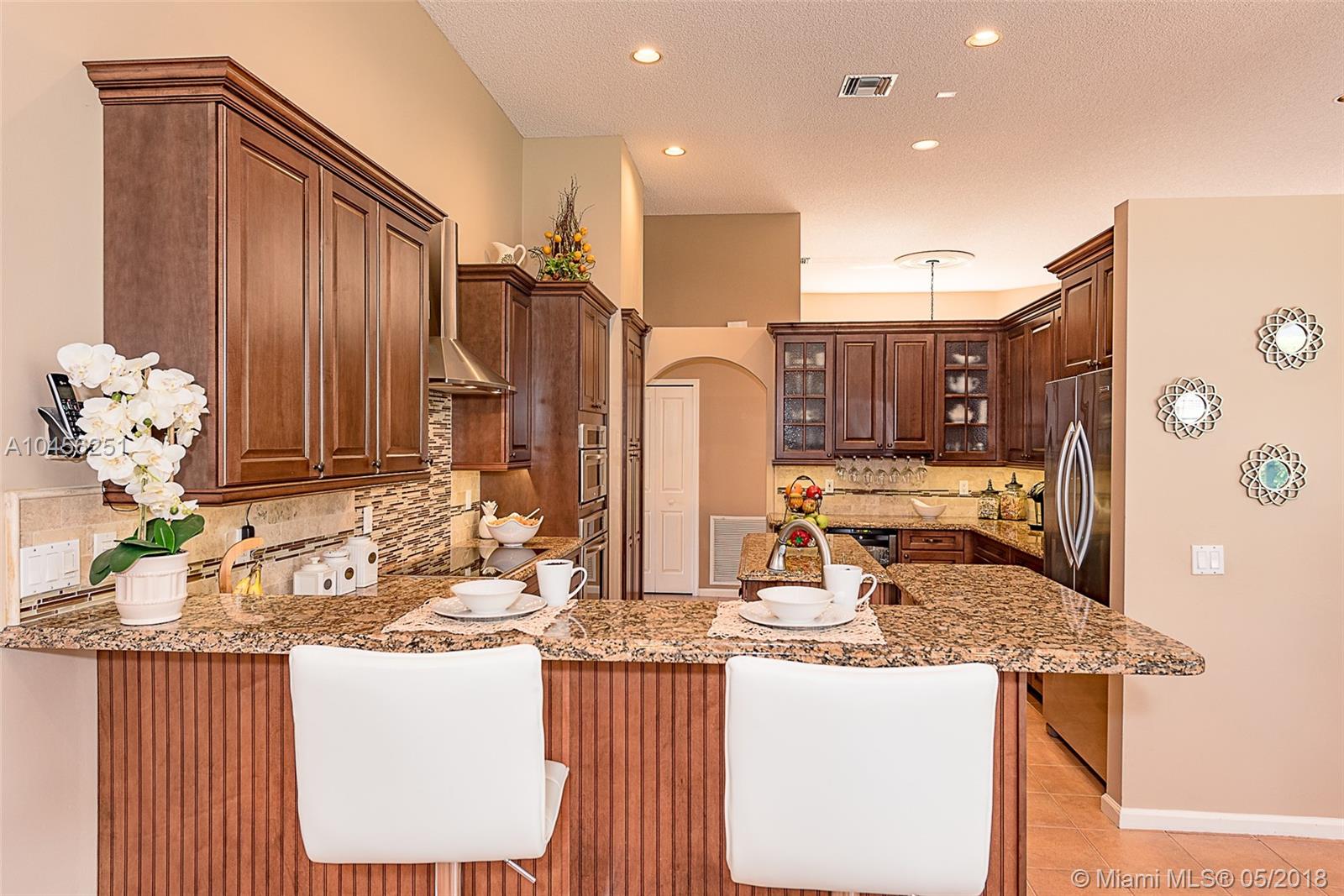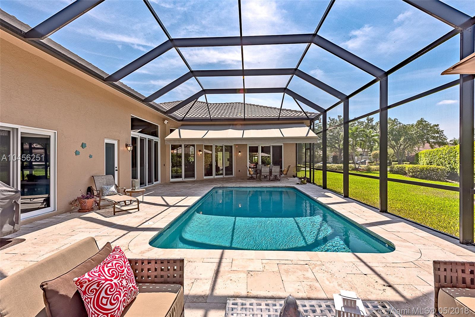 ENTER THRU ELEGANT, ETCHED GLASS (IMPACT) DOUBLE DOORS INTO A PRISTINE HOME WITH AN OPEN FLOOR PLAN. SPACIOUS 6 BED,3 BA, 1 STORY HOME W/3 CAR GAR ON A 17,270 SF LOT* LIGHT & BRIGHT, DECORATED IN ALL THE CHIC & SOPHISTICATED COLORS OF TODAY* NEWER 2 ZONE ENERGY EFFICENT A/C'S & TANKLESS WATER HEATER SAVES $$* HURRICAN IMPACT FRENCH DOORS & CLERESTORY WINDOWS SURROUND THE POOL AND PATIO* EXQUISITE MARBLE PATIO, 15X30 POOL, IMPACT SCREEN ENCLOSURE, MOTORIZED IMPACT RETRACTABLE AWNING AND BABY GUARD FENCE* ELEGANT KITCHEN WITH DESIGNER FEATURES TO DIE FOR! DARK WOOD CABINETS, GRANITE COUNTERS, SS APPLIANCES, CENTER ISLAND, WINE BAR & WINE CHILLER ARE JUST SOME OF THE FEATURES OF THE STUNNING KITCHEN* ALL BATHS ARE UPDATED* NEWER ROOF* LUSHLY LANDSCAPED *THIS STYLISH HOME IS ONE OF A KIND!!!!!