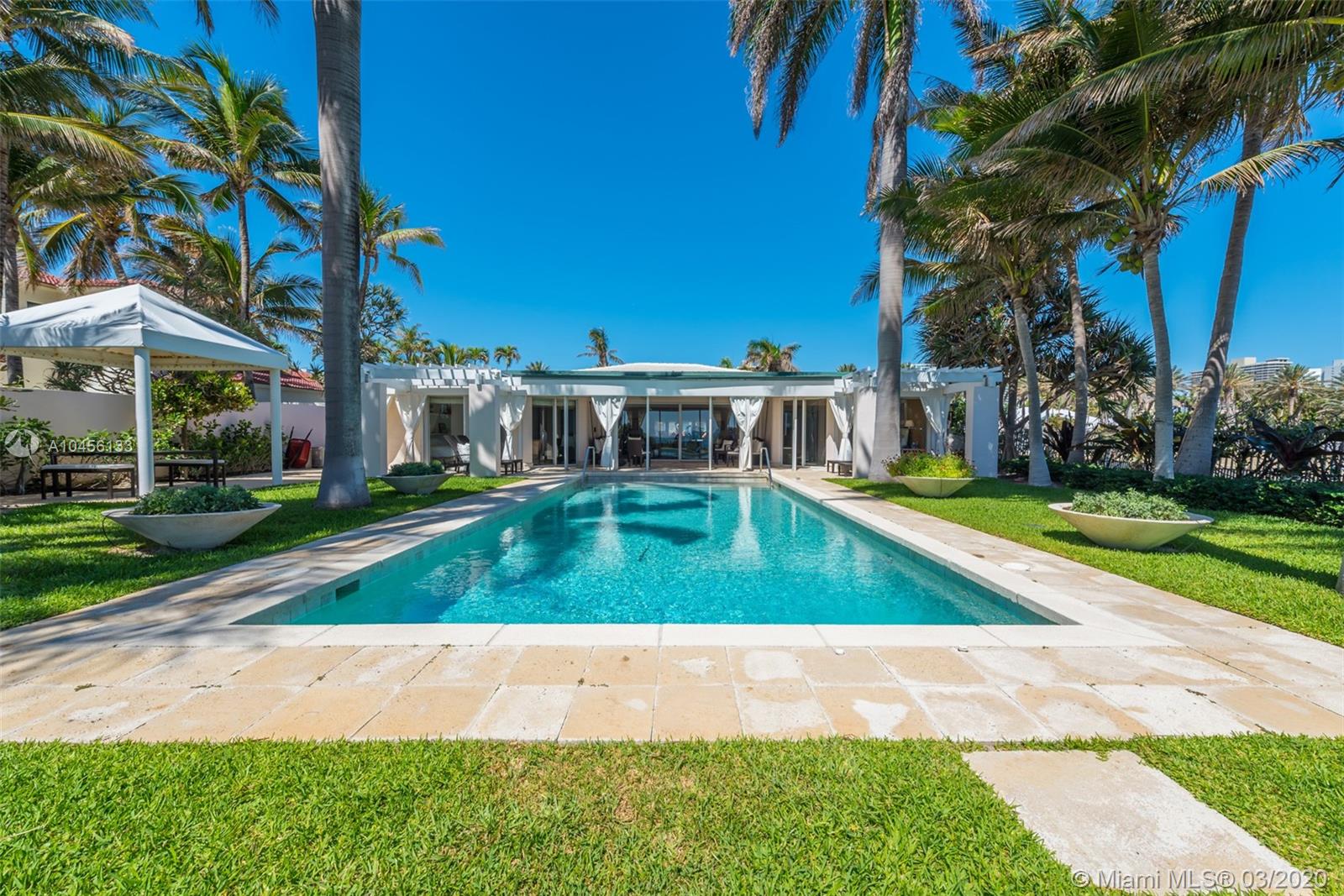 Experience ultimate oceanfront living in this beautiful beachfront home in exclusive Golden Beach offering one-of-a-kind ocean views. Greeted by the sparkling ocean water the home boasts 3 bedrooms, 5 full bathrooms and 1 half bathroom, 5,373 square feet on a 21,300 square foot lot with 75’ on the ocean. This smart home features limestone floors, a 2 car a/c garage, large office, gym, a Bulthaup custom kitchen with top-of-the-line Miele, Wolf and Sub Zero appliances, butler’s pantry, wine cooler, and Impact windows. Wake up to the sound of waves crashing in your expansive master suite with his and hers bathrooms and closets. Entertain guests in your priceless backyard with the Atlantic ocean as your backdrop. Live a life others can only dream of in your oceanfront home.