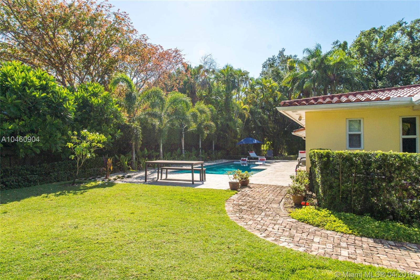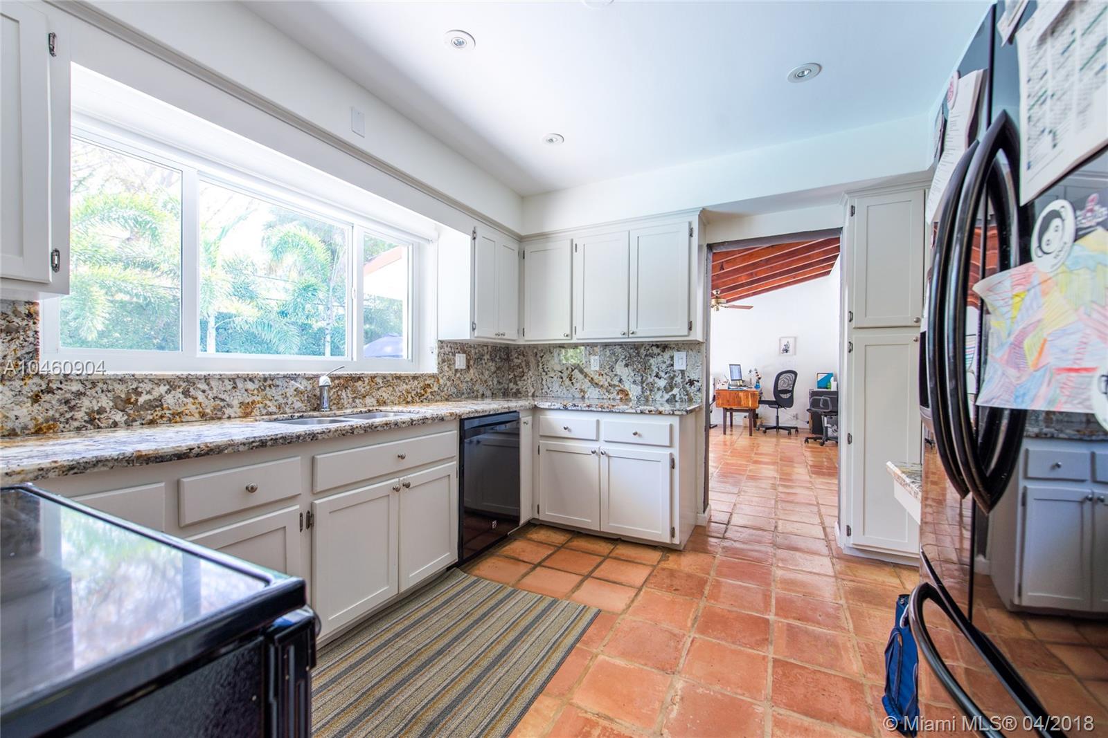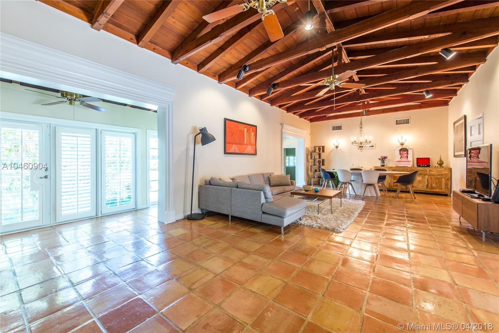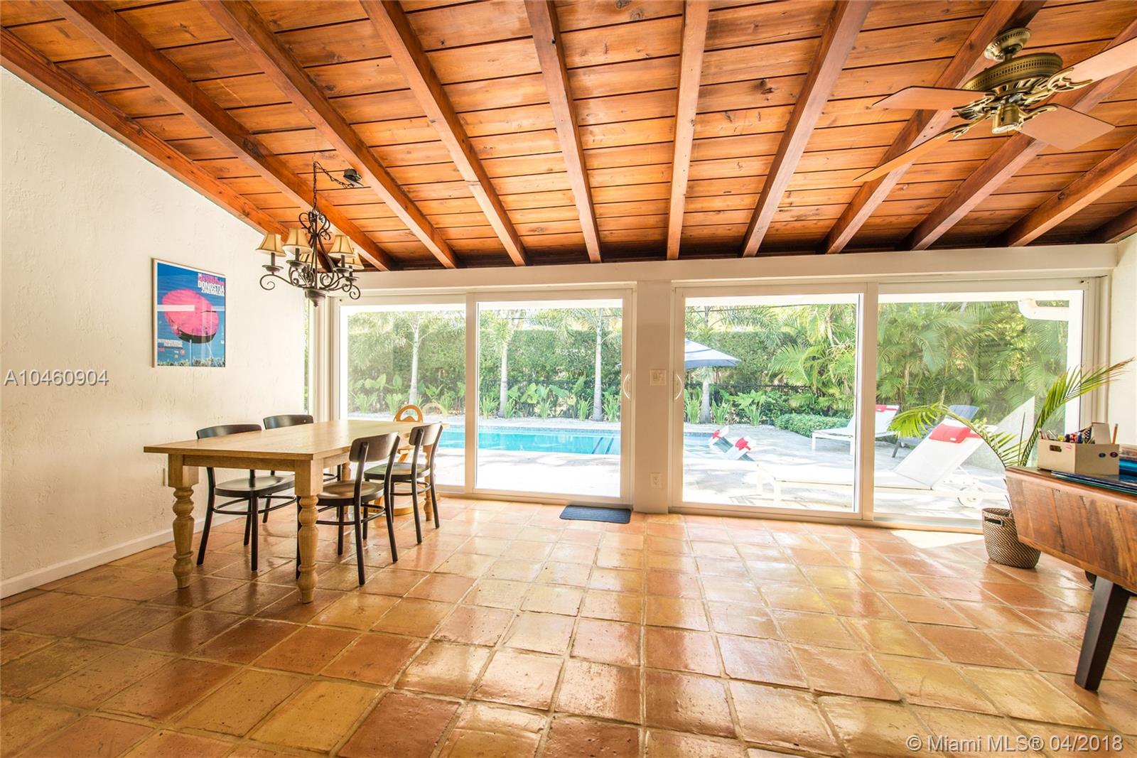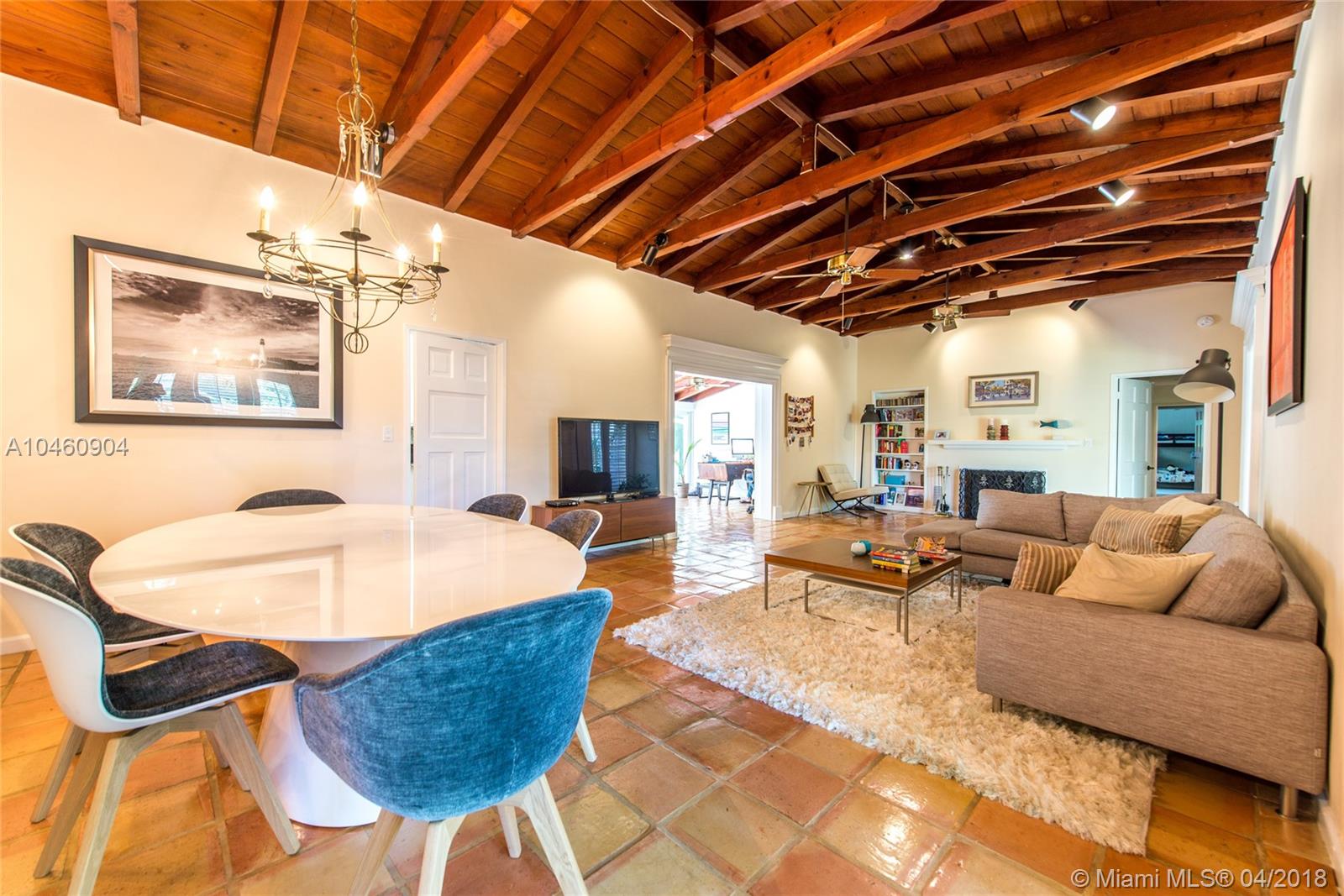 Classic mid-century home, on a quiet tree-lined street in coveted South Gables neighborhood. Updated & light-filled living spaces that feature vaulted, wood beamed ceilings, fireplace, terra-cotta flooring and impact glass throughout. 3BR/3BA plus den. Walls of glass overlook the lushly landscaped tropical garden ( 14,093 SF) which surrounds a spectacular new pool (heated) and limestone terrace. Custom kitchen with white wood cabinetry, granite countertops/backsplash and range with double-oven. Large master suite features marble bath with Jacuzzi tub & frameless glass-enclosed shower. Prime location in Sunset Elementary school district, is close to South Miami town center’s shopping, dining & entertainment and minutes to downtown Coral Gables, UM & Metrorail.