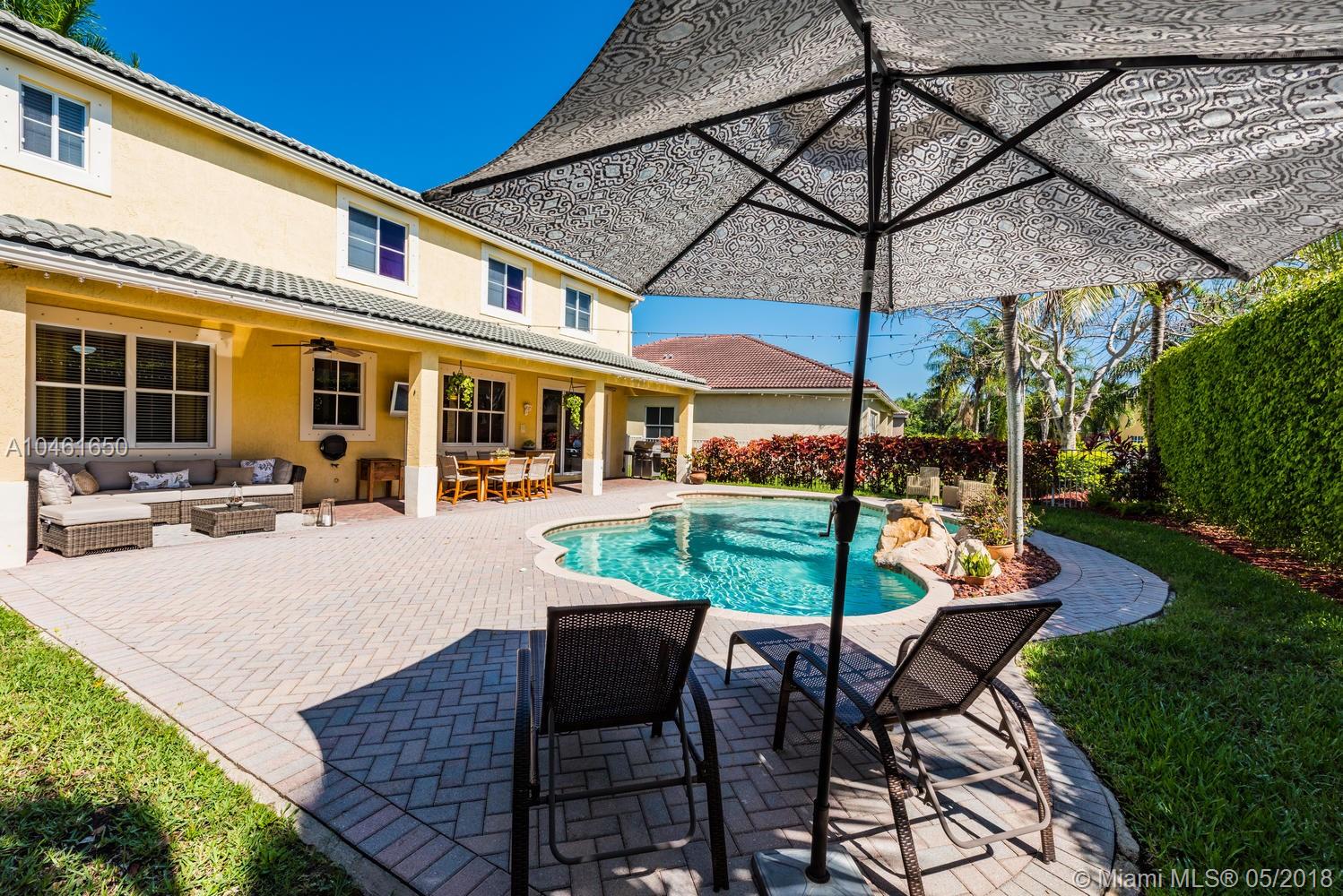 IMMACULATE 4 BEDROOM, 2.5 BATHROOMS, PLUS DEN/OFFICE. NEUTRAL TILE THROUGHOUT. UPGRADED KITCHEN WITH WOOD CABINETS, CORIAN COUNTER TOPS AND STAINLESS STEEL APPLIANCES. BRIGHT, OPEN FAMILY ROOM AND BREAKFAST AREA OVERLOOKING THE SPACIOUS BACKYARD, RELAXING CUSTOM POOL AND EXTENDED COVERED PATIO. MASTER BEDROOM FEATURES TWO WALK-IN CLOSETS. INTERIOR HAS BEEN FRESHLY PAINTED. LOCATED IN SOUGHT AFTER GATED COMMUNITY WITH OUTSTANDING AMENITIES. CALL FOR AN APPOINTMENT TODAY!!