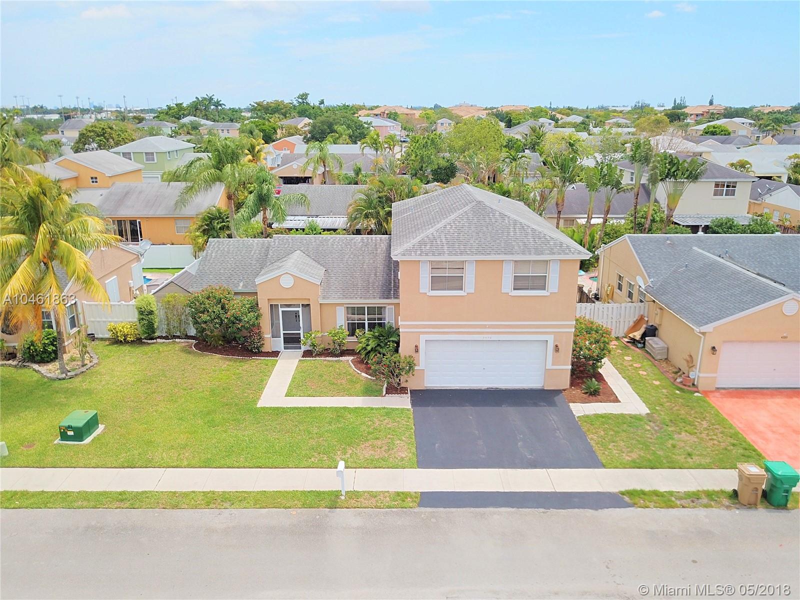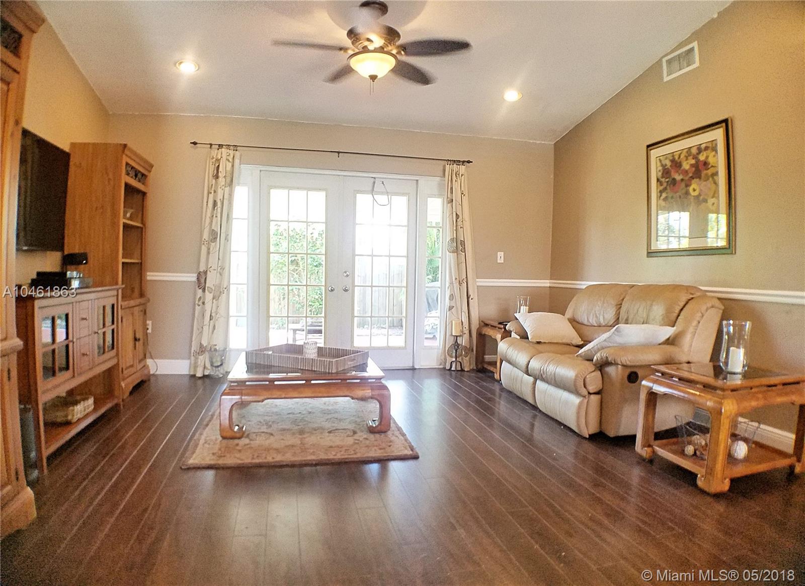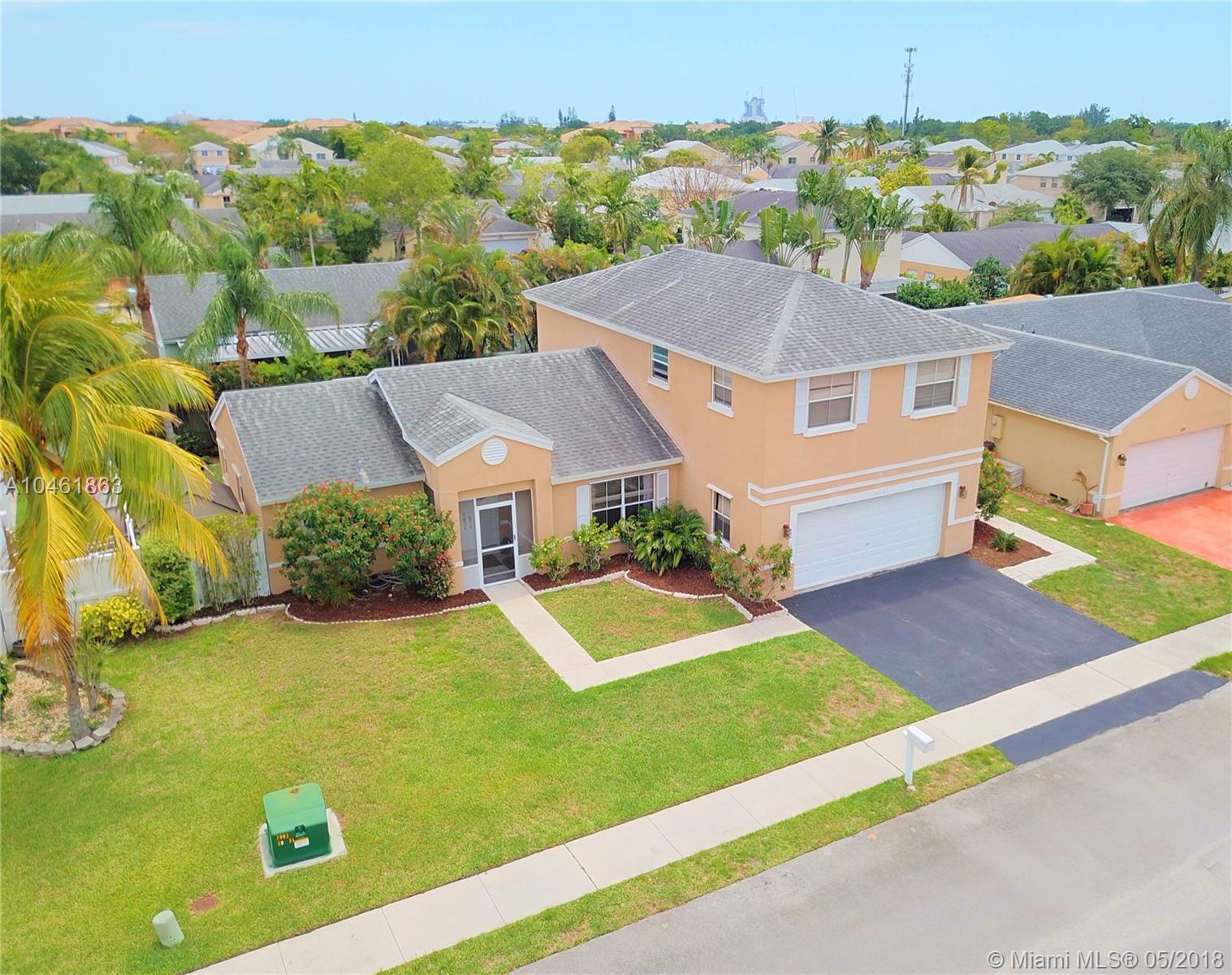 Stunning 4/3 Single Family home of your dreams in desirable Apple Creek Community in Davie! 2 Story home, over 2,600 sft. Separate quarters on the first floor, living room with french door access to the backyard patio, dining room overlooking the front yard, breathtaking newer oversized kitchen with granite countertops, ss appliances with 2nd french door access to the backyard. Large master bedroom with sitting area, huge walk-in closet, roman tub and shower in master bathroom. Tile floors in main areas and wood floors in bedrooms. Spacious Laundry room with enough space for folding area. 2 car garage perfect for both your cars!! Central location minutes from 595 and Turnpike. Huge screened in patio in the back.