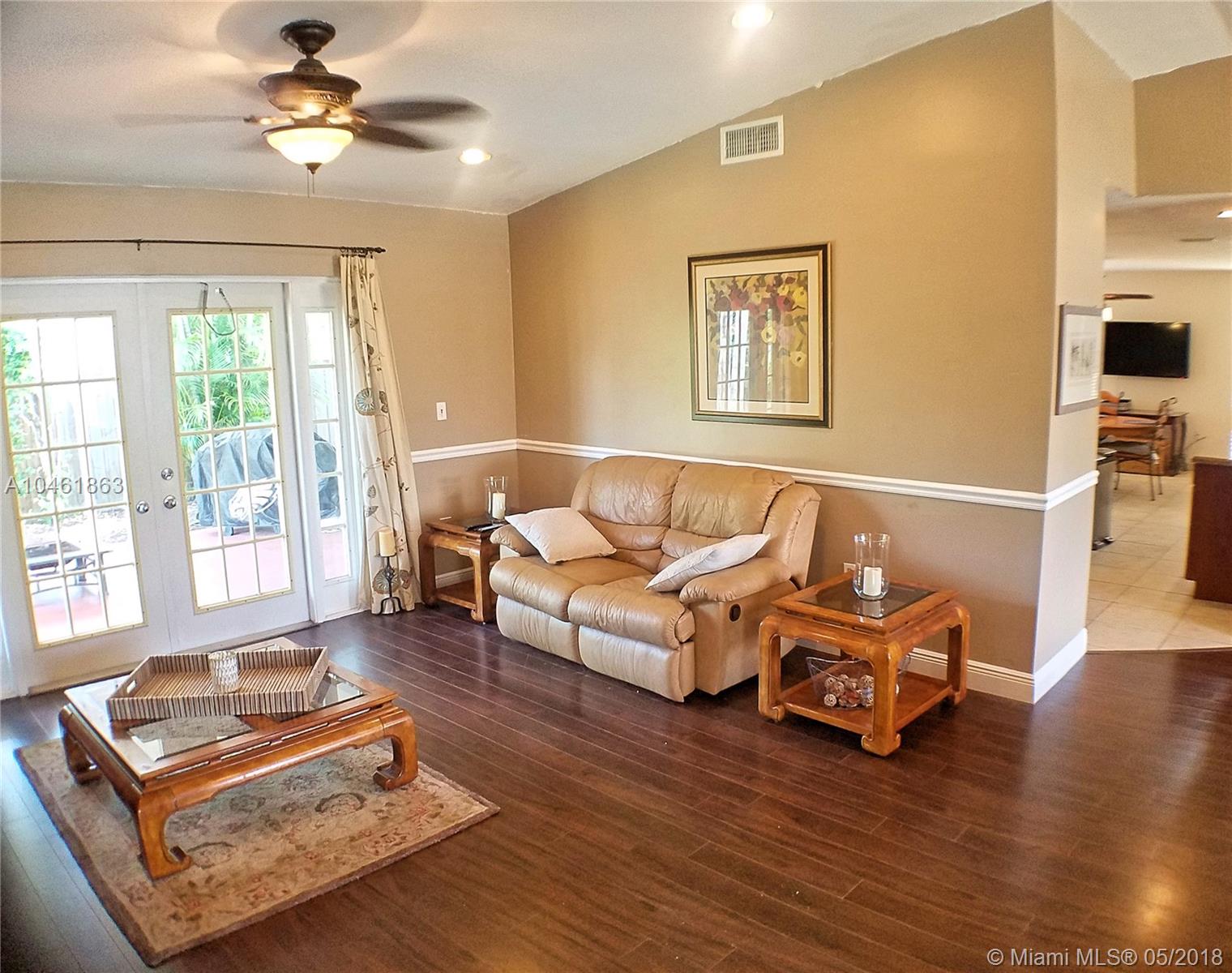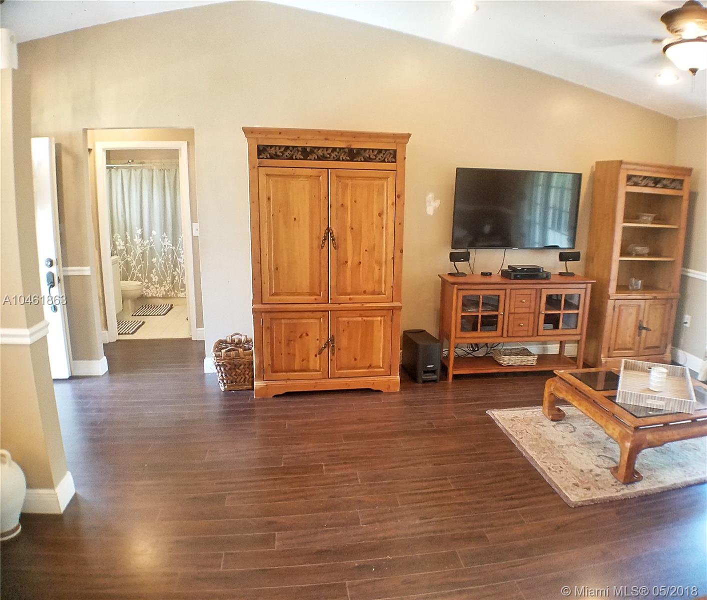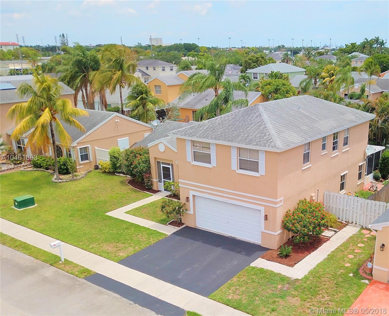 Stunning 4/3 Single Family home of your dreams in desirable Apple Creek Community in Davie! 2 Story home, over 2,600 sft. Separate quarters on the first floor, living room with french door access to the backyard patio, dining room overlooking the front yard, breathtaking newer oversized kitchen with granite countertops, ss appliances with 2nd french door access to the backyard. Large master bedroom with sitting area, huge walk-in closet, roman tub and shower in master bathroom. Tile floors in main areas and wood floors in bedrooms. Spacious Laundry room with enough space for folding area. 2 car garage perfect for both your cars!! Central location minutes from 595 and Turnpike. Huge screened in patio in the back.
