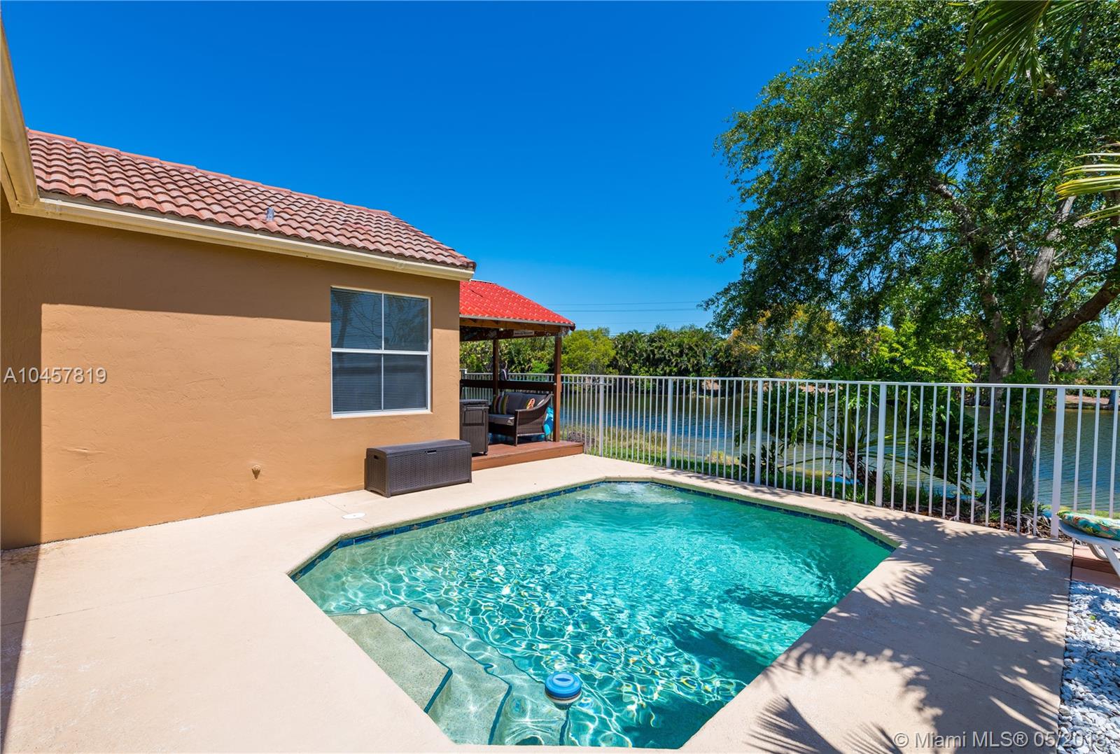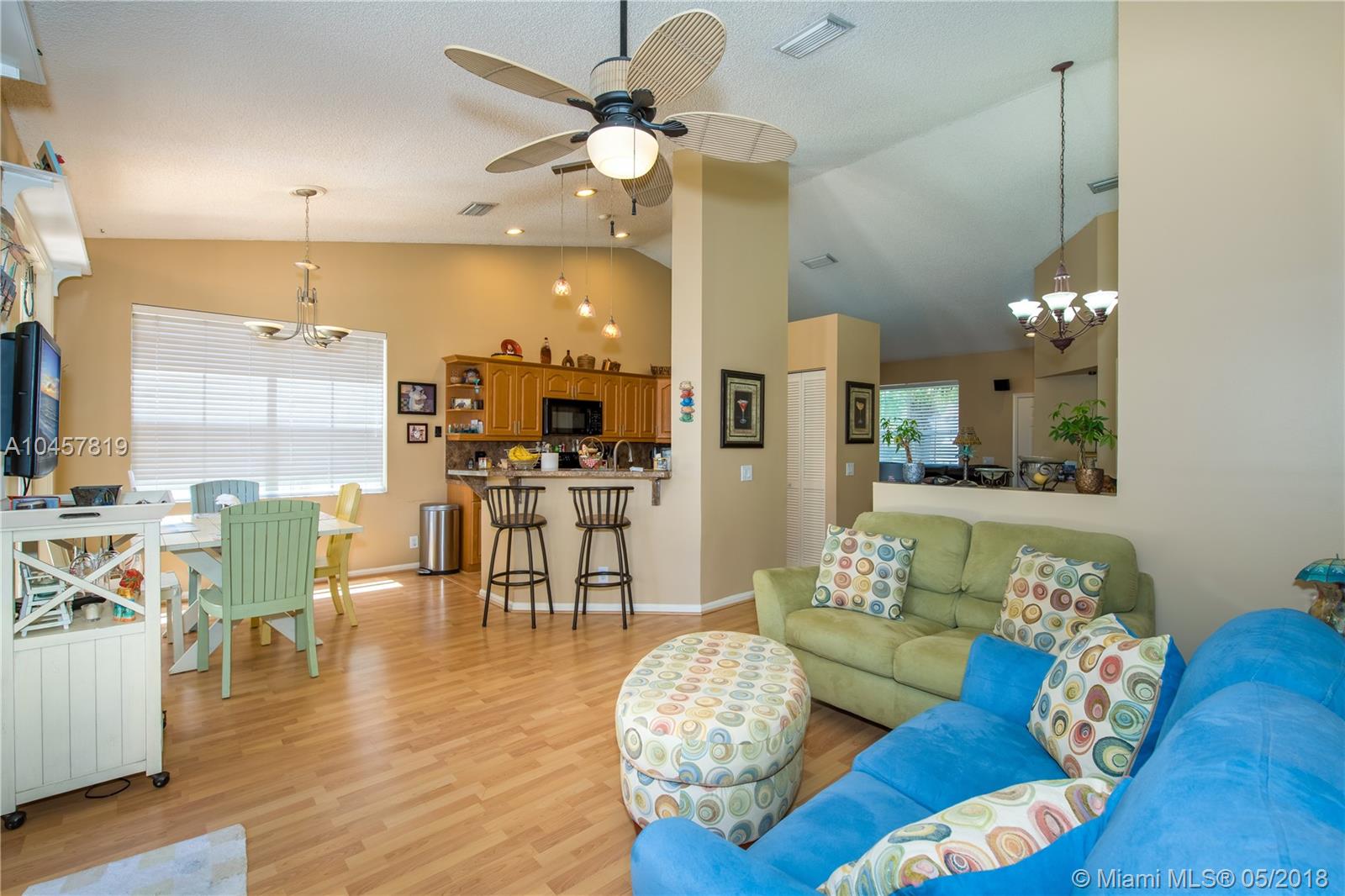 Meticulously maintained, 3/2 lake view and pool with Tiki Bar home in a desirable 24/7 Gated Community in Weston. You will fall in love with the lake view and pool. This spotless home features: Remodeled Master's bedroom bathroom and kitchen, new A/C, extended paved driveway with permit. Close to I-75, Restaurants, Shopping Centers, Banks, Cinema and A+ rated schools: Eagle Point Elementary School, Tequesta Trace Middle School and Cypress Bay High School. Must see now!!!