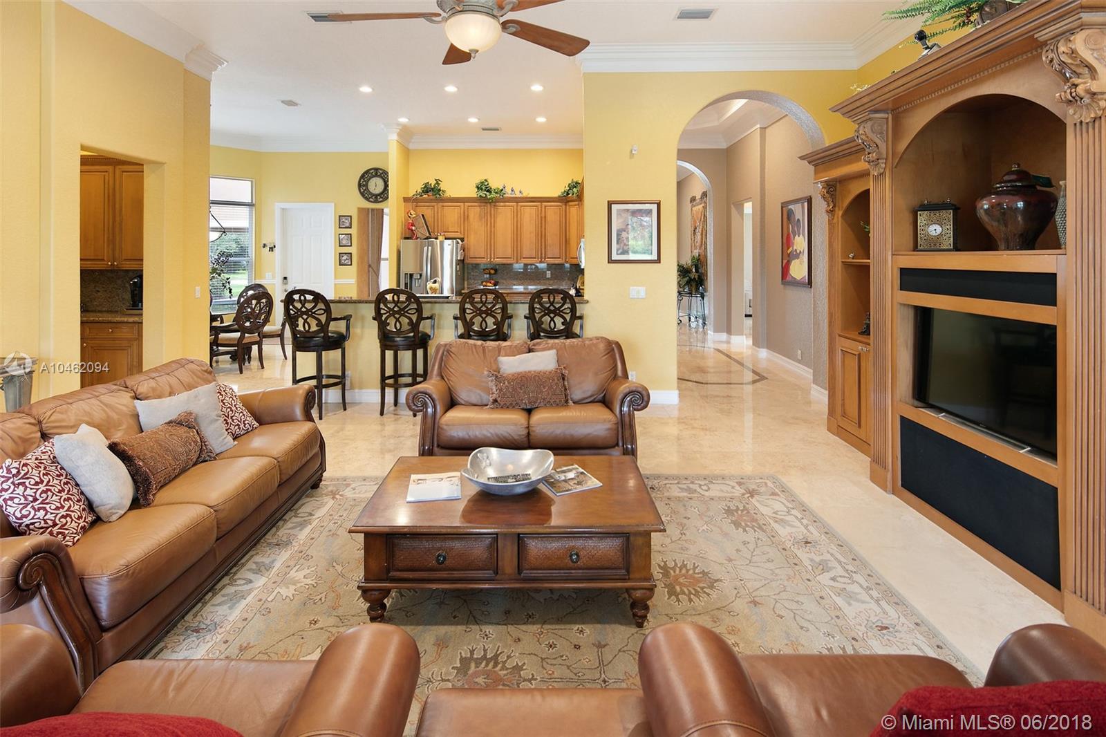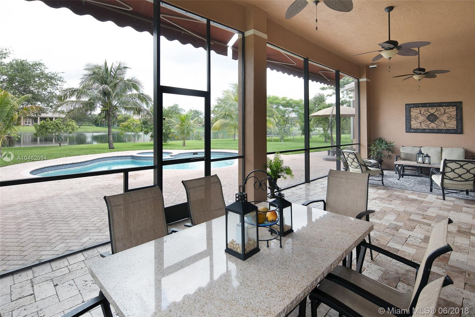 Wow!!! Come see this gorgeous view and impeccably well kept home on the lake. Huge screened patio for morning relaxation,evening winding down. Bring as many of your friends and family for great entertainment and pool enjoyment. Huge yard with trees for enough shade yet enough space for playing, running, relaxing, entertaining. Marble flooring throughout downstairs. 5 bedrooms and 4 bathrooms downstairs. Second floor has beautiful real wood floor, a second master bedroom and bath with its own large living room/ possible indoor entertainment room- perfect for additional family members/maid's private quarters. Triple crown molding throughout, beautiful granite countertops with island and shiny stainless steel appliances in kitchen. Completely ready to move right in!! Come enjoy your new Home.