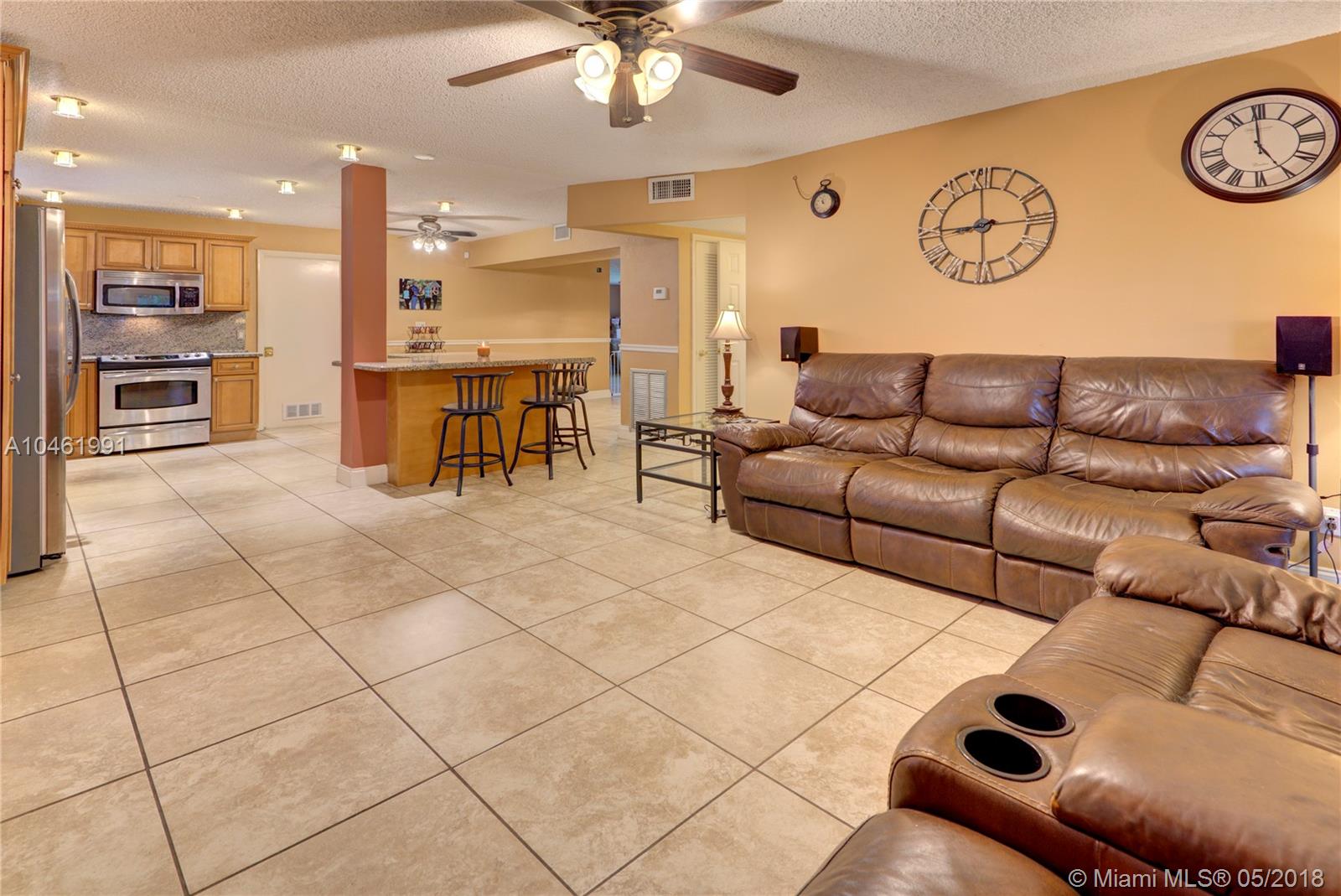 Extraordinary opportunity to own this Charming Home nestled on a beautifully landscaped corner lot. This 3 Bedroom 2 Bathroom home features a bright spacious floor-plan, Formal Living & Family Rooms with oversized 4th room, (previously the garage, easy to convert back to garage) Decorative tile throughout and wood laminate in the bedrooms, Gorgeous oversized Kitchen that has been totally remodeled with extra large island, granite tops and Stainless Steel Appliances.French Doors opening to a large oversized screened patio and backyard that features gazebo and and large paved area perfect for entertaining or parking a boat or RV. Newer A/C with the highest efficiency, Security System with cameras and thermostat control. This home is a spacious Gem with great curb appeal and location.