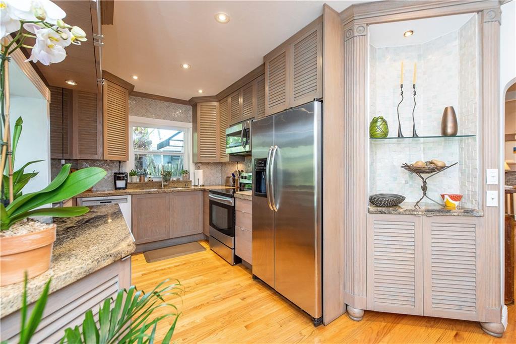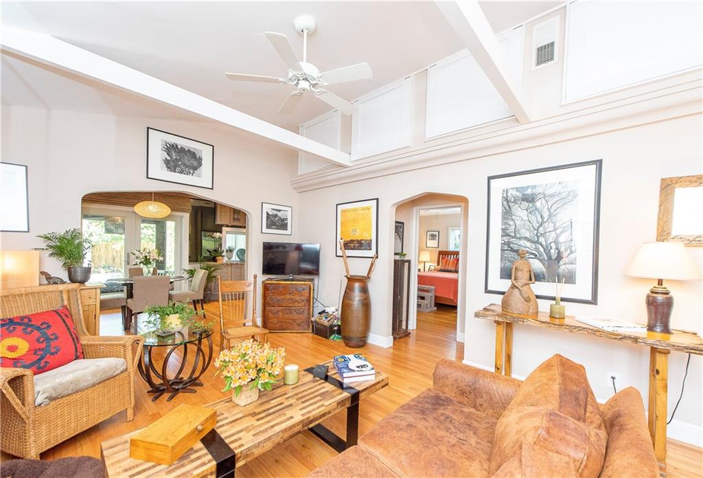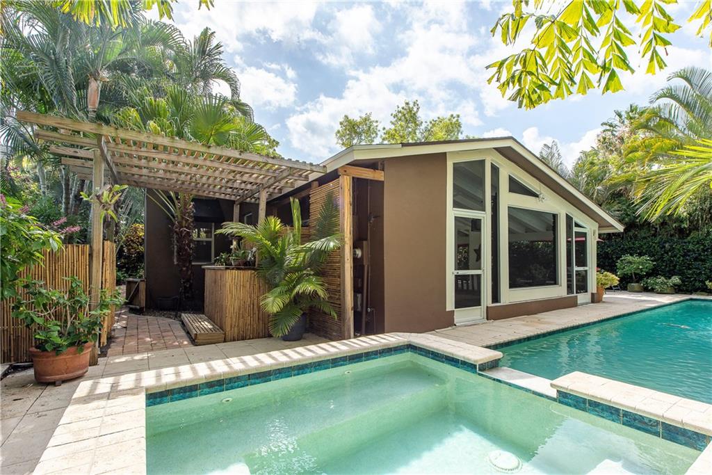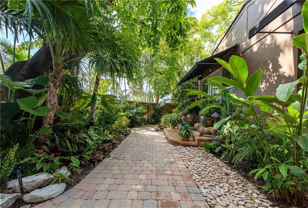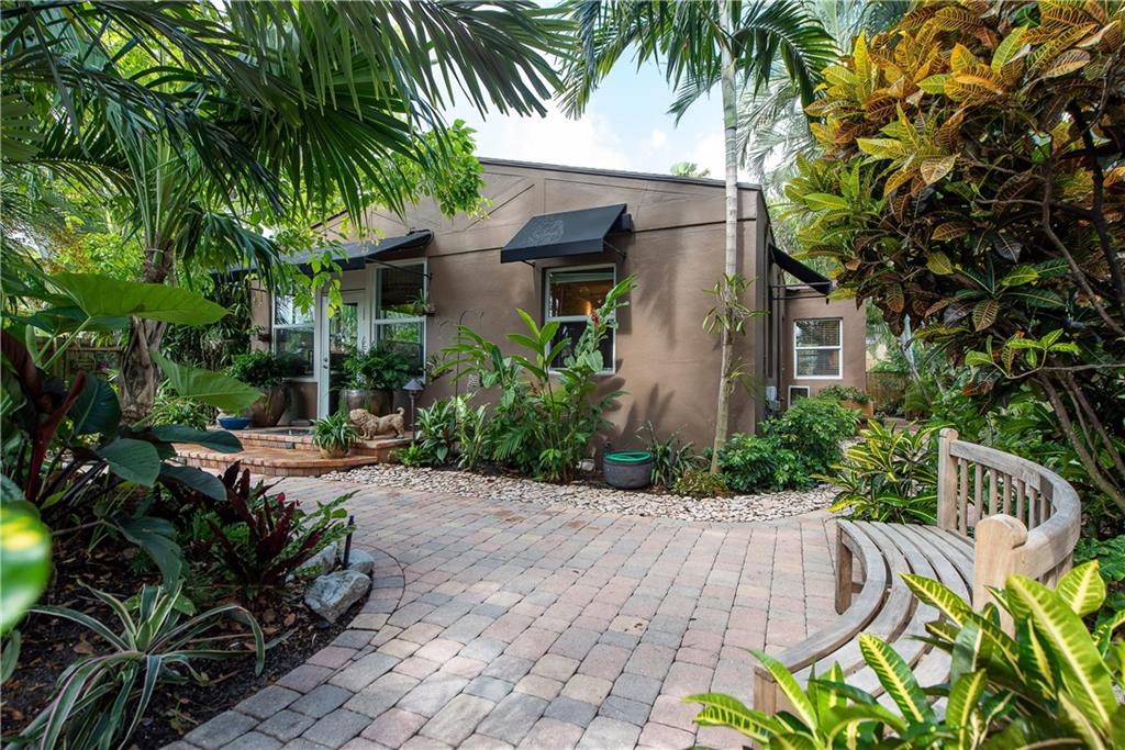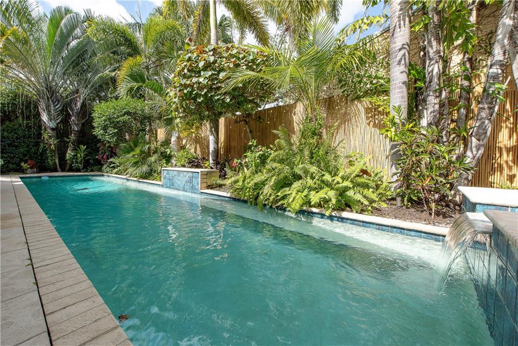 A remarkable Victoria Park home. Centered beneath a hammock of tropicals and surrounded by lush gardens completely fenced and gated for privacy. Artfully designed architectural features boast; vaulted, beamed ceilings, custom kitchen and dining room cabinetry, built-in bookcases, impact windows & doors, hardwood and pebbled tile, fireplace and an immense screened summer porch that overlooks a 7'x38' lap pool. Lush perimeter gardens hug the paver terraces that surround the home to create a peaceful refuge.