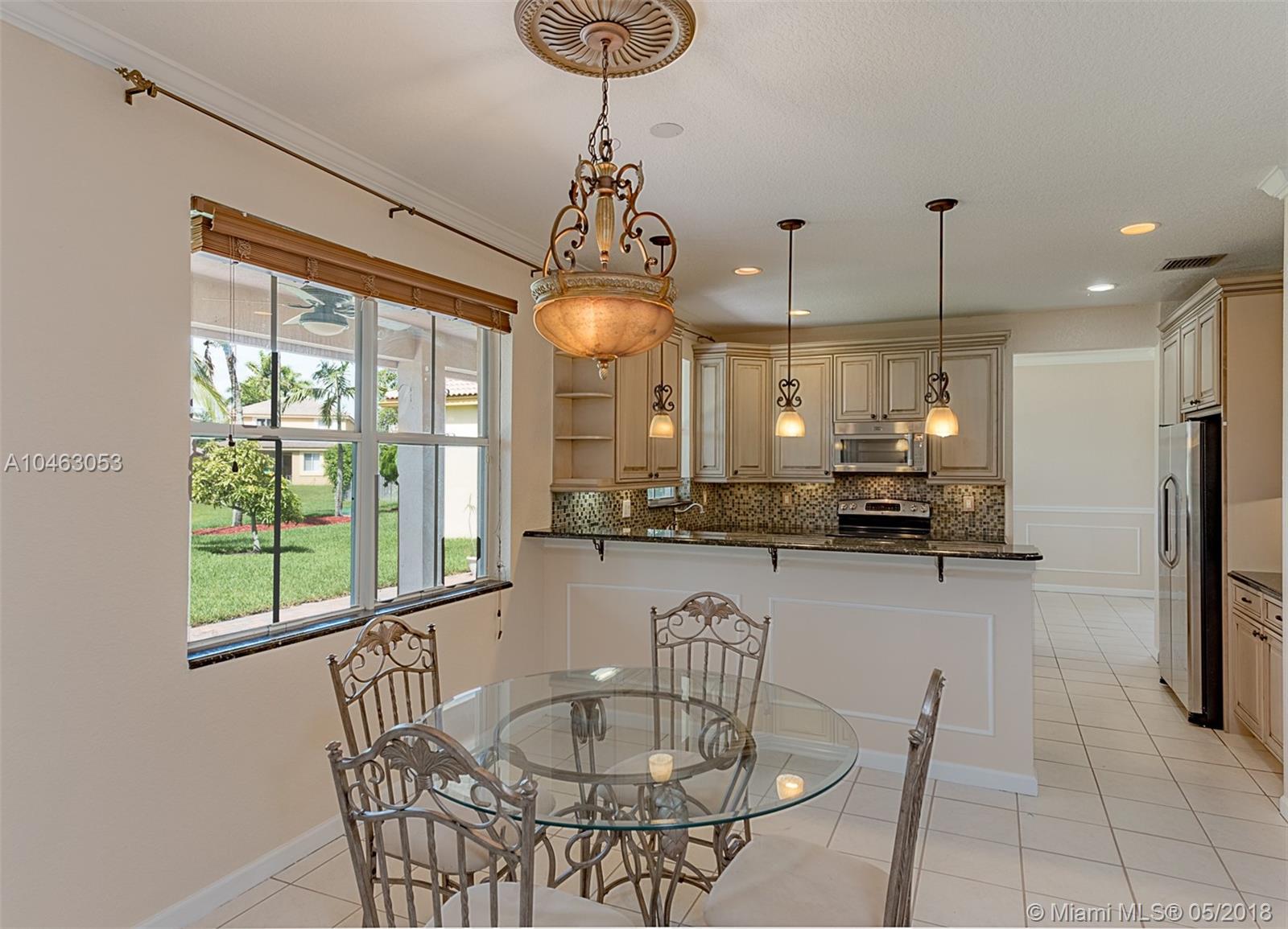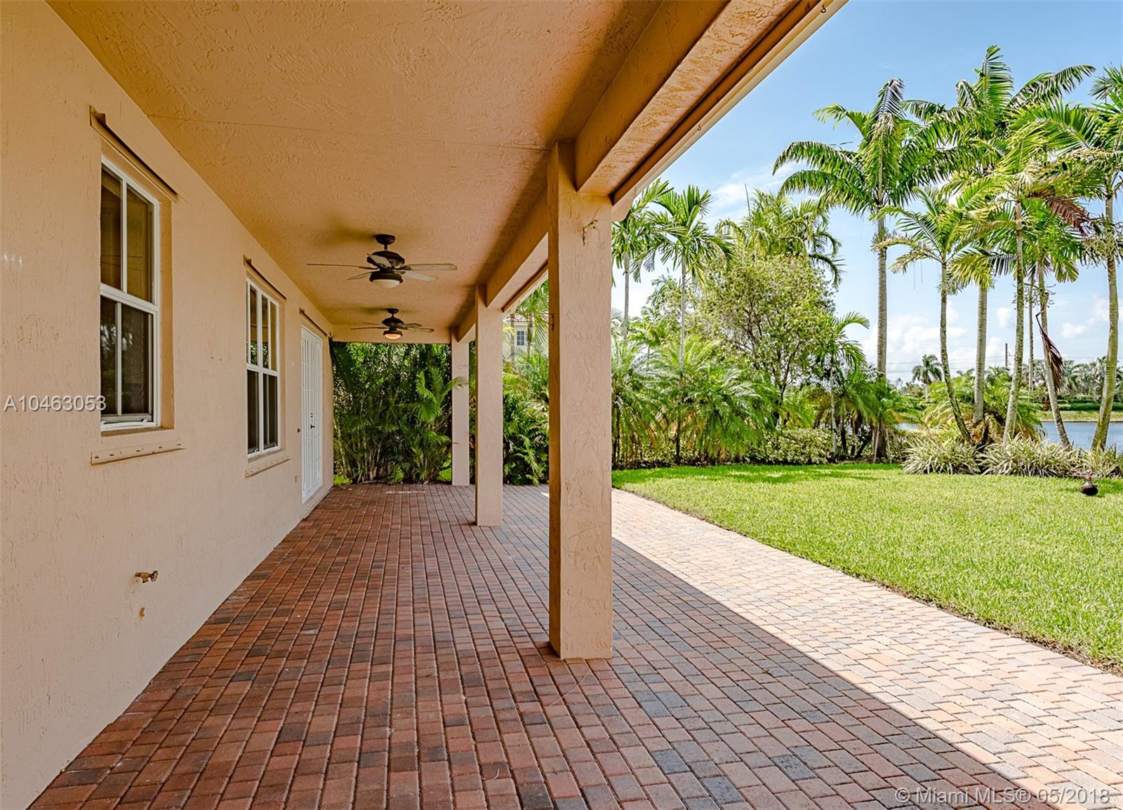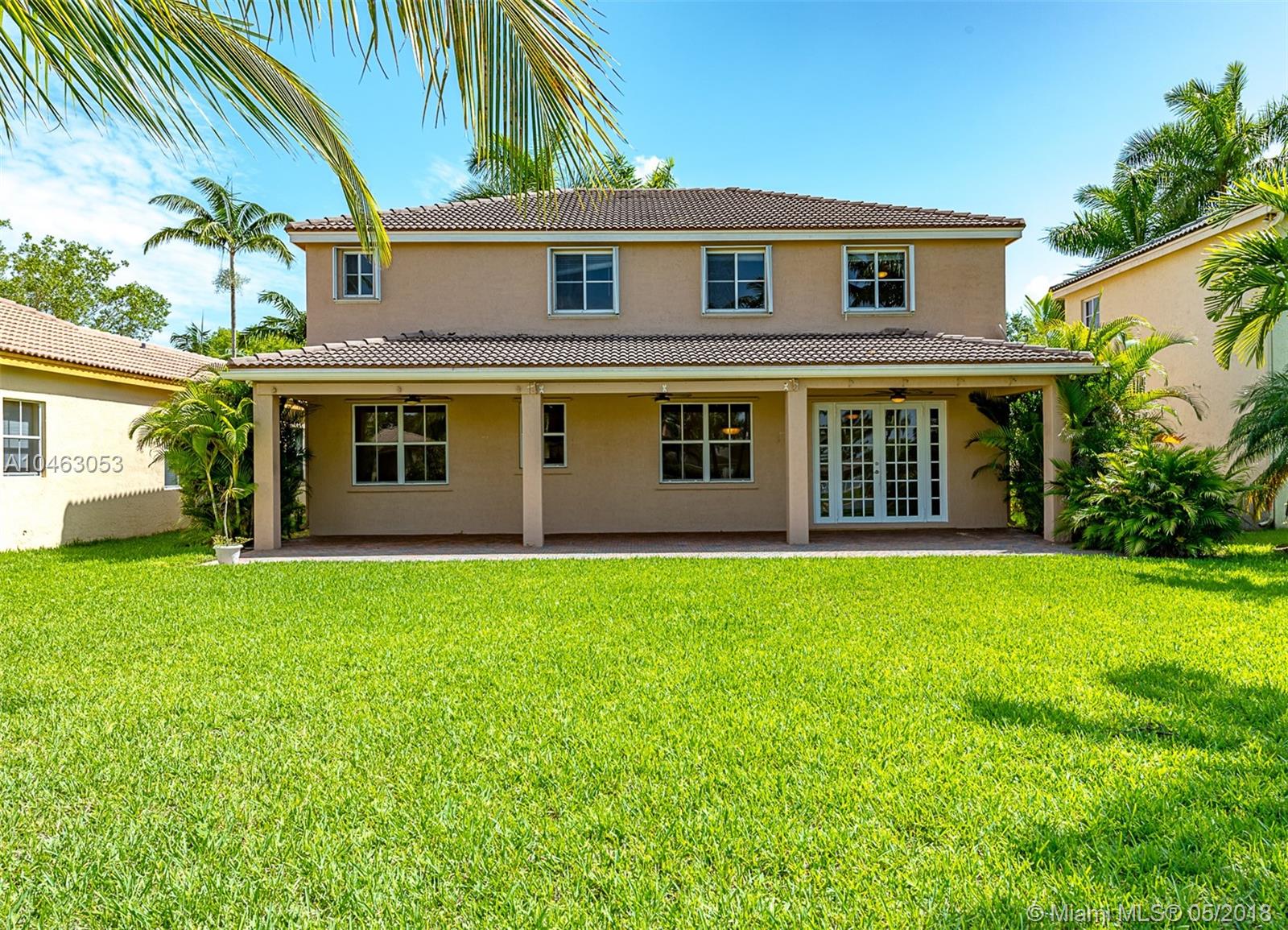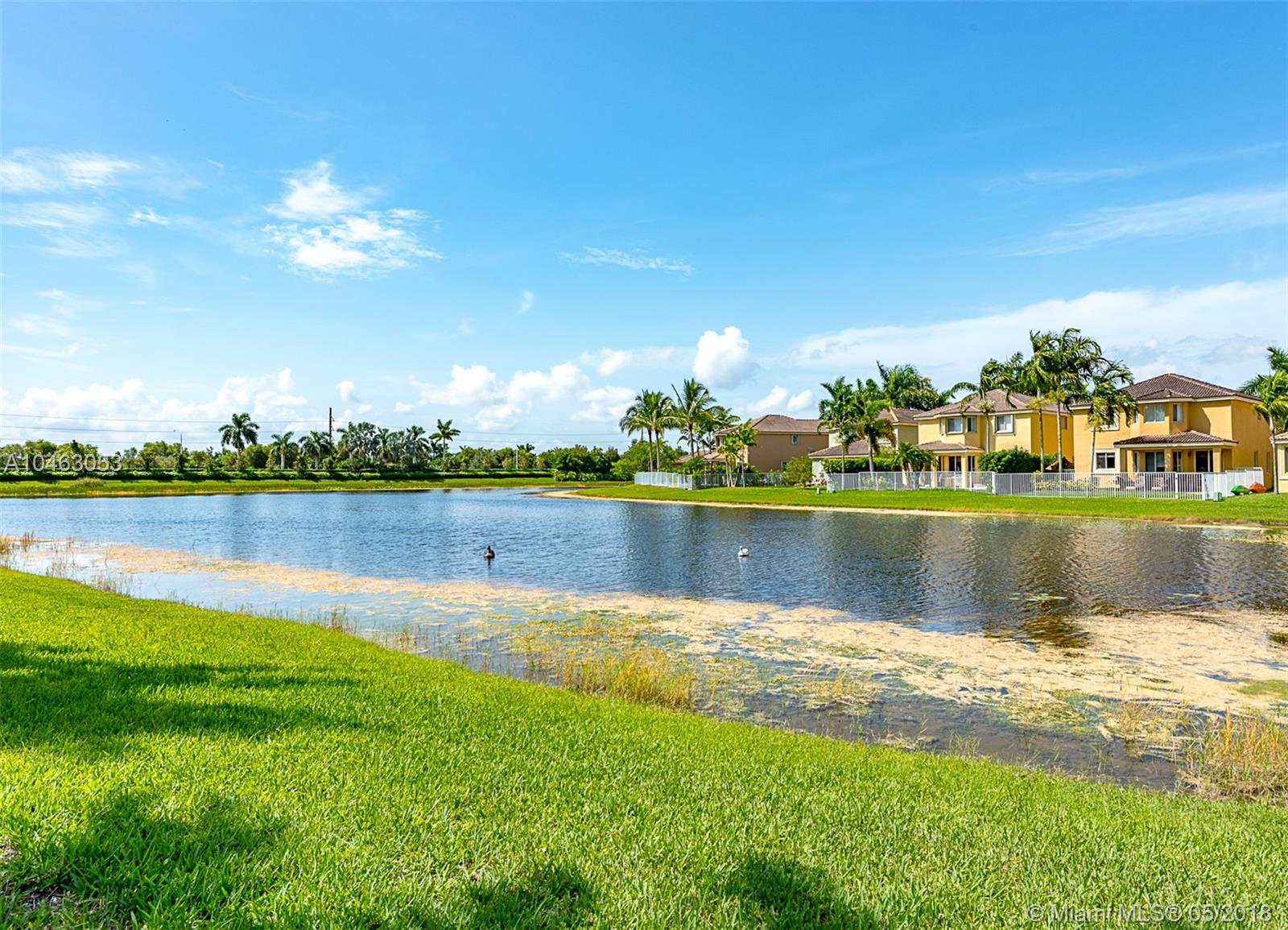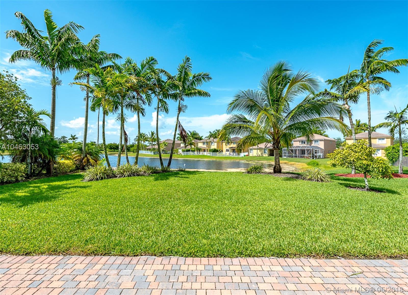 Oversized lake front two story five bedroom 3.5 bathrooms Fuscia model house with plenty of room for a pool. French doors, custom build wood kitchen, granite counter tops, double oven plus microwave is a conventional oven. New laminate floors upstairs and new air conditions unit. Irrigation system from lake, fans in every room, extended patio and driveway with brick pavers. Accordion and aluminum shutters. Great amenities, lap pool, kid’s pool, mini golf, soccer field, basketball court.
