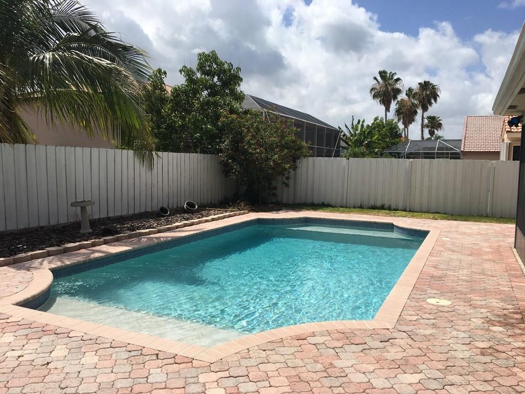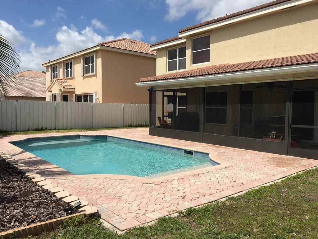 Immediate equity! Priced below market value. Don't miss this totally upgraded pool home in Pelican Bay community. This beautiful two story 5 bedroom, 3 bath, 2 car garage is move in ready. Full bed. & bath on 1st floor. Large tiles on 1st floor, laminate wood upstairs. Chefs kitchen with 2 ovens, stainless appliance pkg, granite, large island w/seating & extra storage,breakfast area & large family room. Screened patio overlooks the salt water pool with heater & large fenced back yard. Gated community.