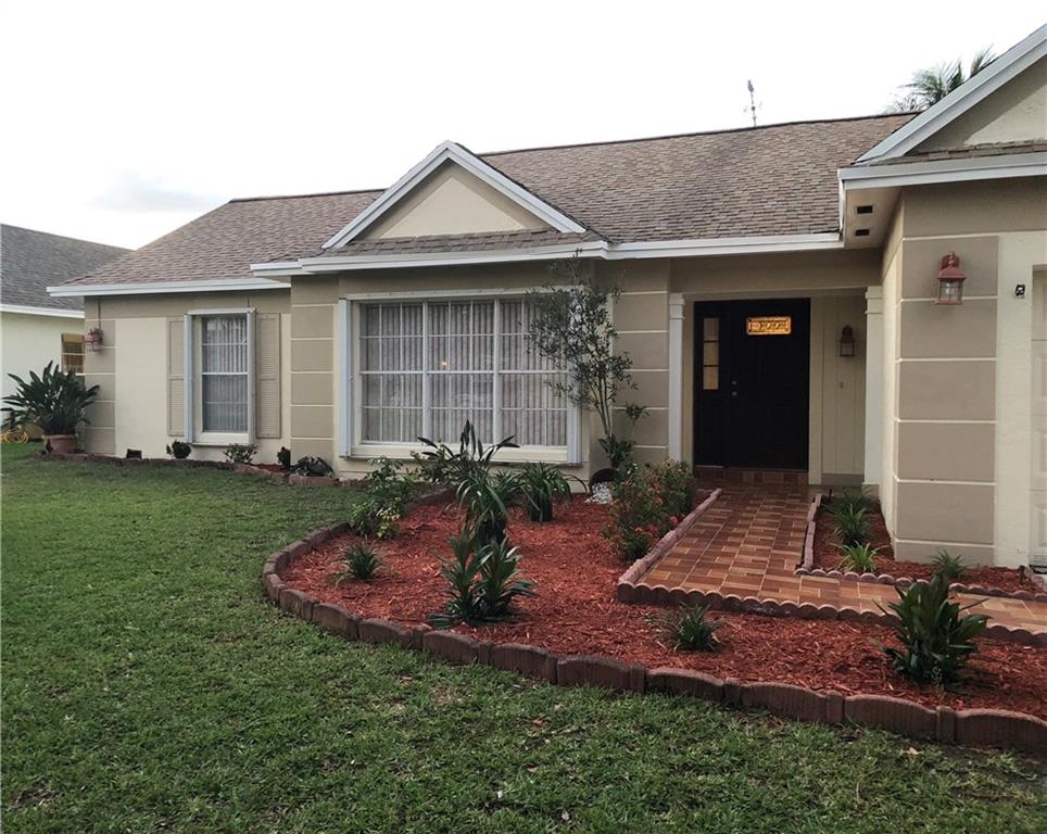 Spacious 3/2 with open floor plan, up-graded kitchen cabinets and granite counter top, stainless steel appliances, vaulted ceiling, up-graded bathrooms, split bedrooms, tiled throughout. Accordion hurricane shutters on all windows, enclosed back patio, fenced back yard with fruit trees and storage shed, spacious 2 car garage. Low HOA. Great location near major high-ways.