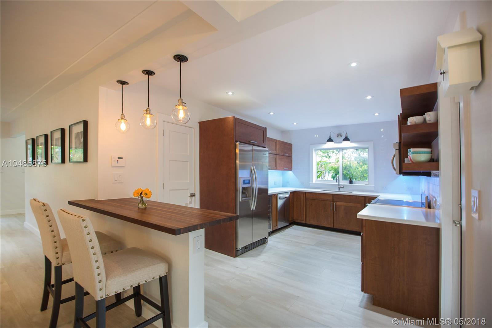 Beautiful Miami Shores Home. 4-bedrooms 3-baths and/or den. This corner home is freshly updated, with Impact windows, and room for a pool. The Master bedroom is on the opposite side of the other two bedrooms, offering plenty of privacy. The 4 bedroom could be used for in-laws/guest. The open plan kitchen has stainless steel appliances and plenty of beautiful quartz counter space, as well as solid wood cabinetry and breakfast counter. Living room and dining, are airy and open to the back yard through an elevated deck that is perfect for grilling.This is a very exclusive and sought after neighborhood, and this beautiful home has lushes landscaping.
